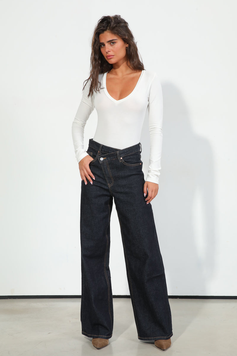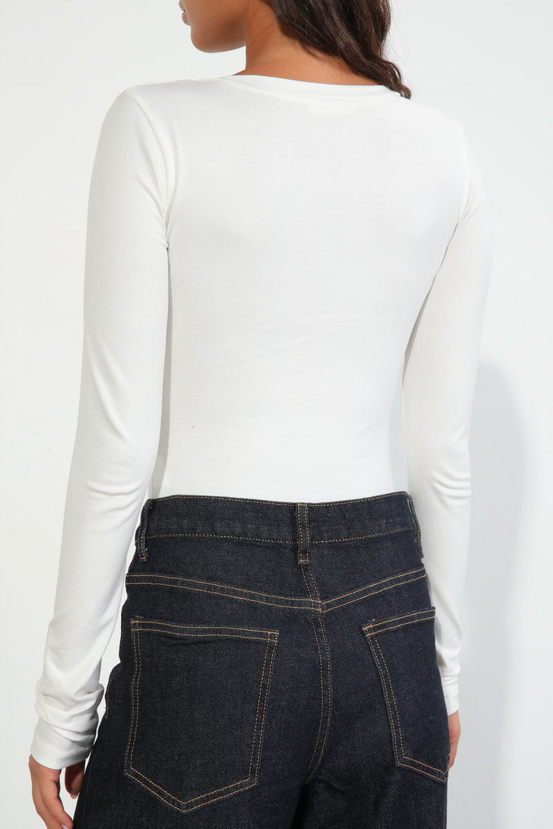 בגד גוף קלאסי בגזרה צמודה עם מפתח וי רחב בחזה,