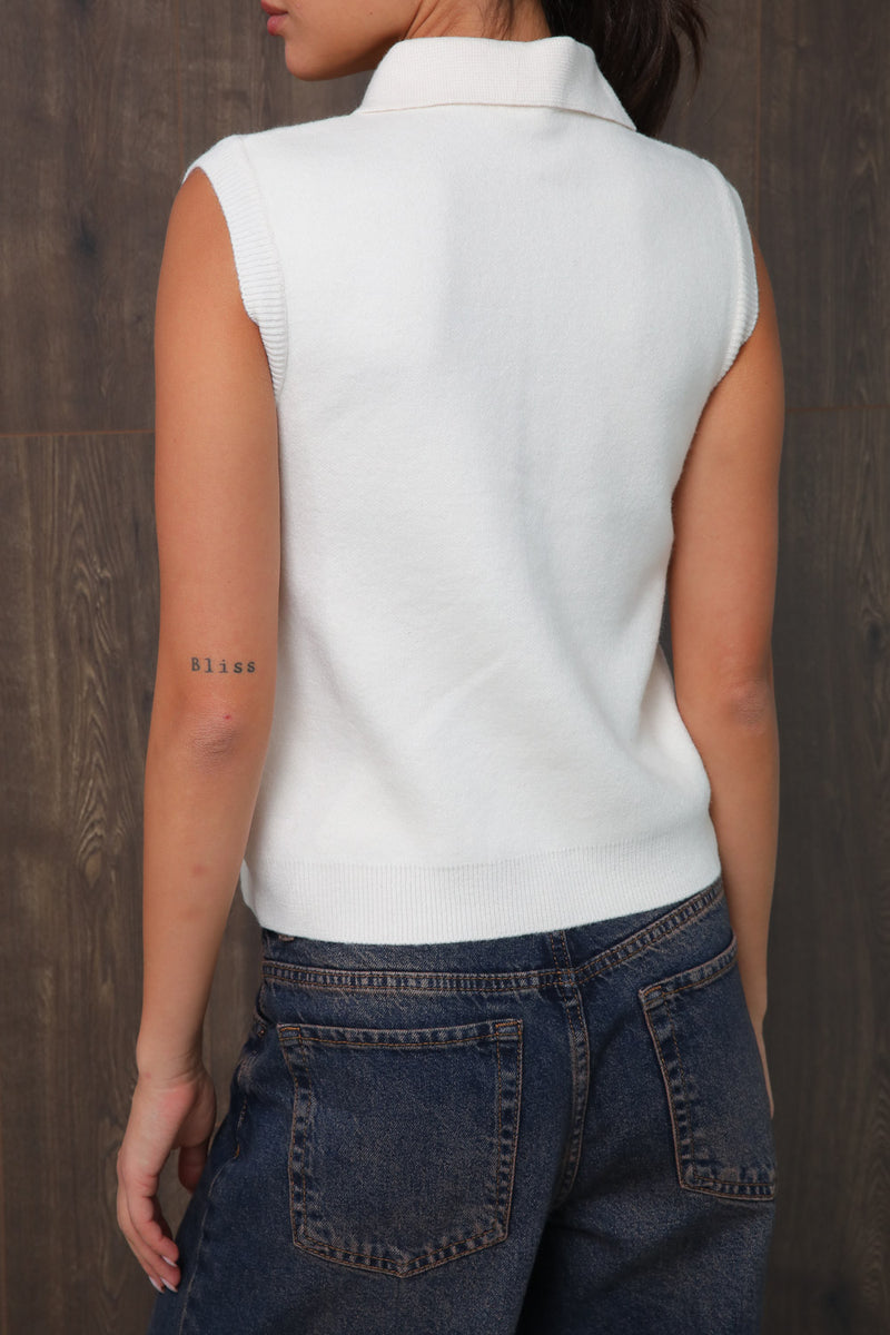 גופיית סריג עם צווארון שינה בשילוב כפתורים,