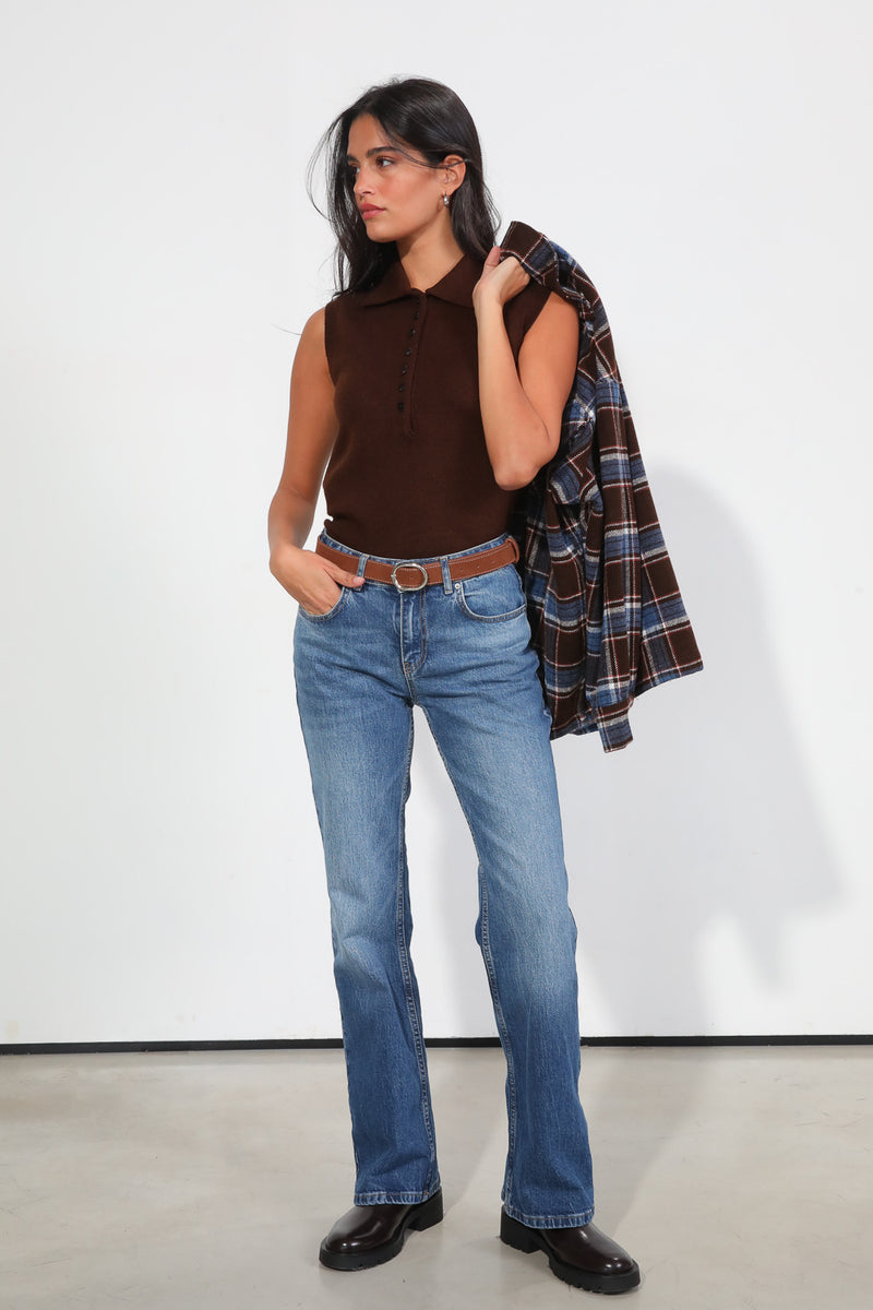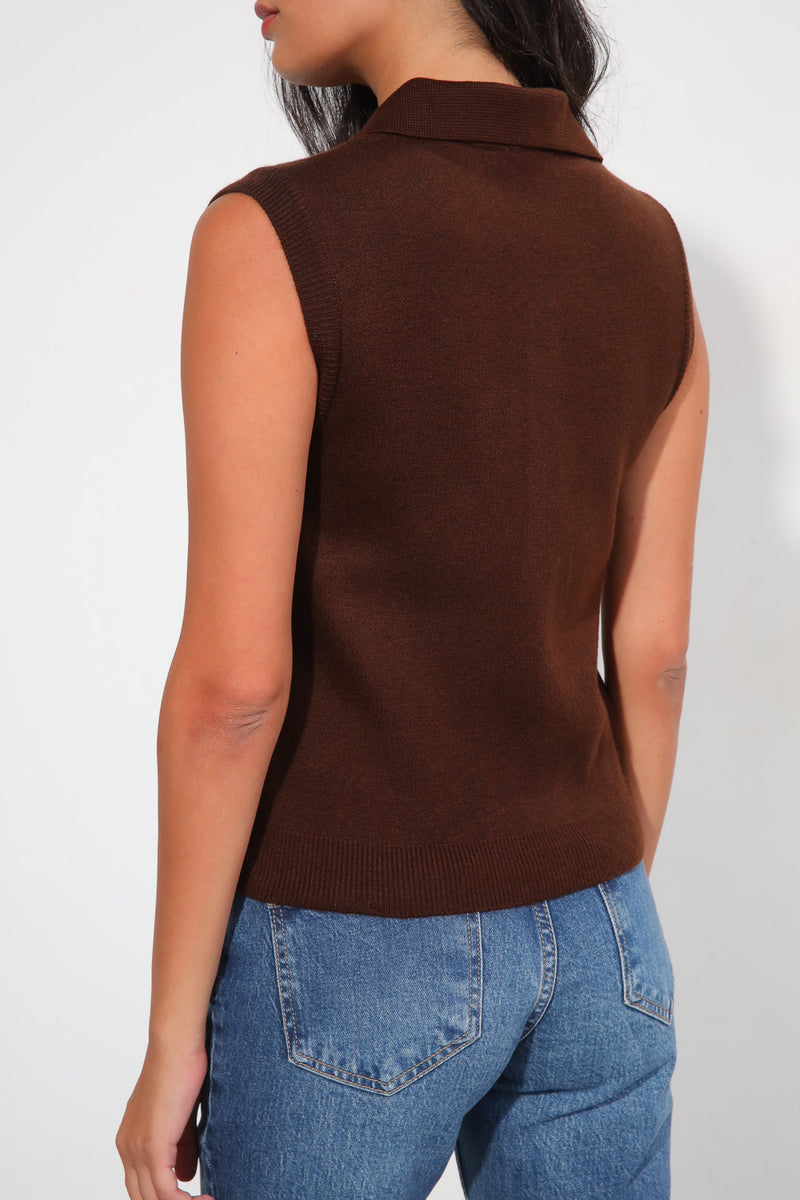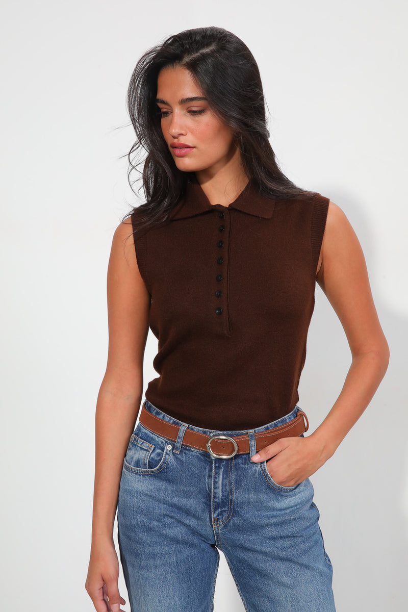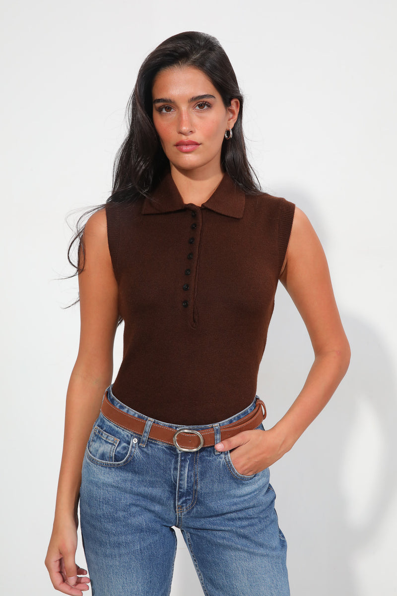 גופיית סריג עם צווארון שינה בשילוב כפתורים,