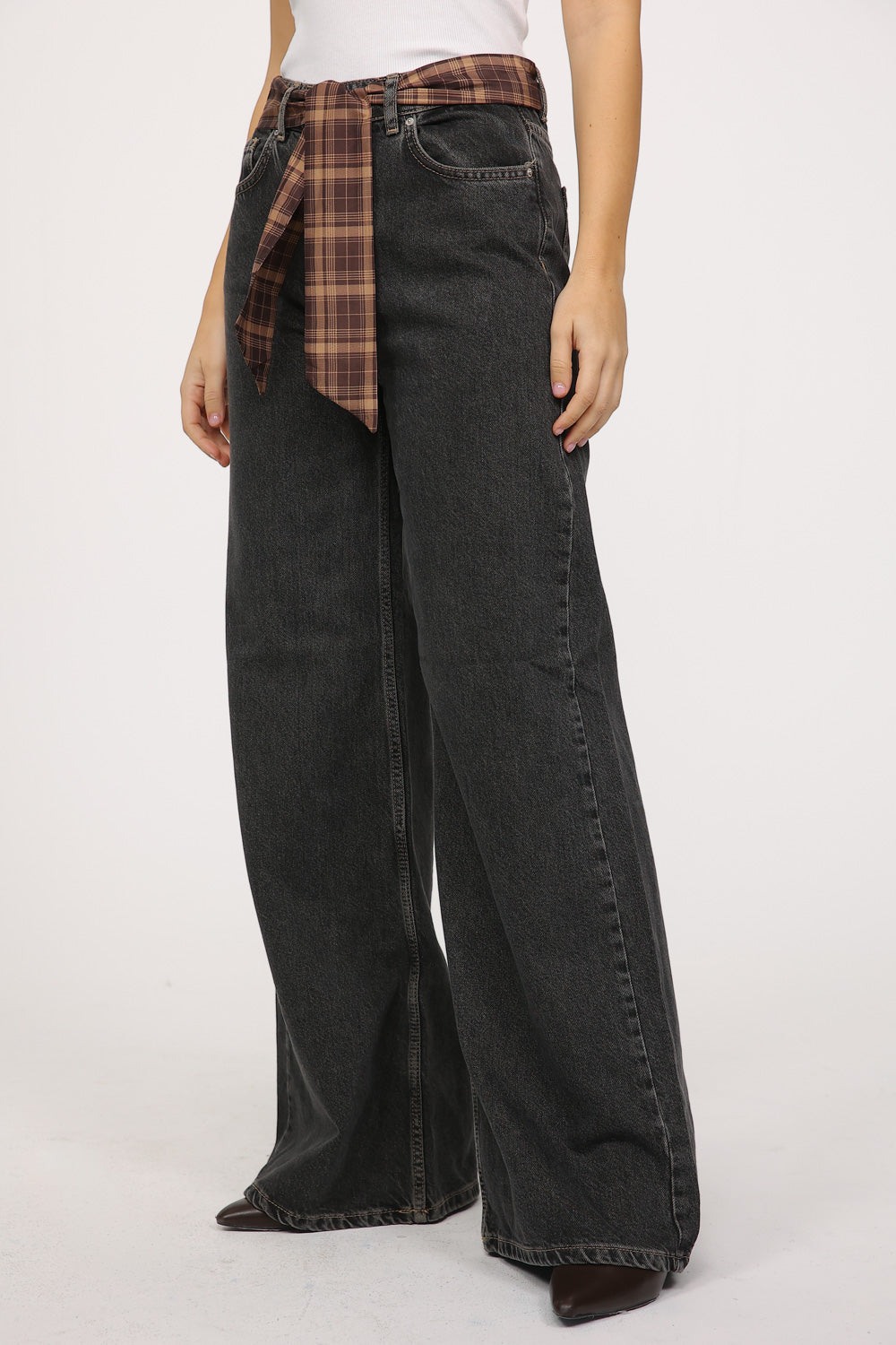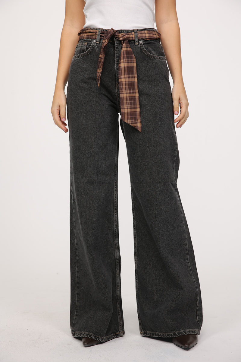ג׳ינס בגזרה רחבה עם מראה ייחודי ומודגש.