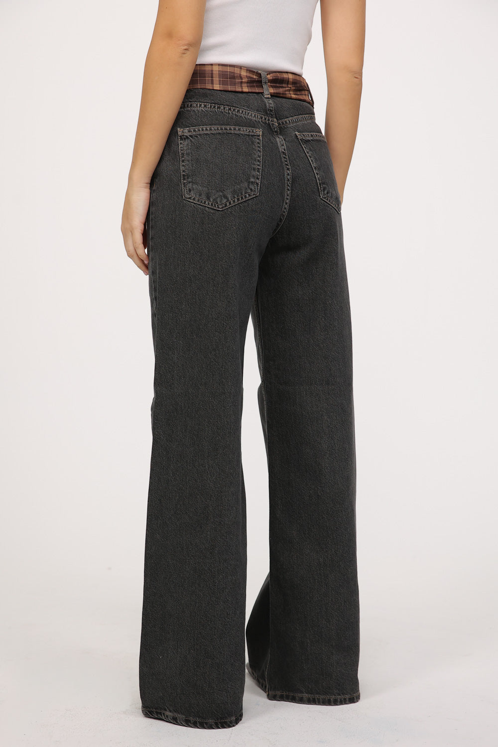 גזרת מותן גבוהה, סגירת כפתור ורוכסן וכיסים קלאסיים. עשוי בד ג׳ינס יציב עם נפילה רכה, מתאים לשילוב עם טי שירט, סריג או חולצה מכופתרת ליצירת לוק יומיומי עם אמירה.