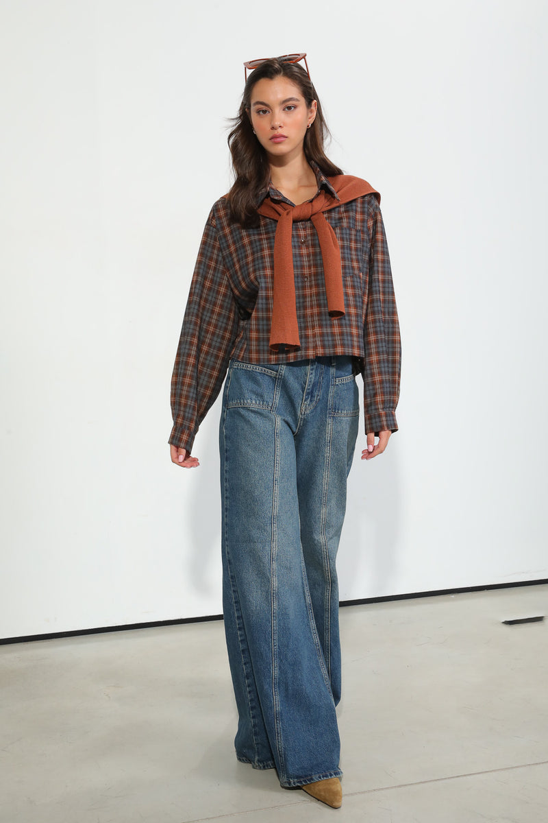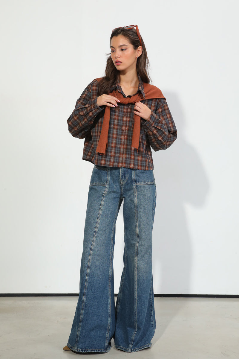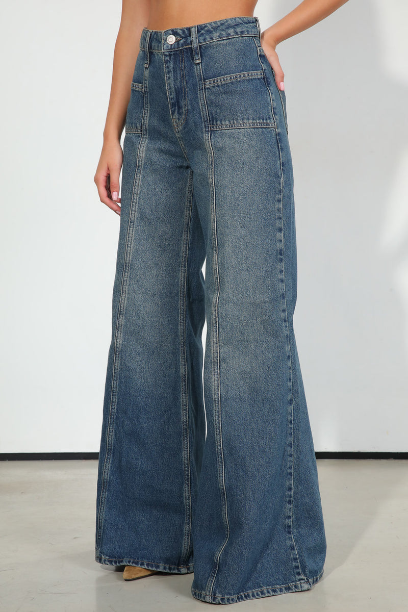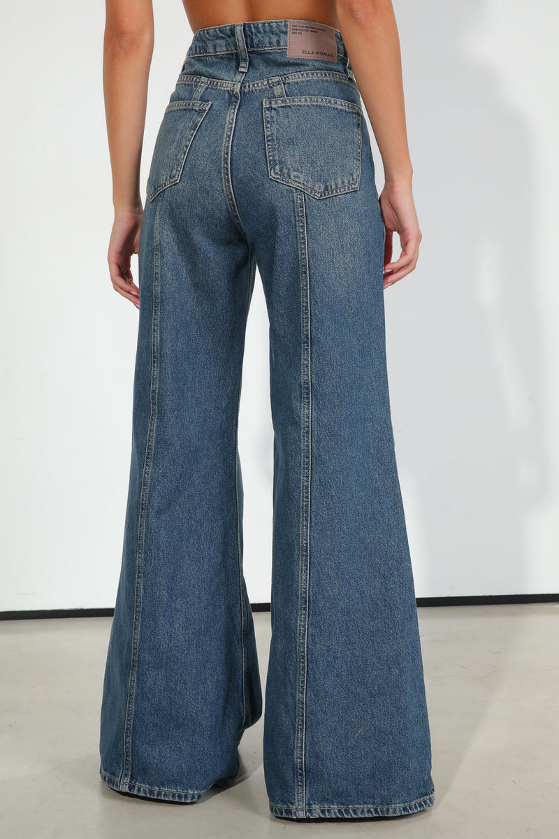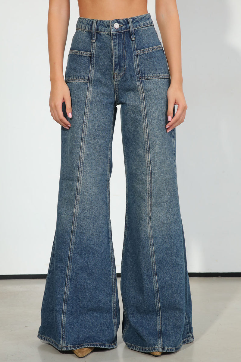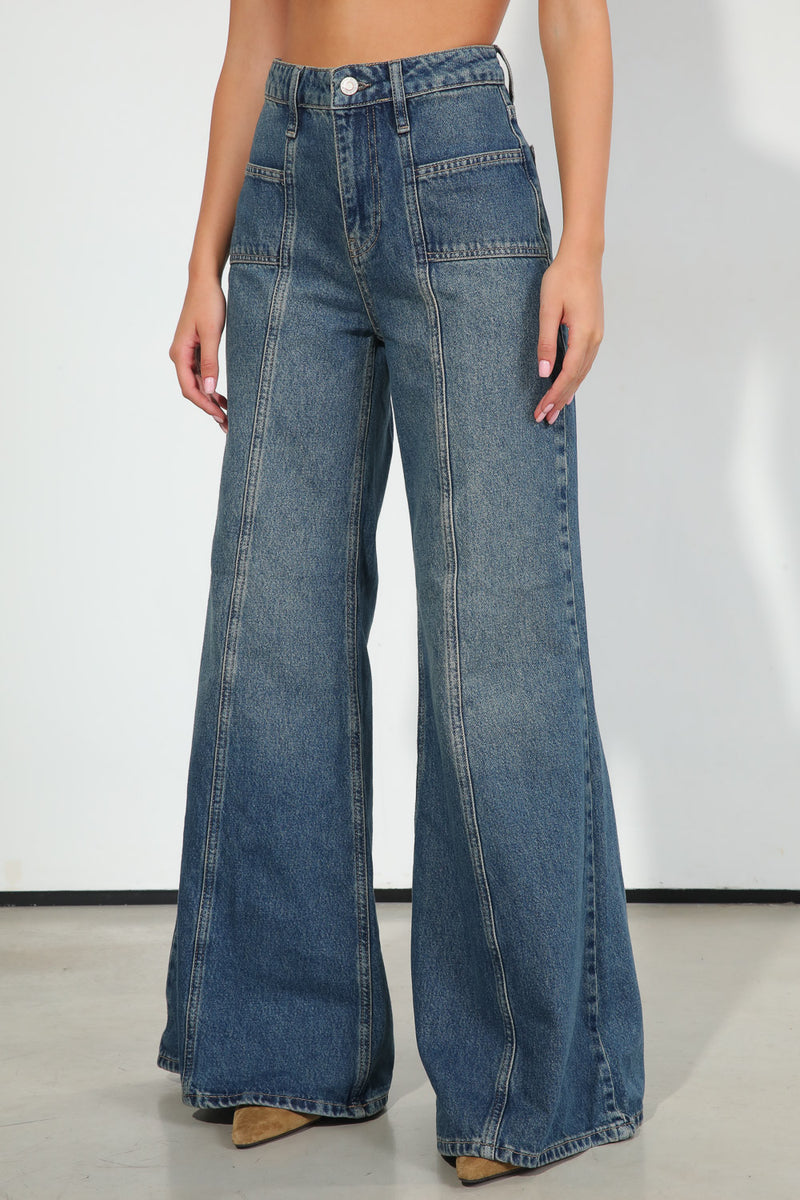 ג'ינס פדלאפון בגזרה גבוהה עם תיפורים בחזית לכל האורך,