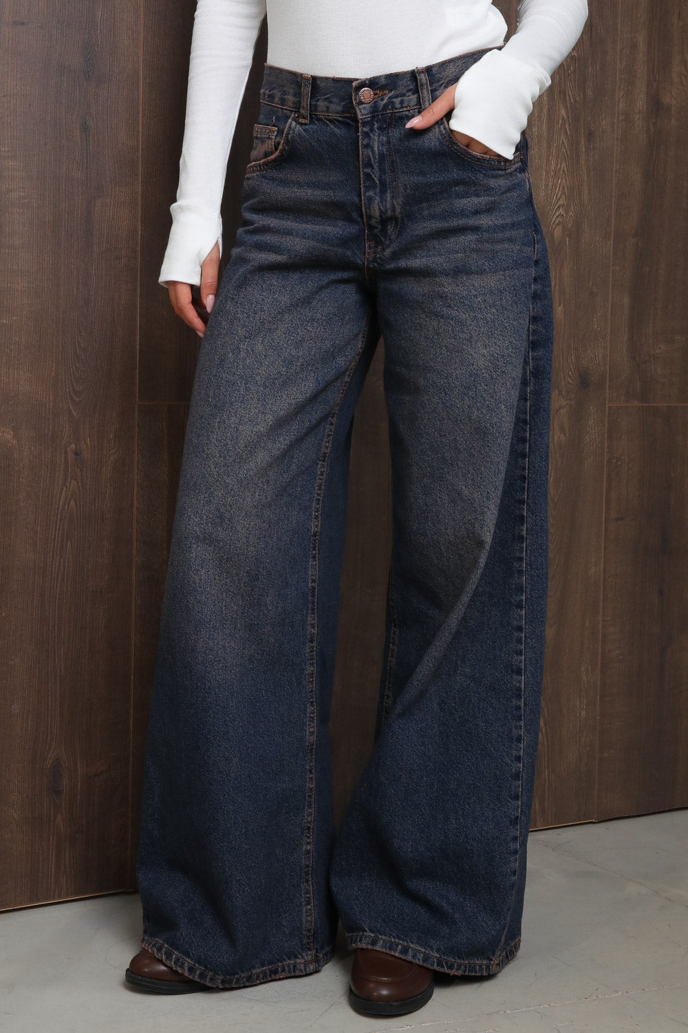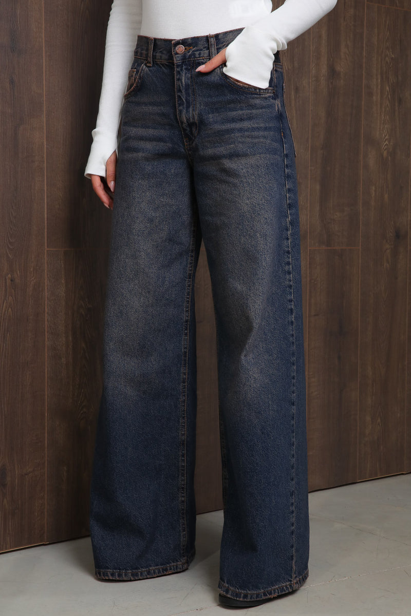 ג'ינס משופשף בגזרה רחבה, כזה שאת חייבת אצלך בארון!