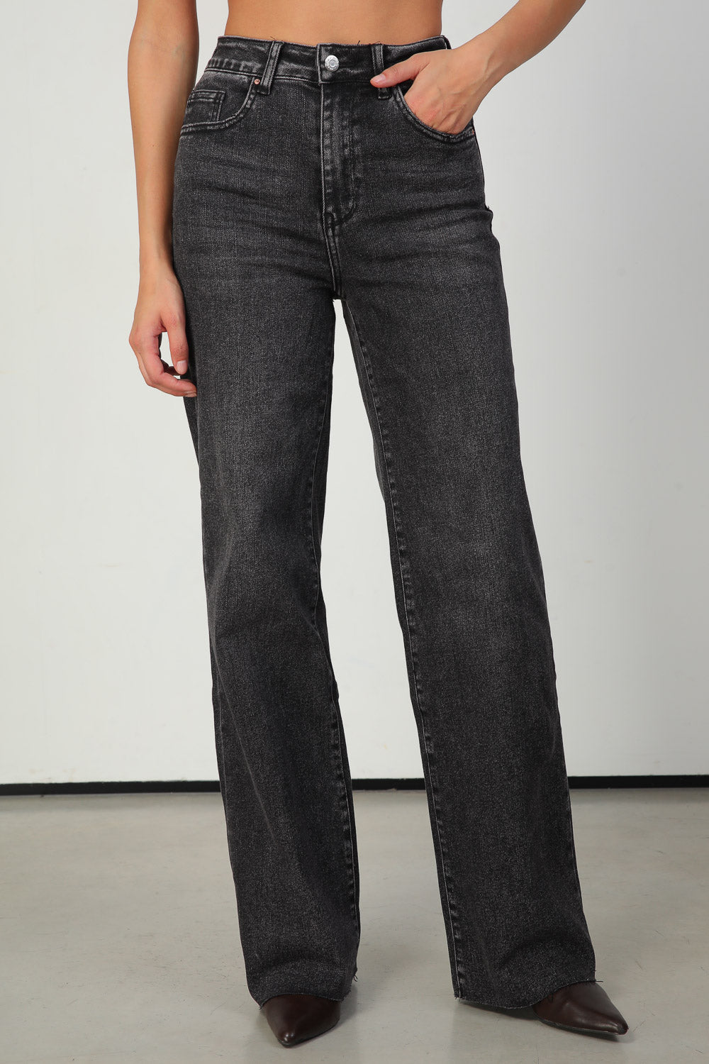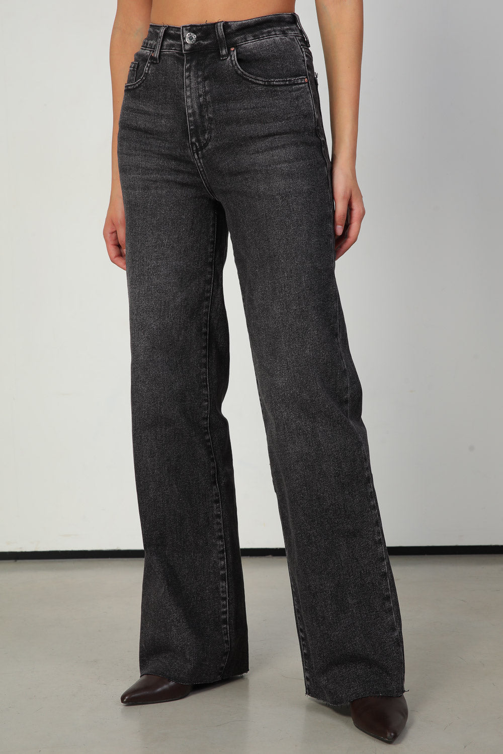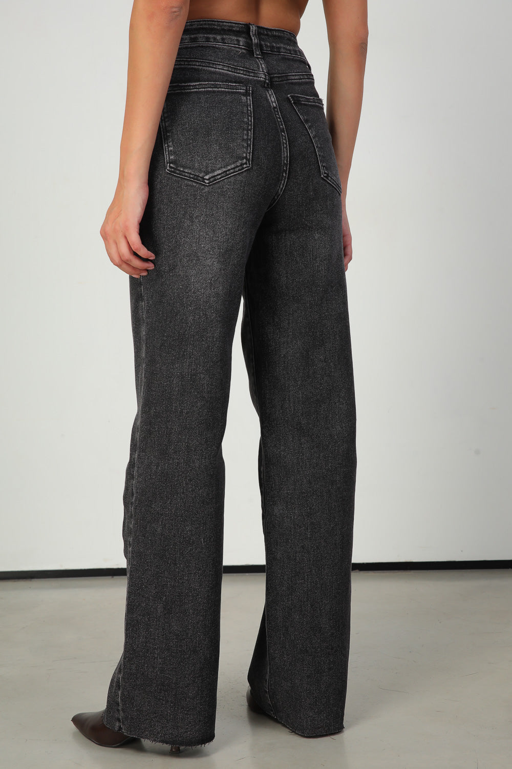 ג'ינס כהה בגזרה ישרה בשילוב בשילוב מטפחת משבצות לקשירה סביב המותן,