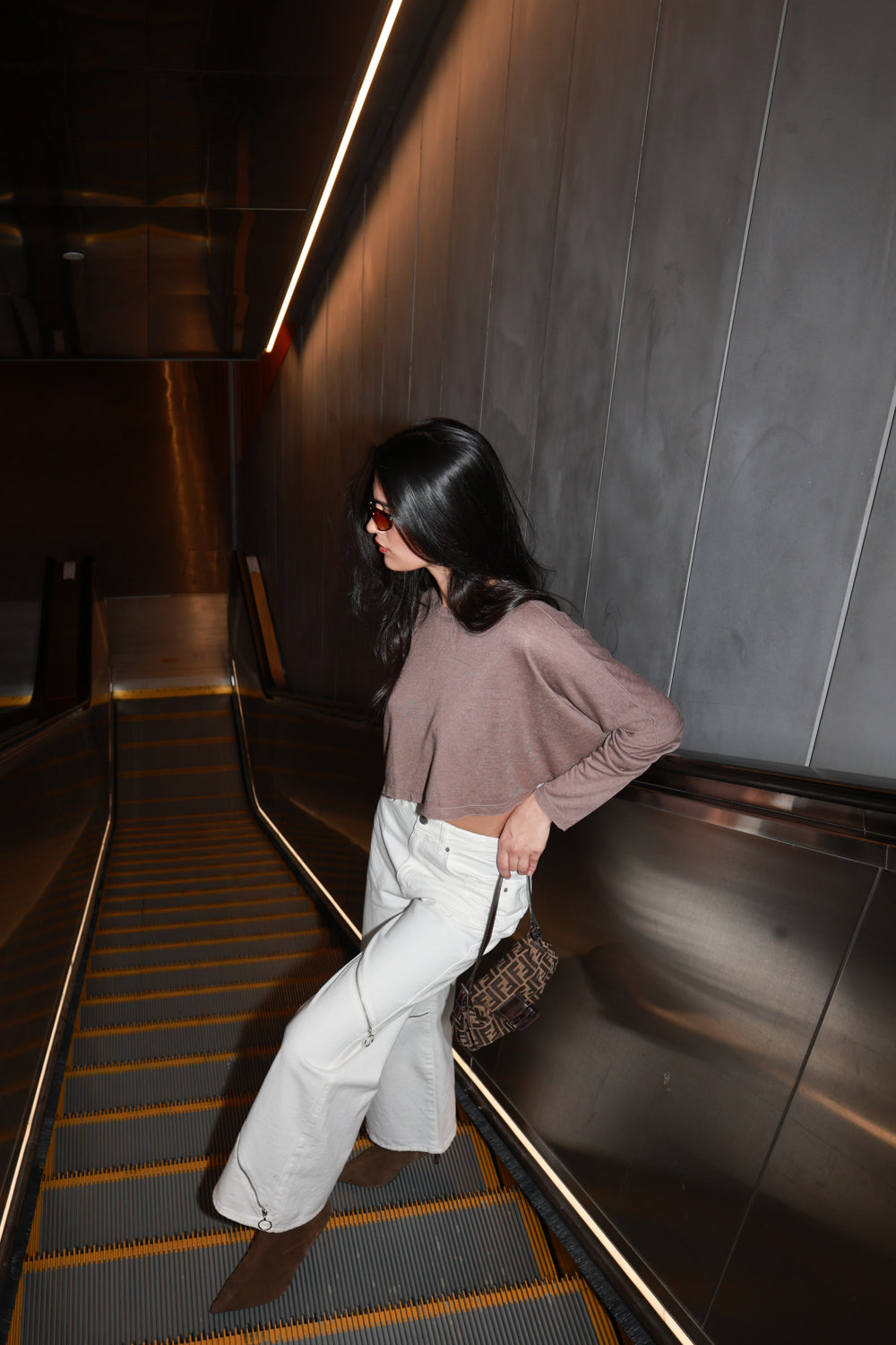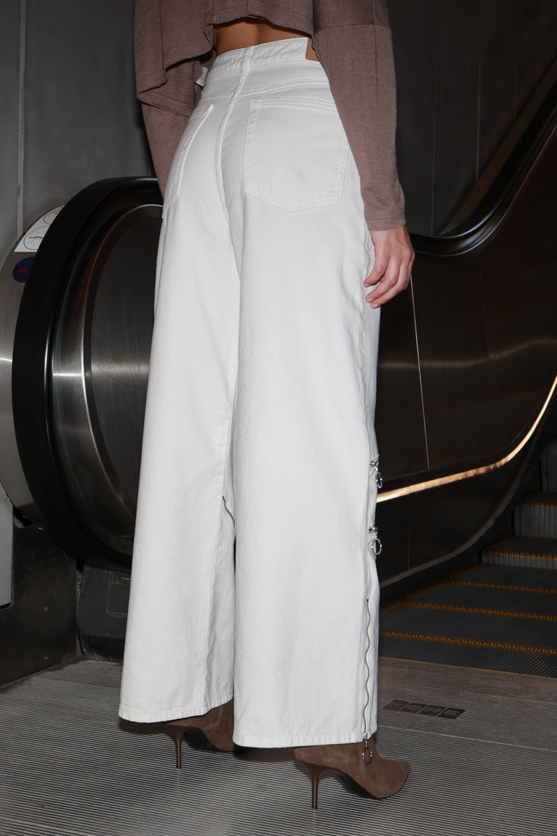 לאורך הרגל משולבים רוכסנים אלכסוניים דקורטיביים, היוצרים קווי חיתוך מודגשים ומראה ייחודי,