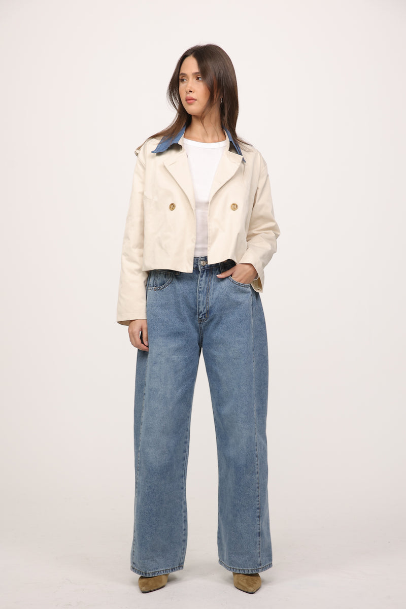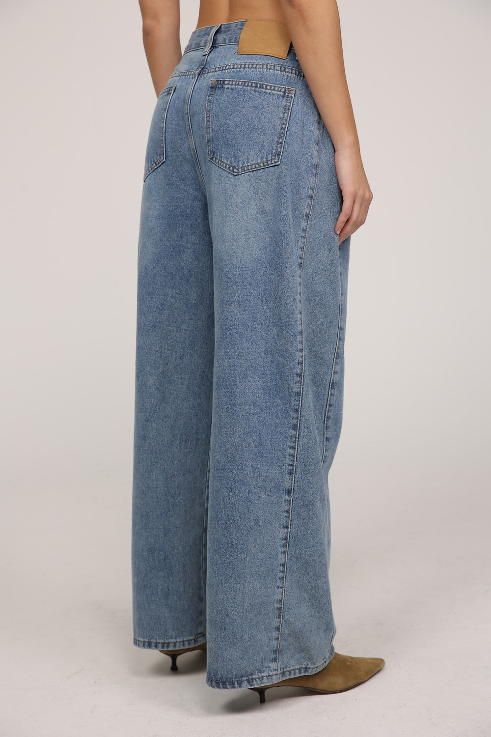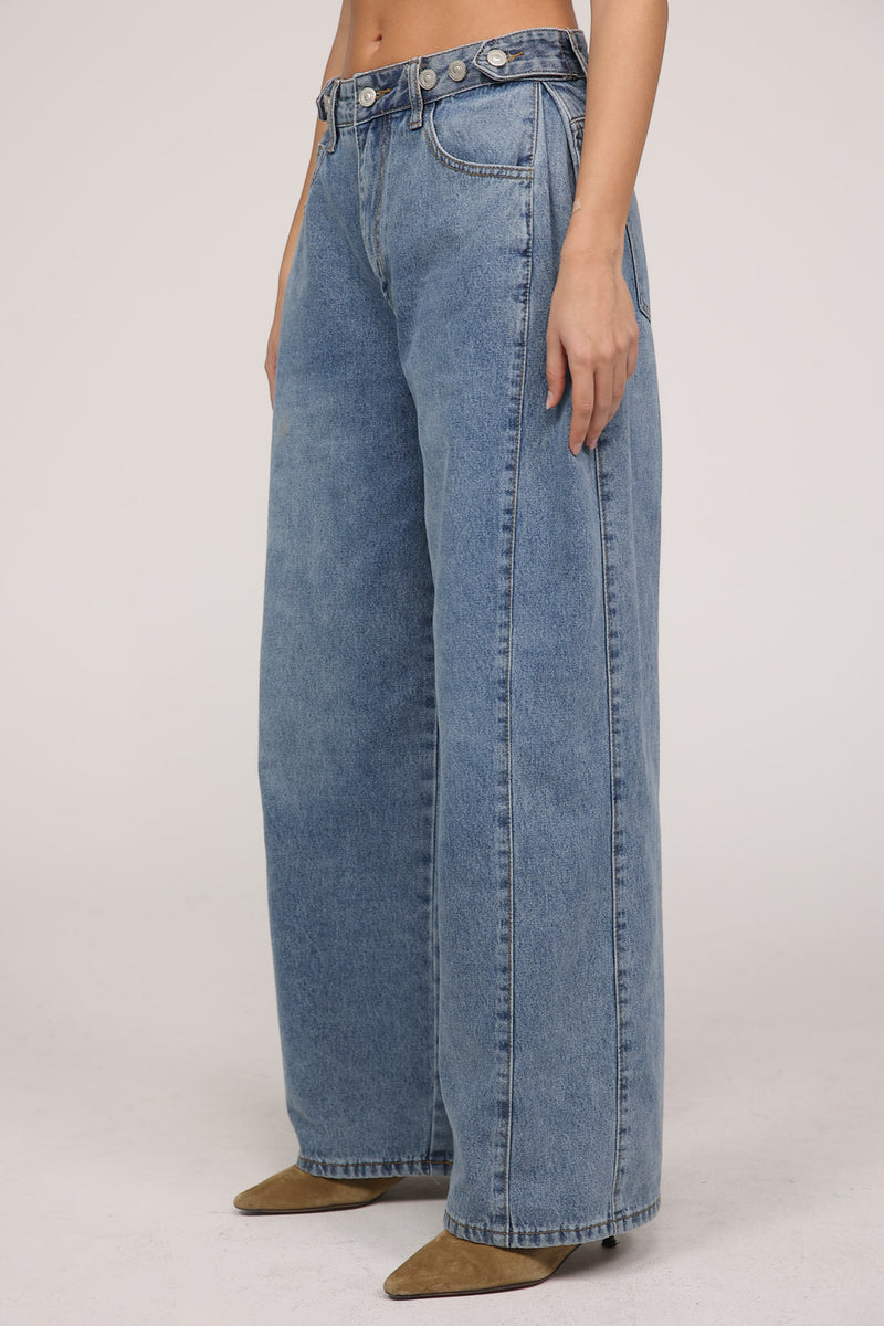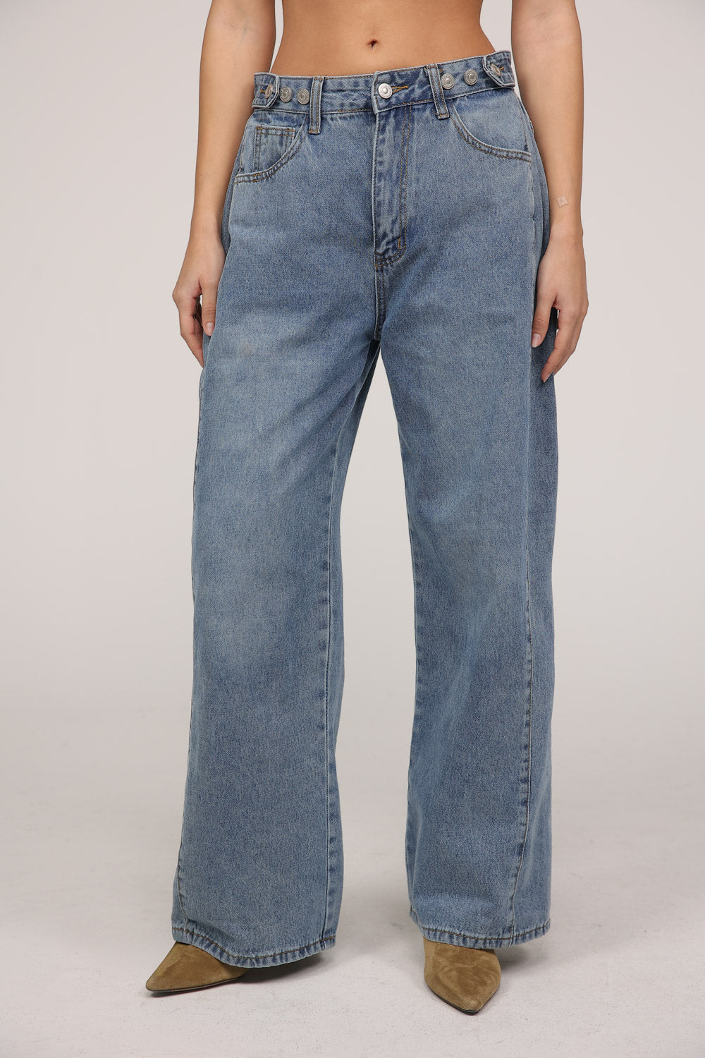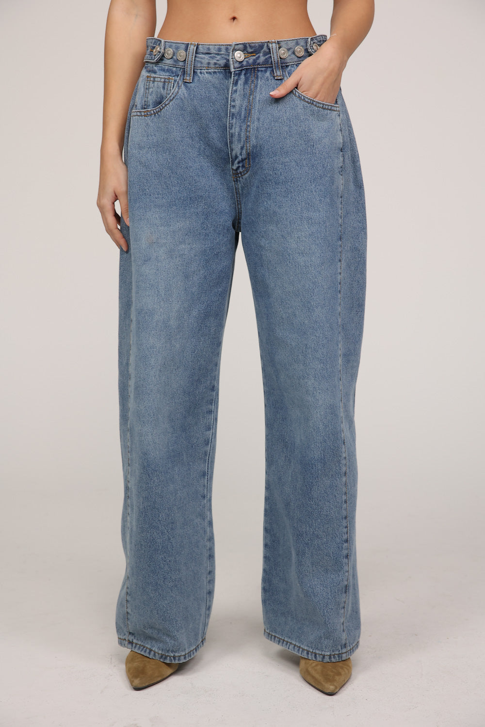 מעוצב בגוון כחול בינוני עם שטיפה עדינה שמעניקה תחושת וינטג׳ רכה, כולל מותן גבוהה, סגירת כפתור ורוכסן וכיסים קלאסיים. עשוי בד ג׳ינס נעים עם נפילה טבעית, מתאים לשילוב עם חולצות צמודות, סריגים או ז׳קטים ליצירת לוק יומיומי מאוזן וקליל.