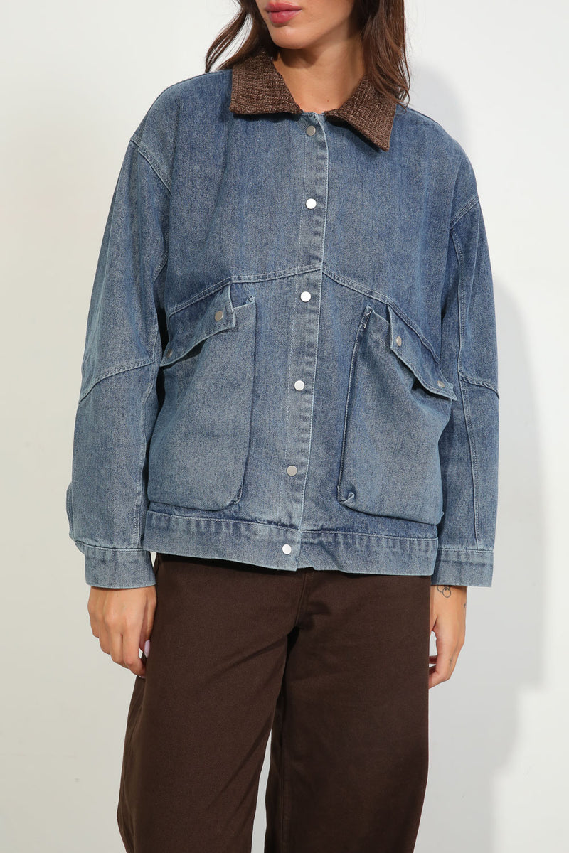 הדיטיילים של כיסי החזה, הכפתורים המתכתיים והתפרים המדויקים יוצרים מראה מושקע שמתבלט גם בסגנון יומיומי.