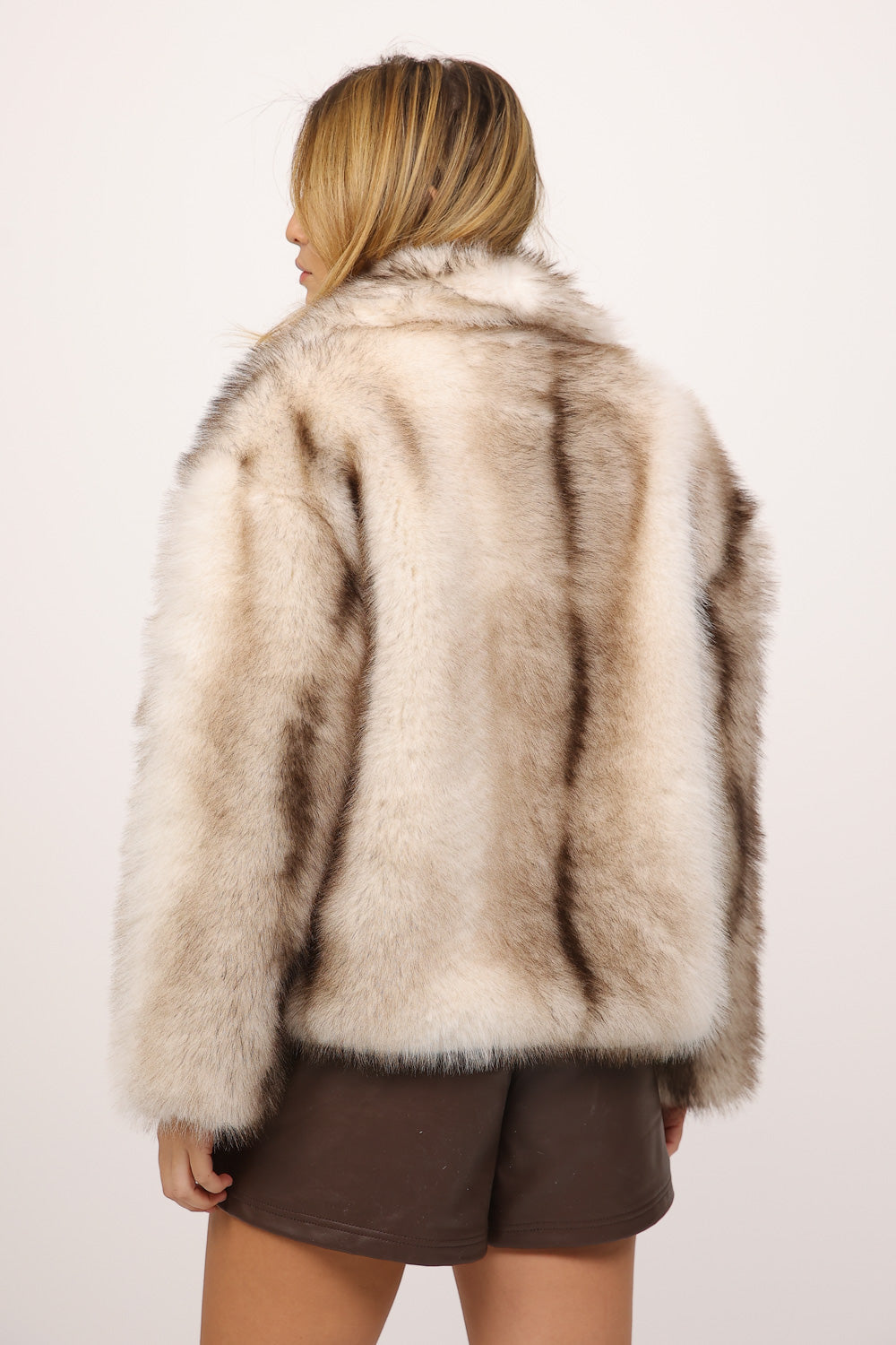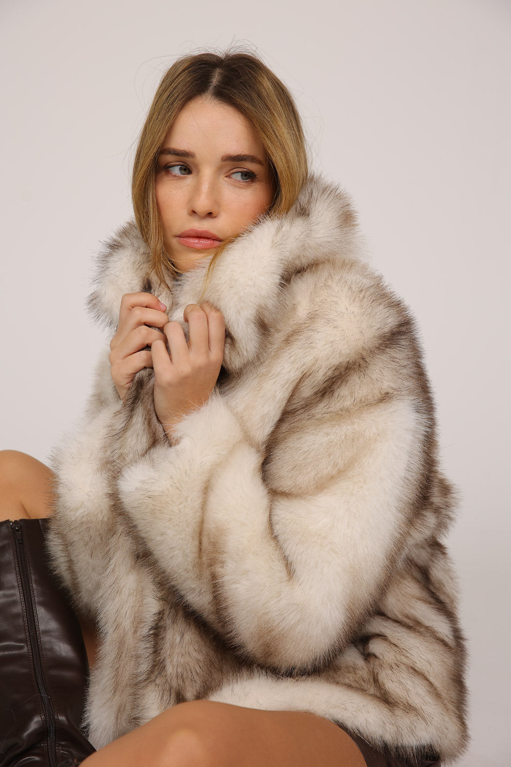 ג’קט פרווה בגזרה קצרה ונפוחה עם נוכחות עשירה ומראה חורפי חמים,