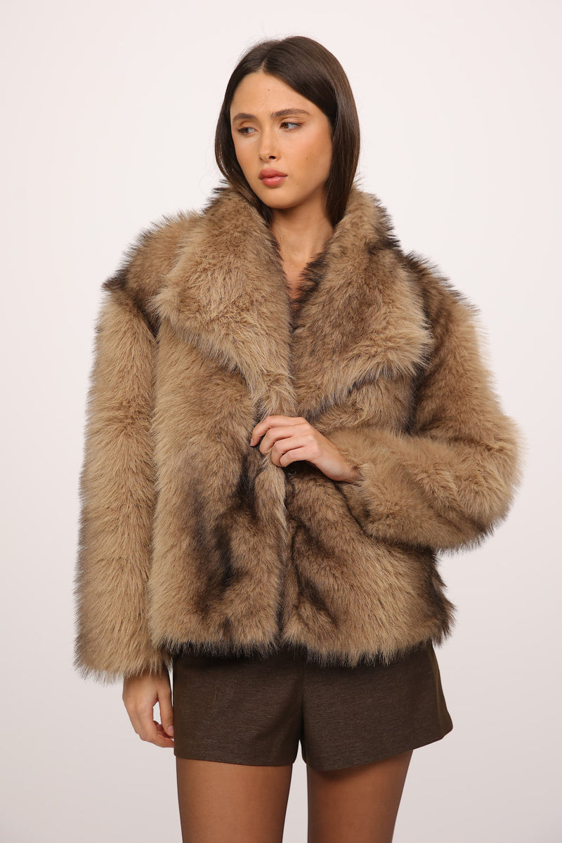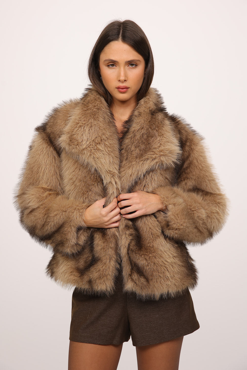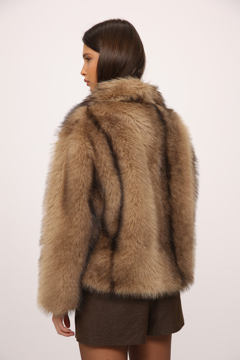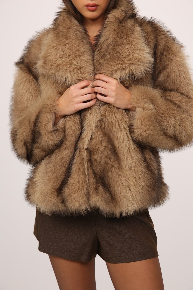 ג’קט פרווה בגזרה קצרה ונפוחה עם נוכחות עשירה ומראה חורפי חמים,