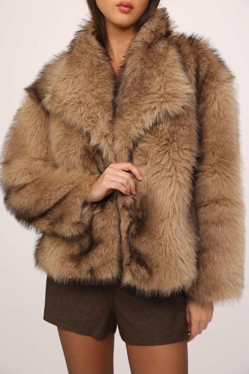 עשוי פרווה רכה בגוון מוקה עם מרקם מלא ונעים למגע.