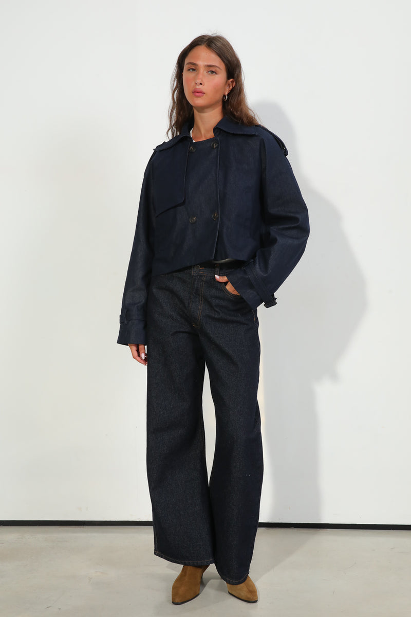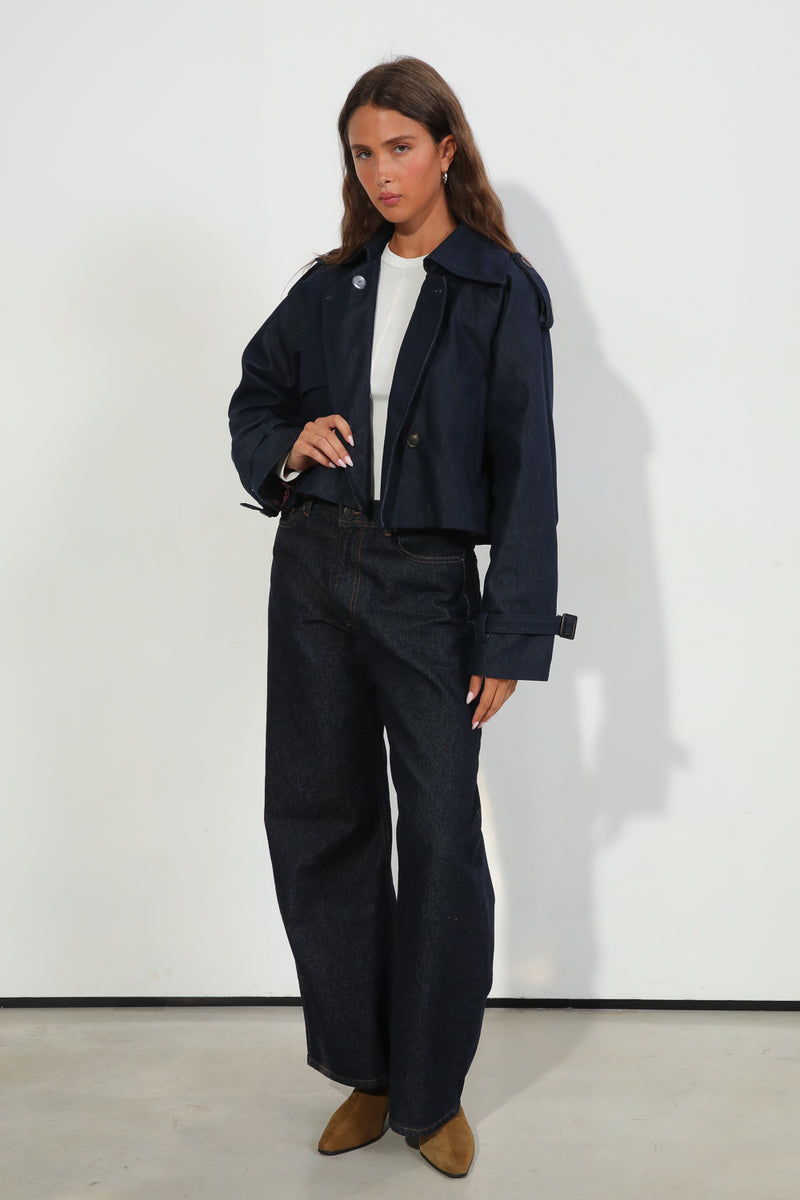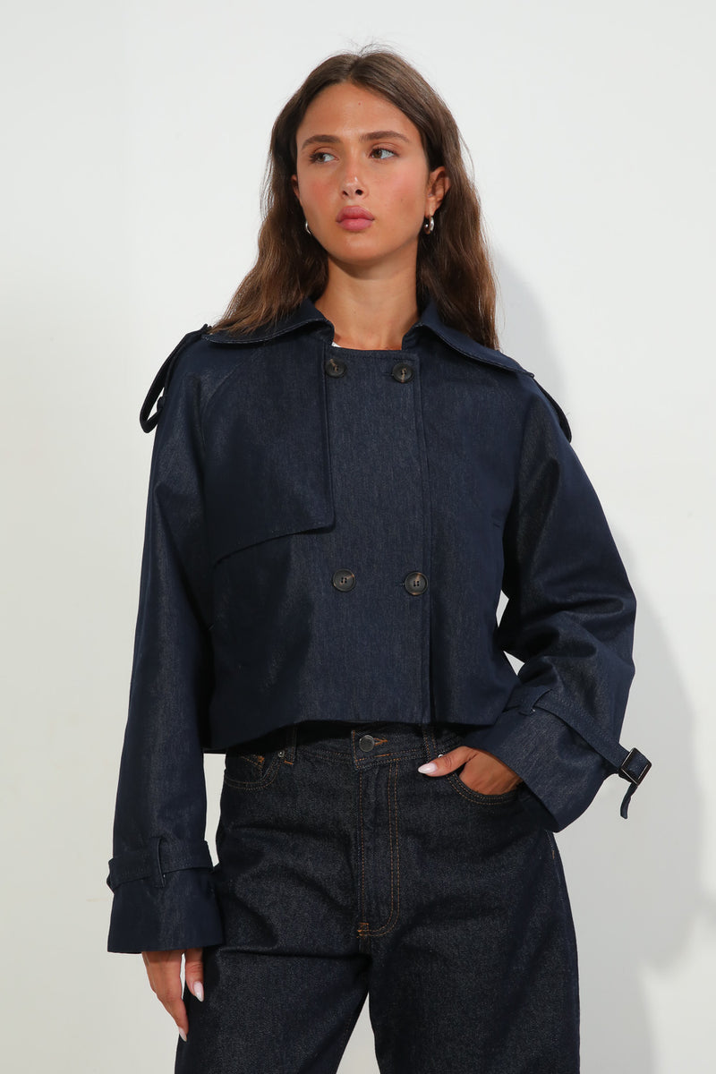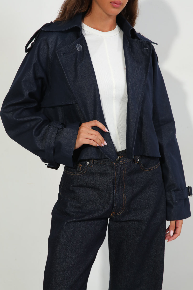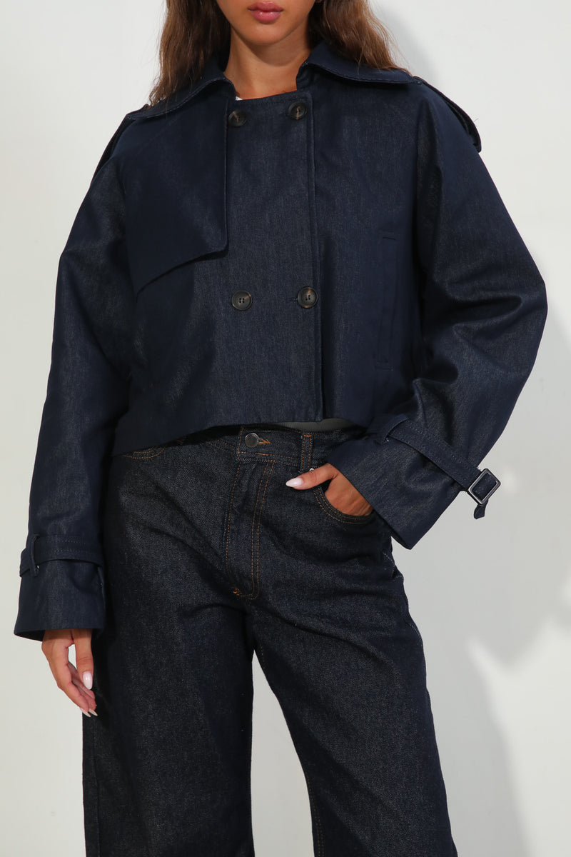 ג'קט ג'ינס בסגנון טרנץ' קצר, הכי טרנדי לעונה הקרובה!