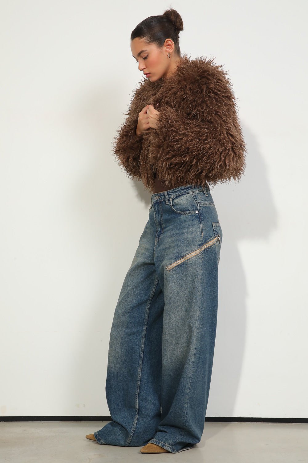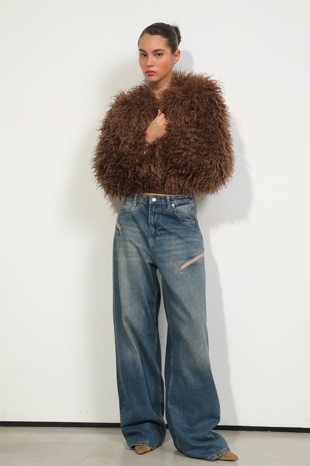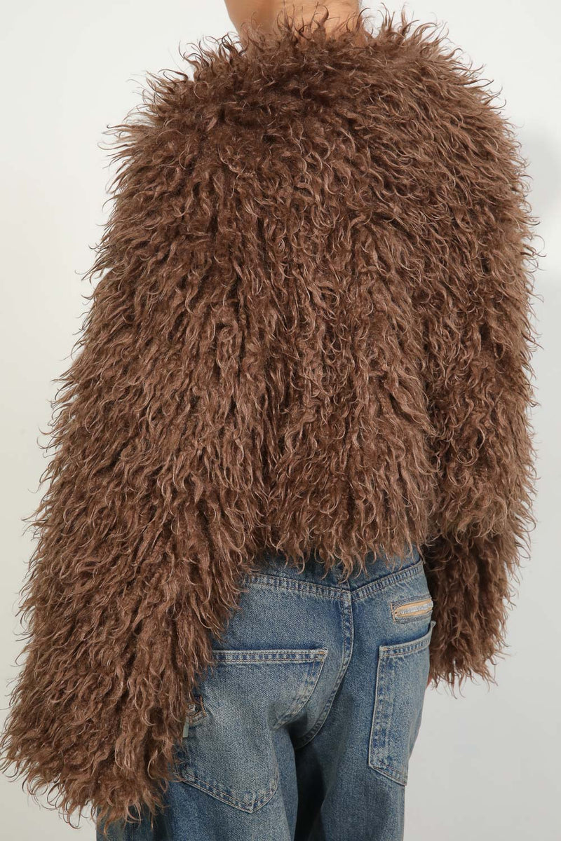 הג׳קט שמכניס נוכחות בכל צעד. פרווה סינתטית רכה ומלאה נראות, עם טקסטורה עשירה שמעניקה מראה מחוספס ומחמיא. גזרת קרופ שמדגישה את הגוף ומתאימה גם ללוק יומיומי וגם לערב.