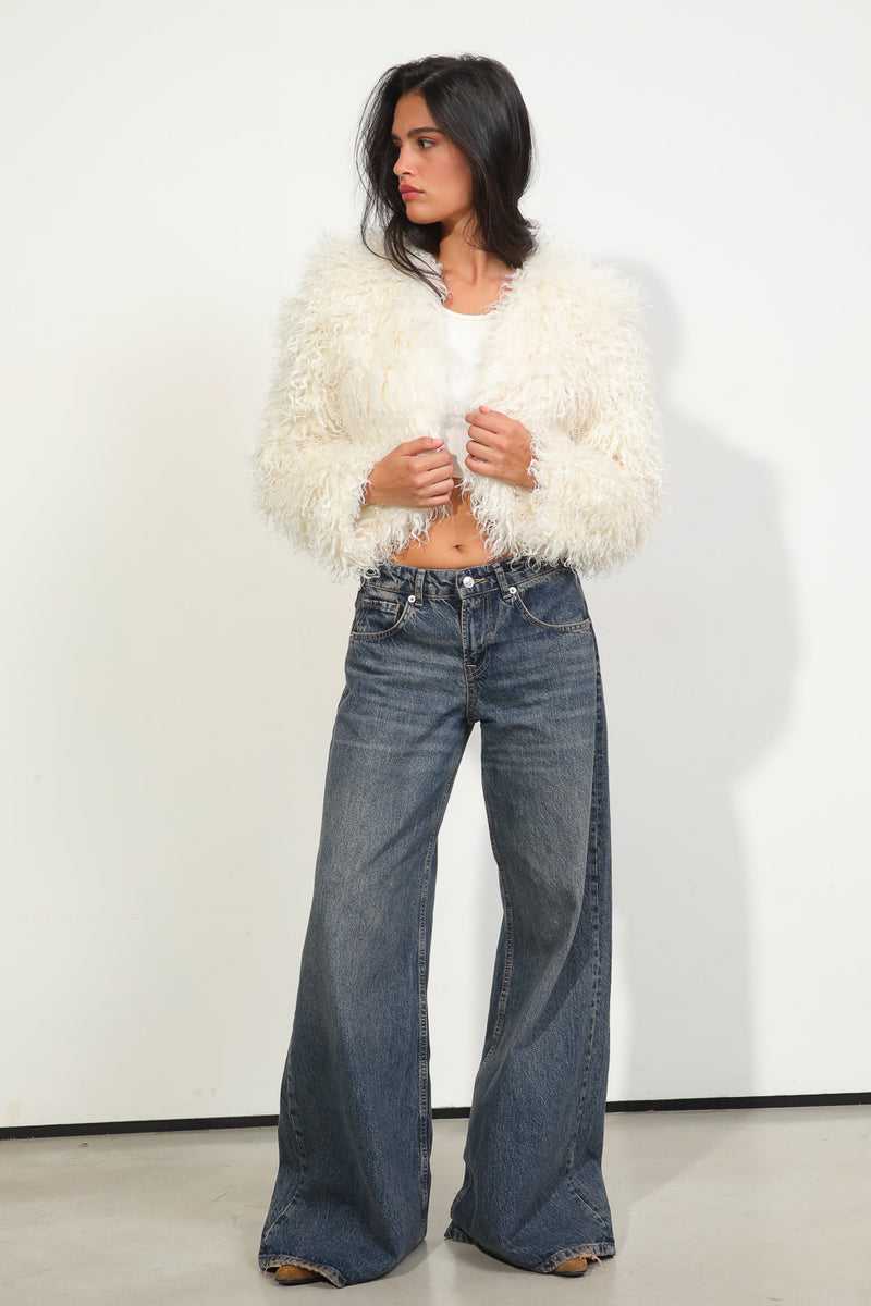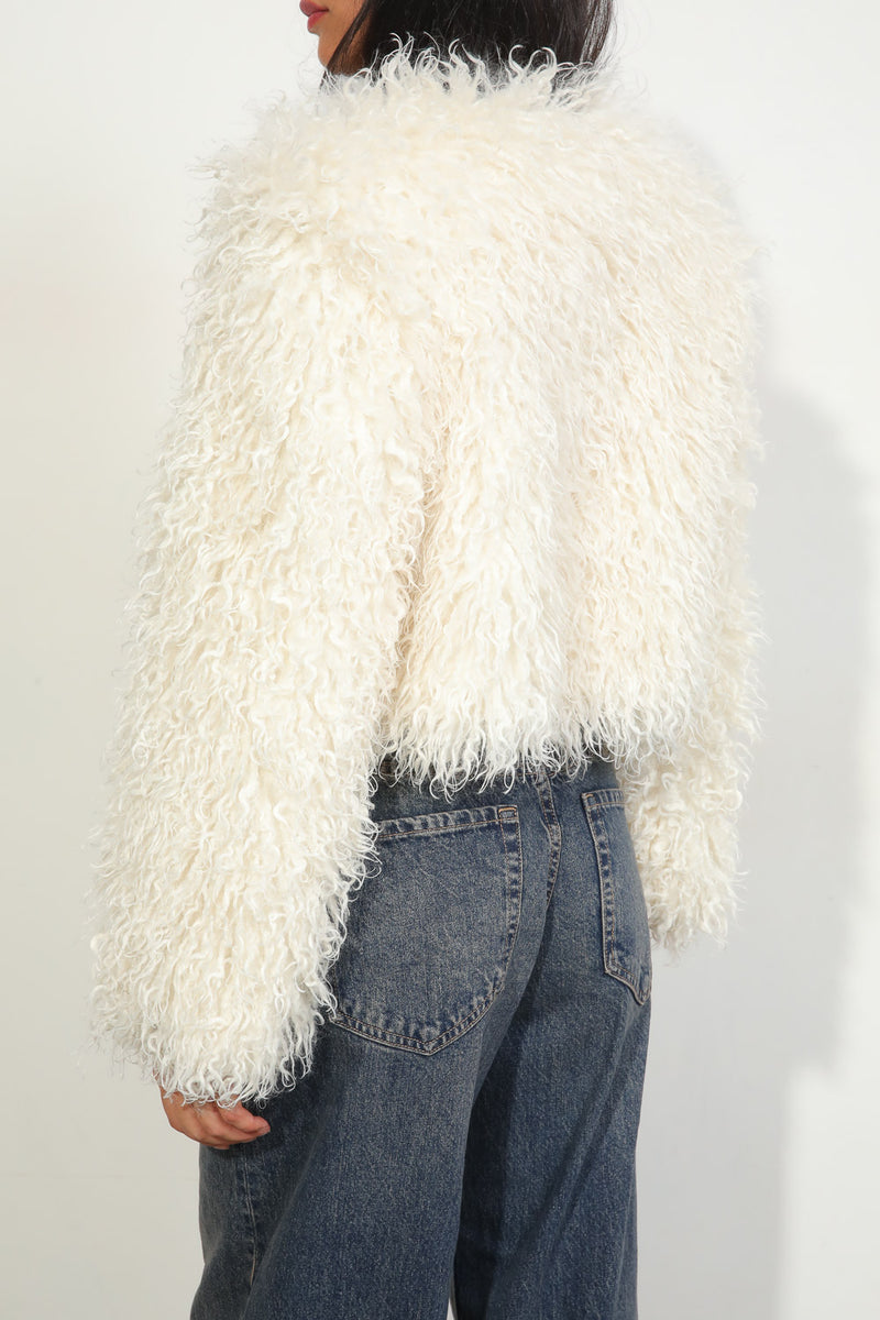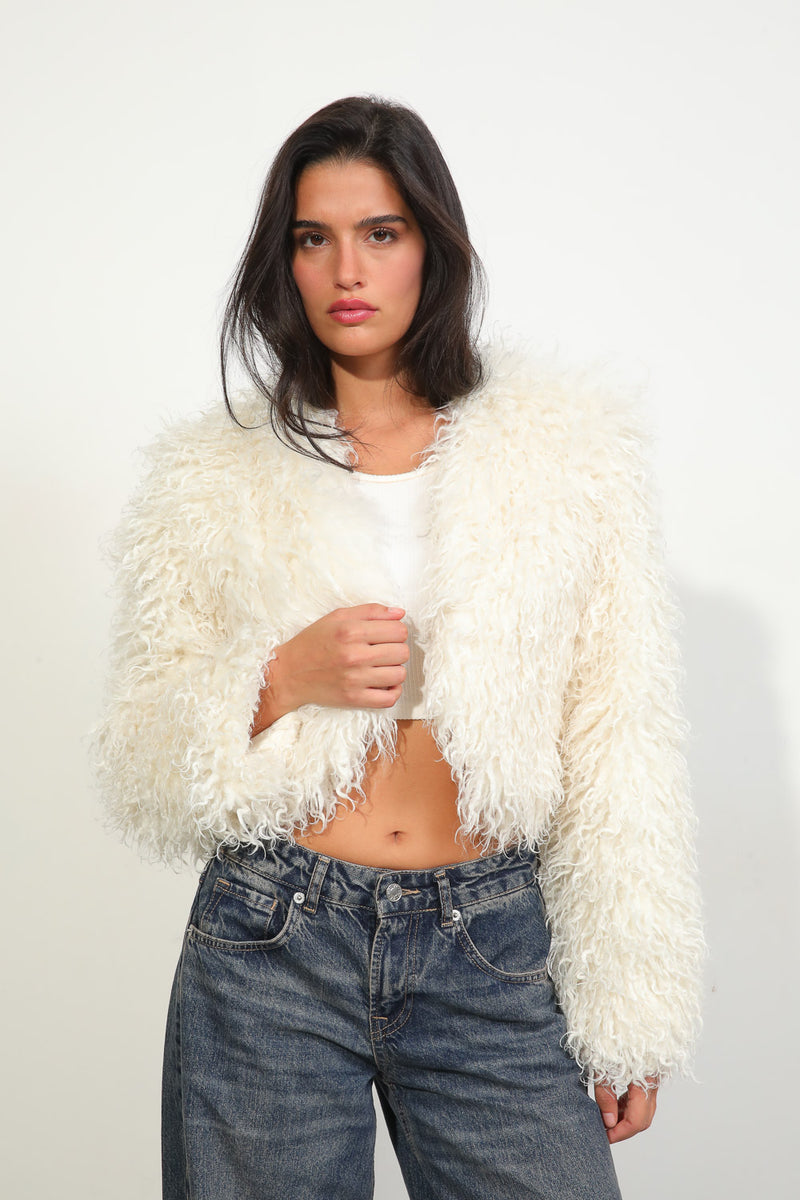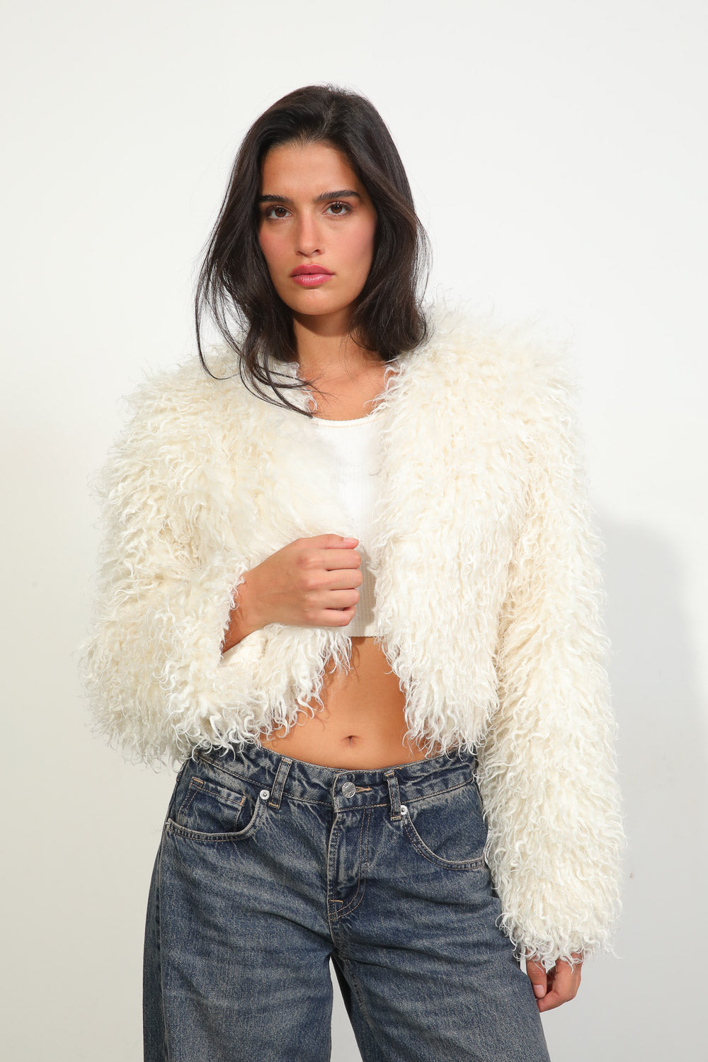 הג׳קט שמכניס נוכחות בכל צעד. פרווה סינתטית רכה ומלאה נראות, עם טקסטורה עשירה שמעניקה מראה מחוספס ומחמיא. גזרת קרופ שמדגישה את הגוף ומתאימה גם ללוק יומיומי וגם לערב.