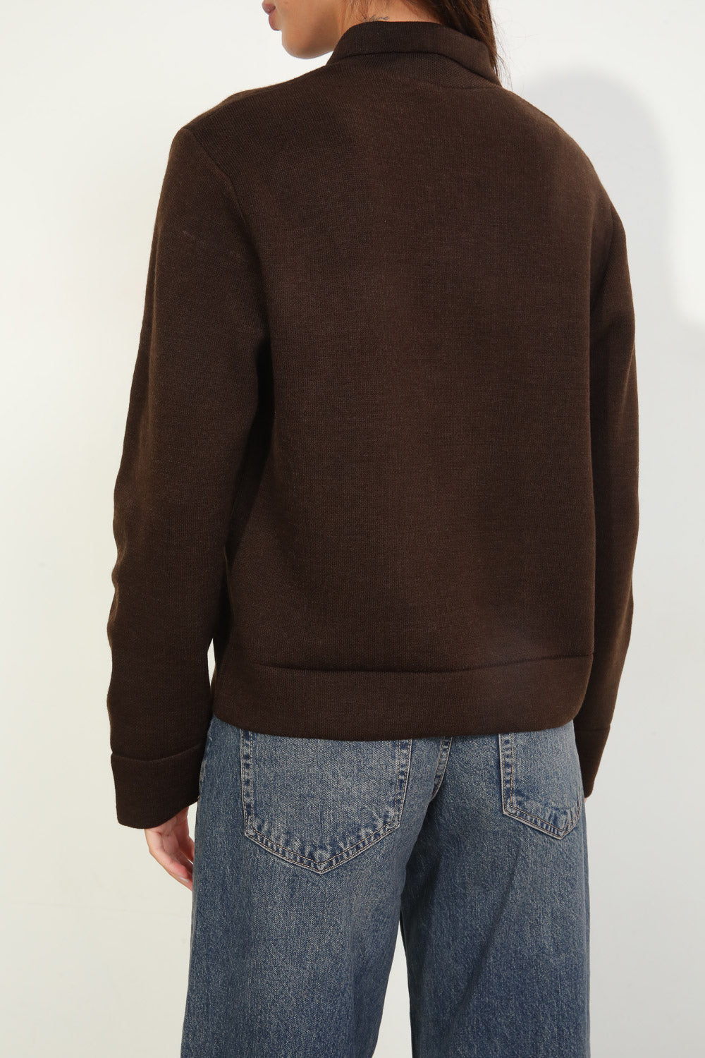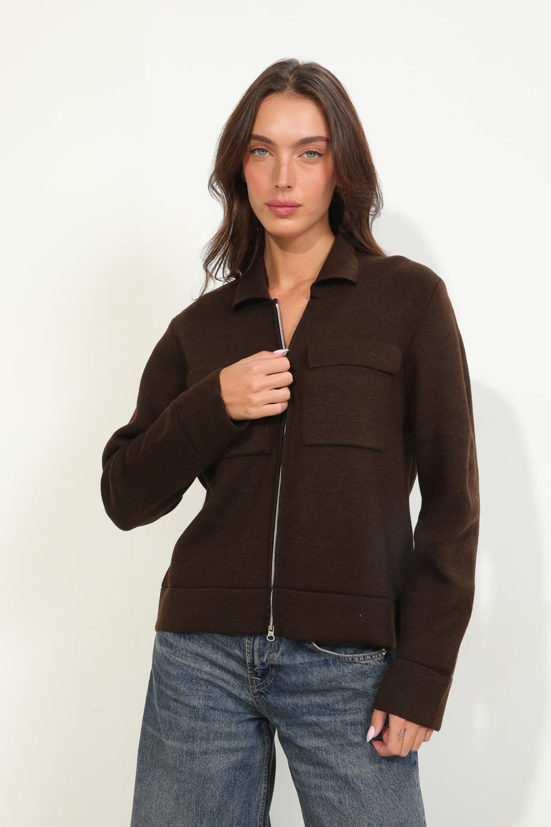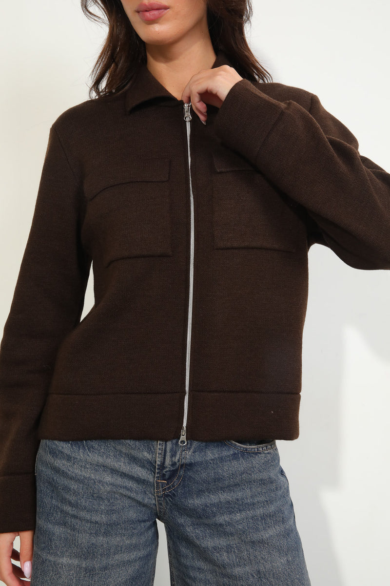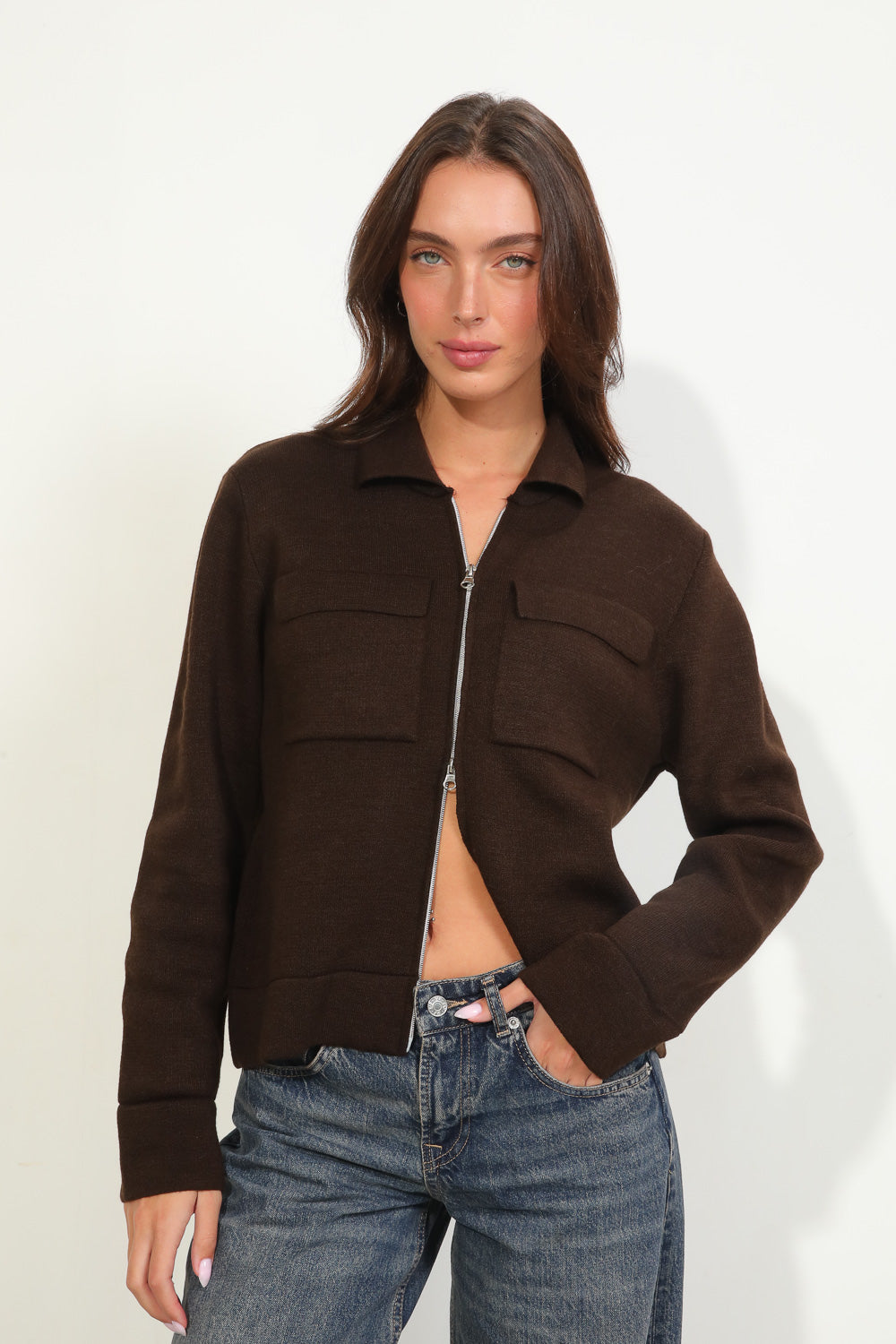 עשוי בד נעים בעל טקסטורה עשירה, עם כתפיים מודגשות וחזות על-זמנית שמשלבת אלגנטיות עם טאצ' אורבני.