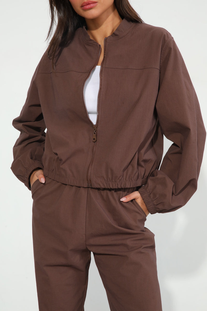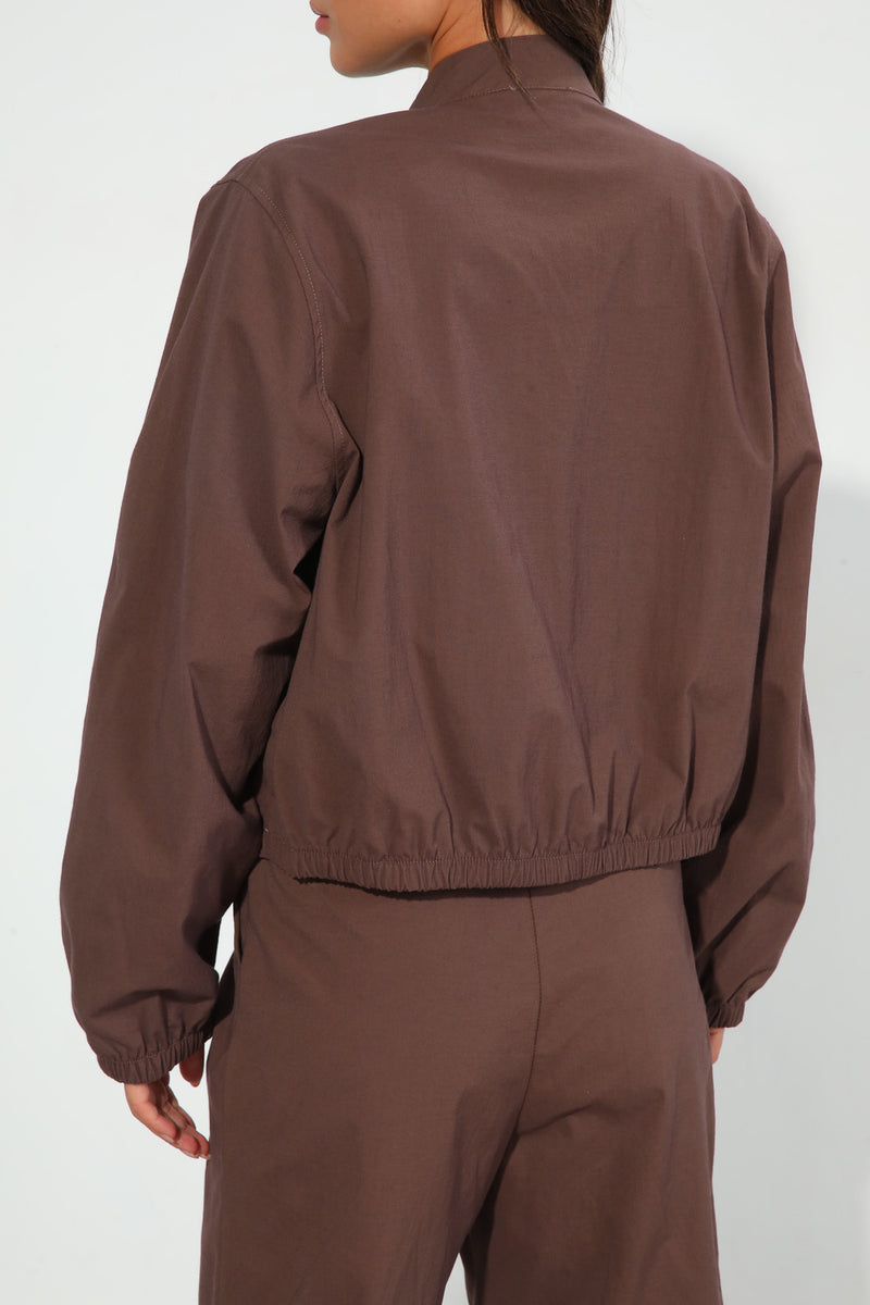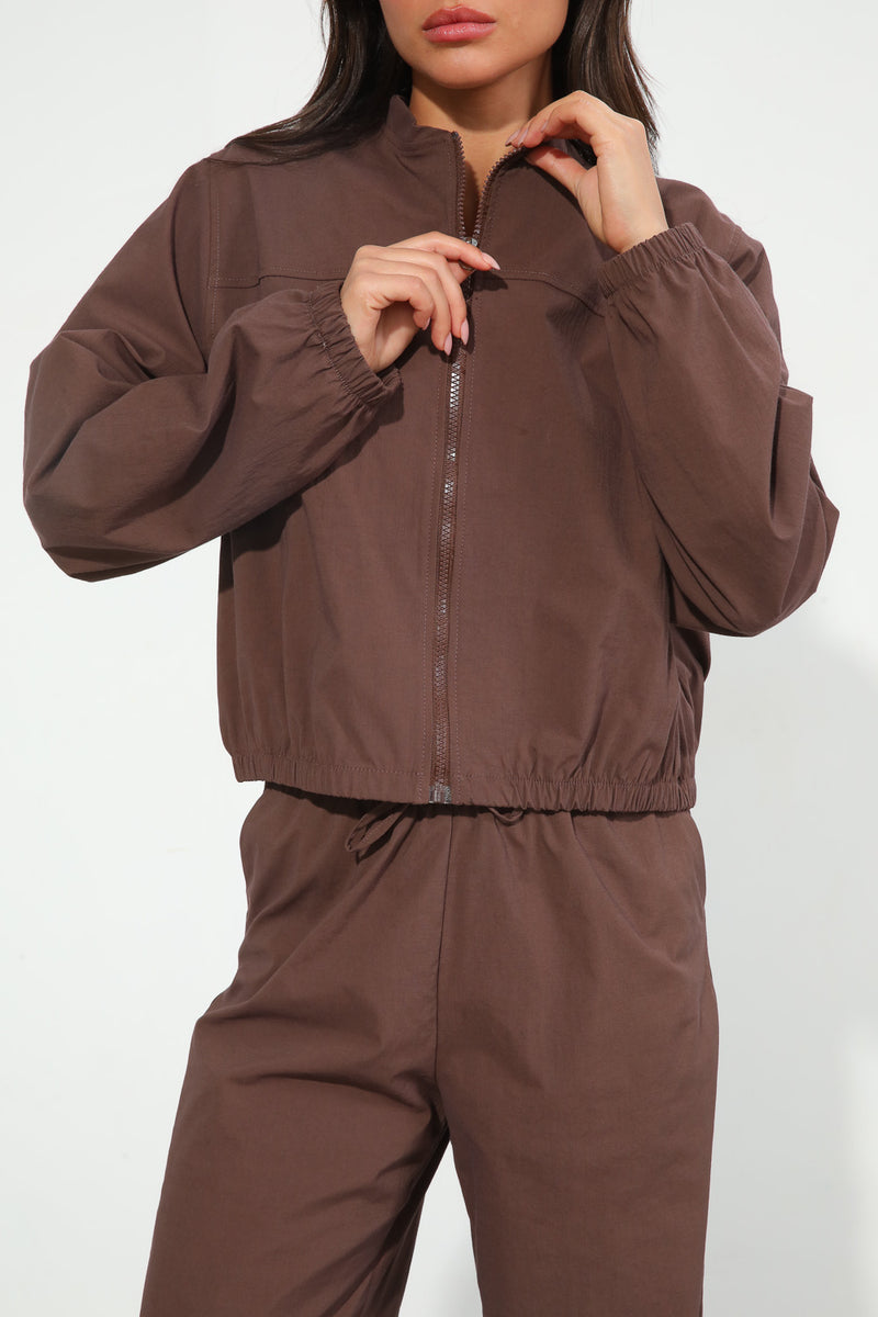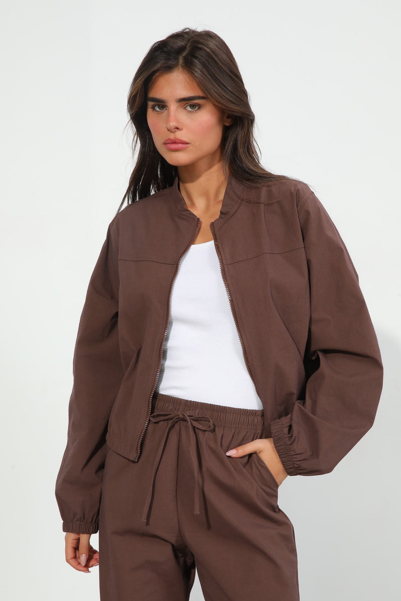 ג'קט ניילון קרופ עם צווארון סיני, סגירת רוכסן וכיסים בחזית,