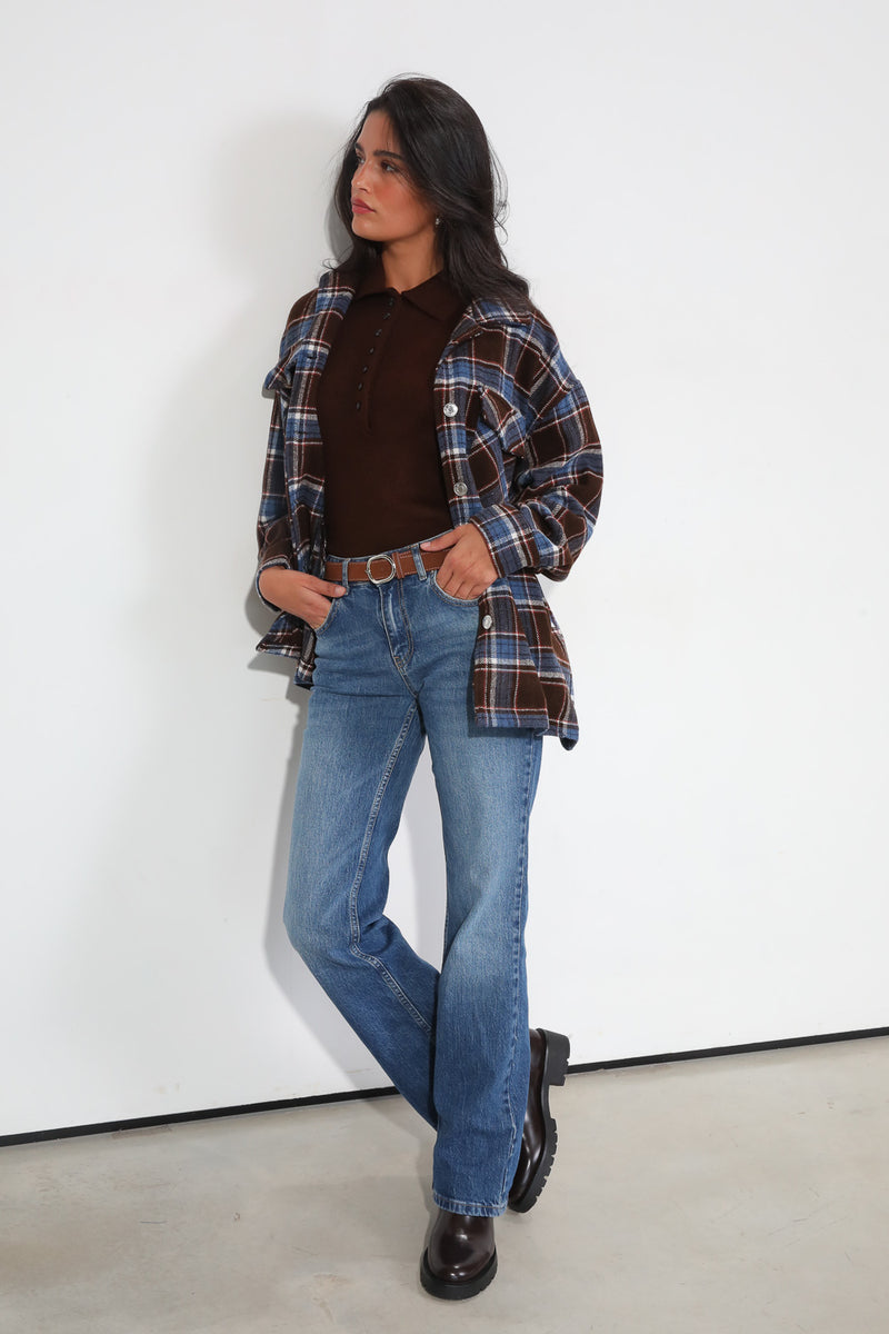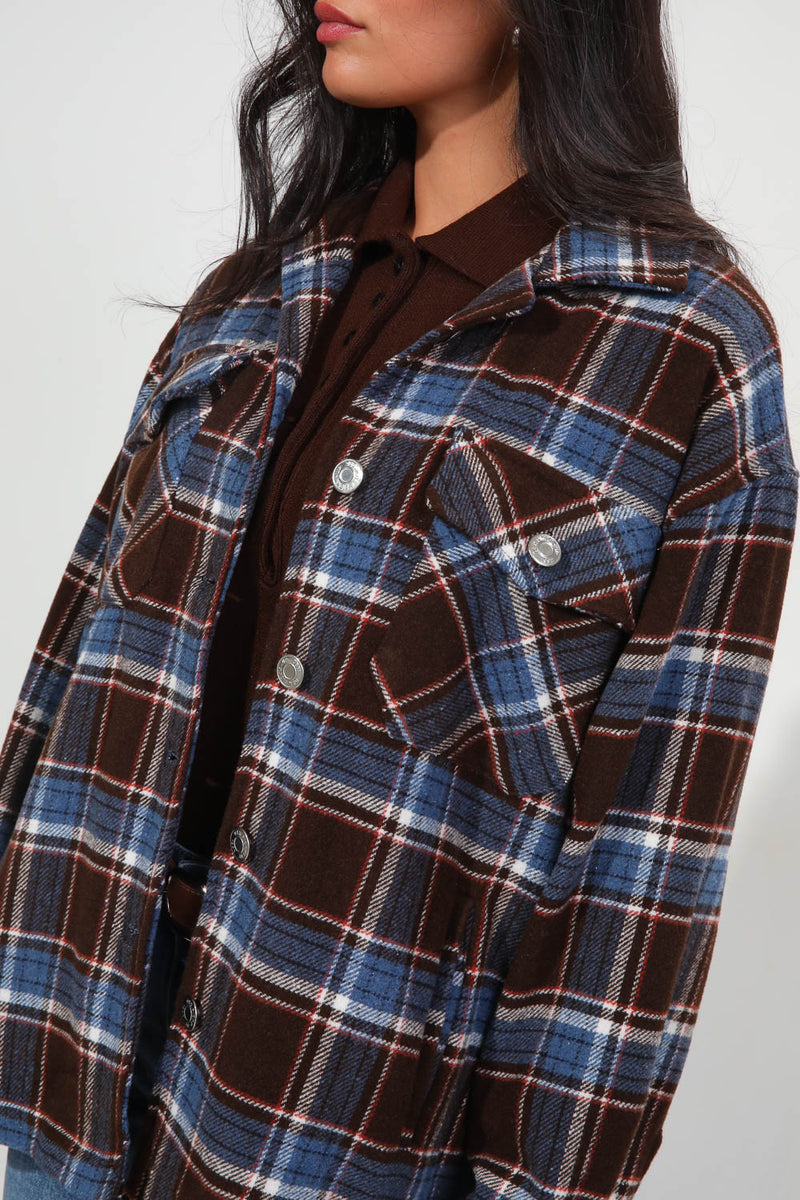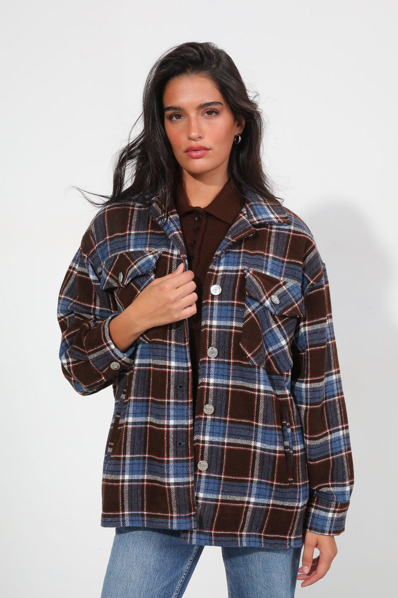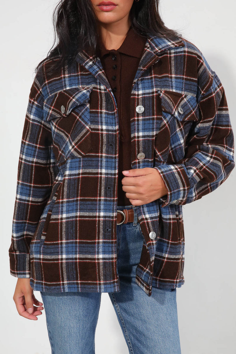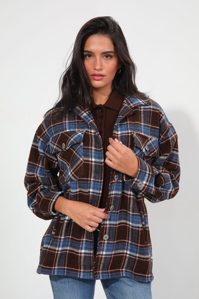 ג'קט משבצות היסטרי עם סגירת כפתורים וכיסים בחזית,