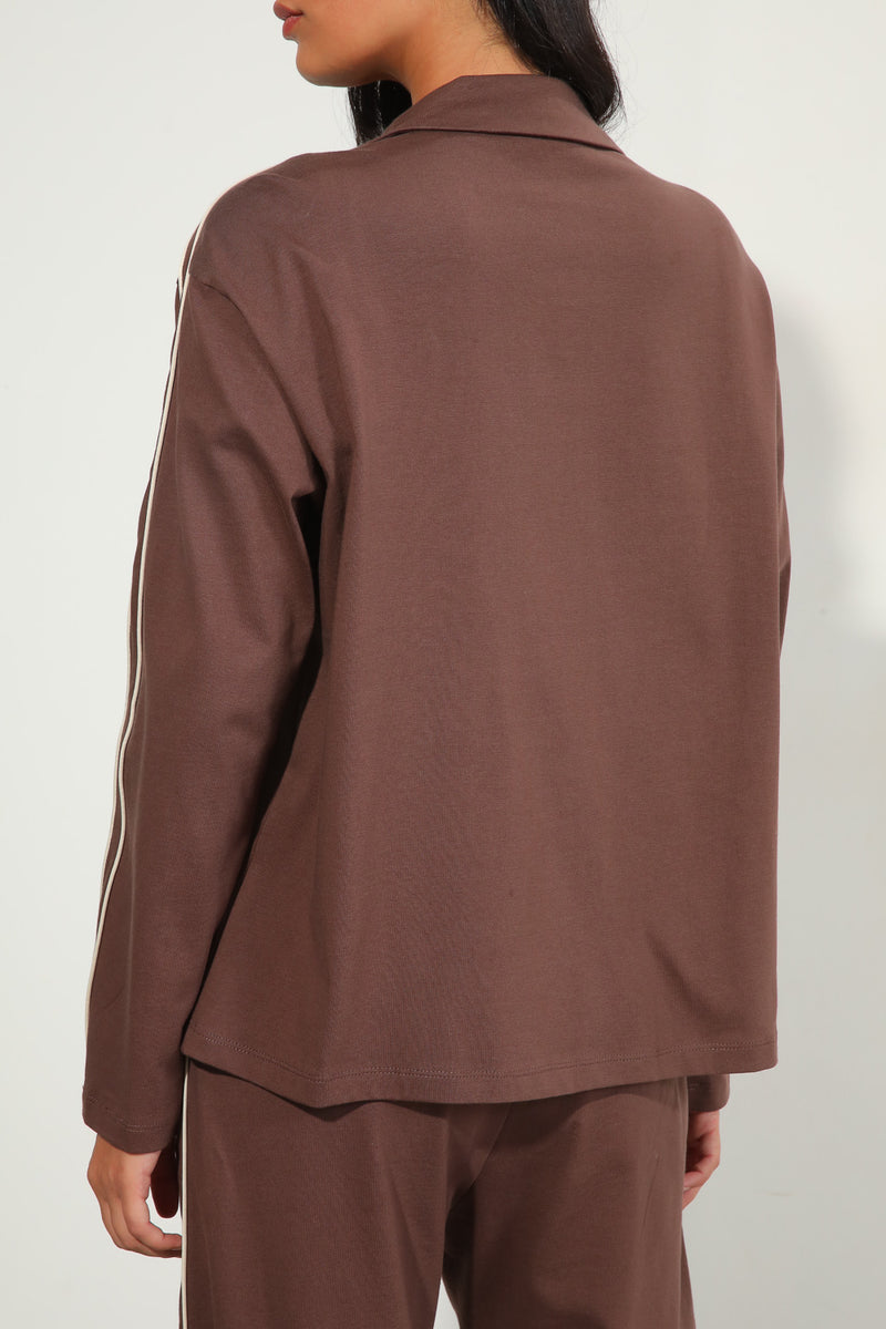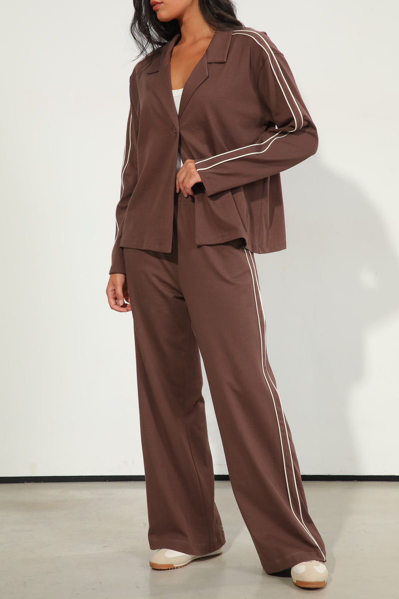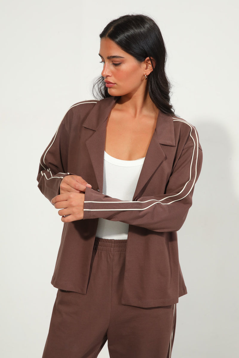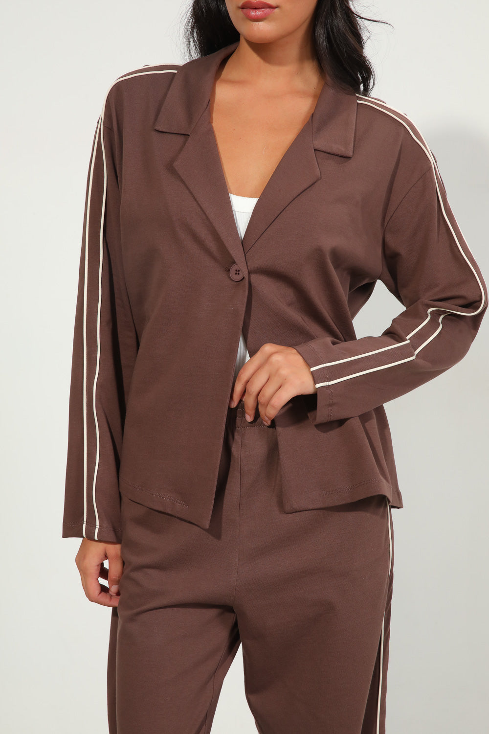 ג'קט עם סגירת כפתור בחזית בשילוב פסים בשרוולים,