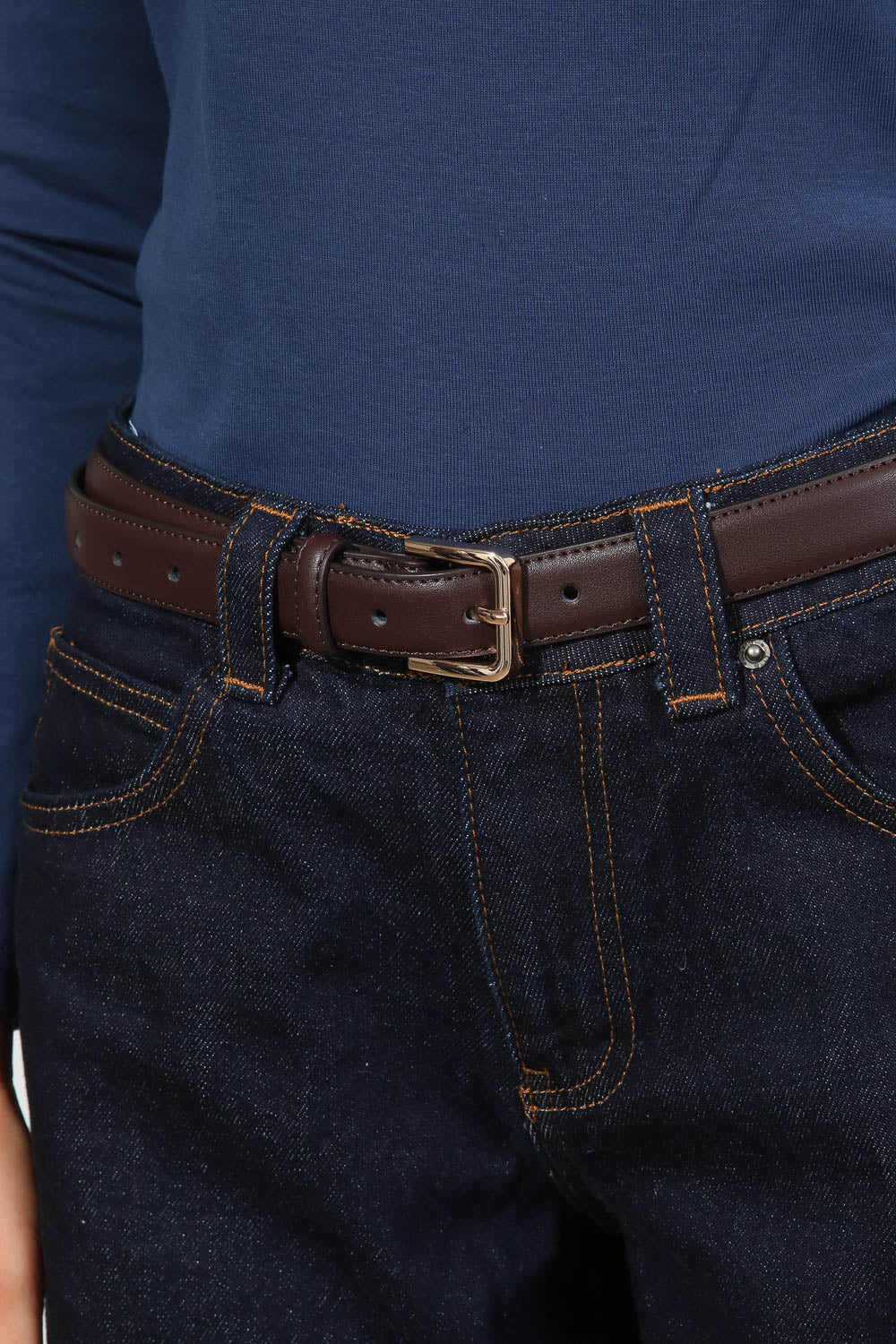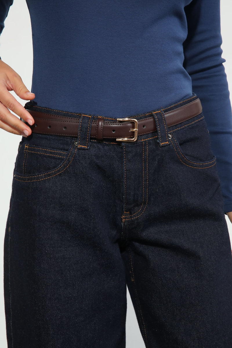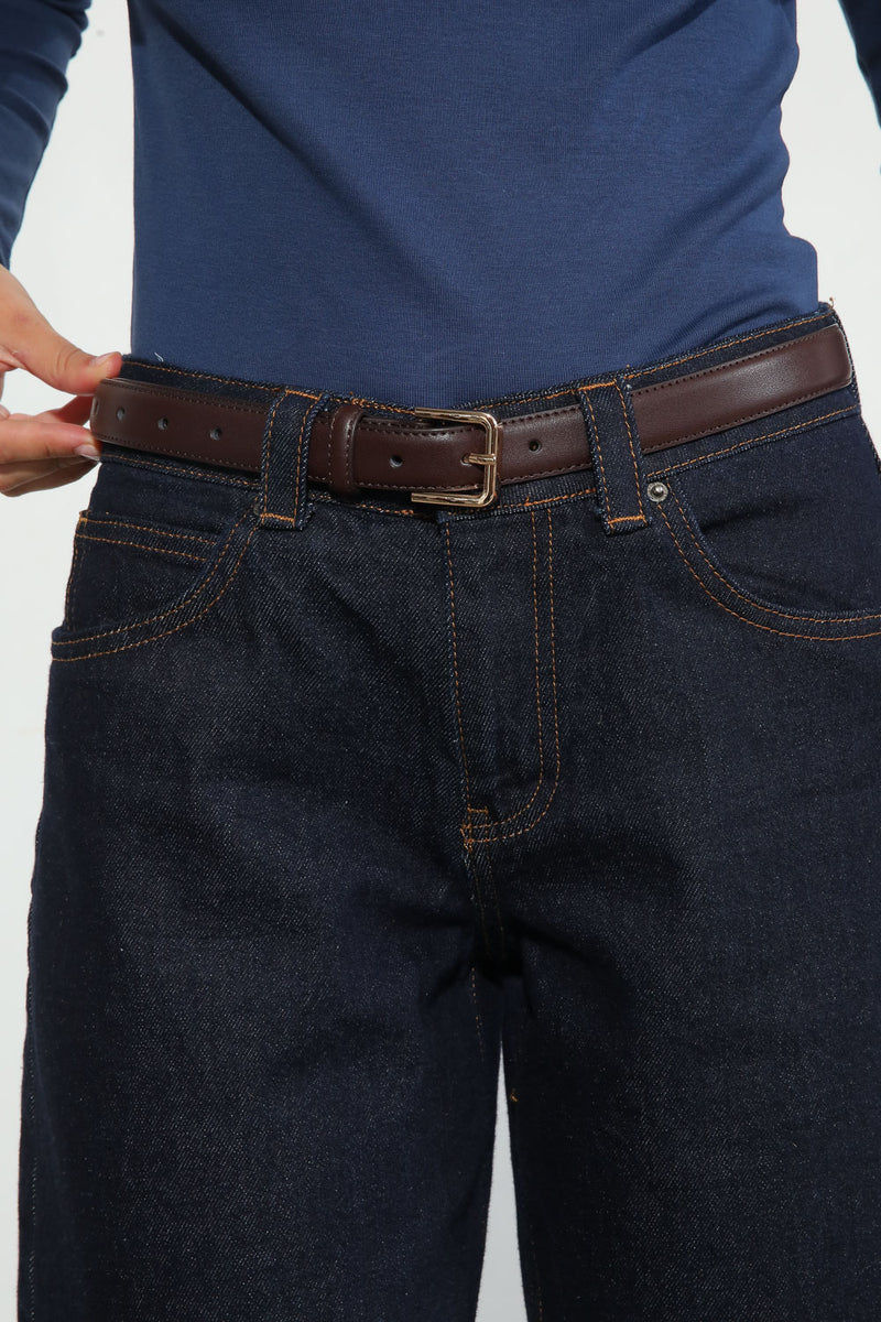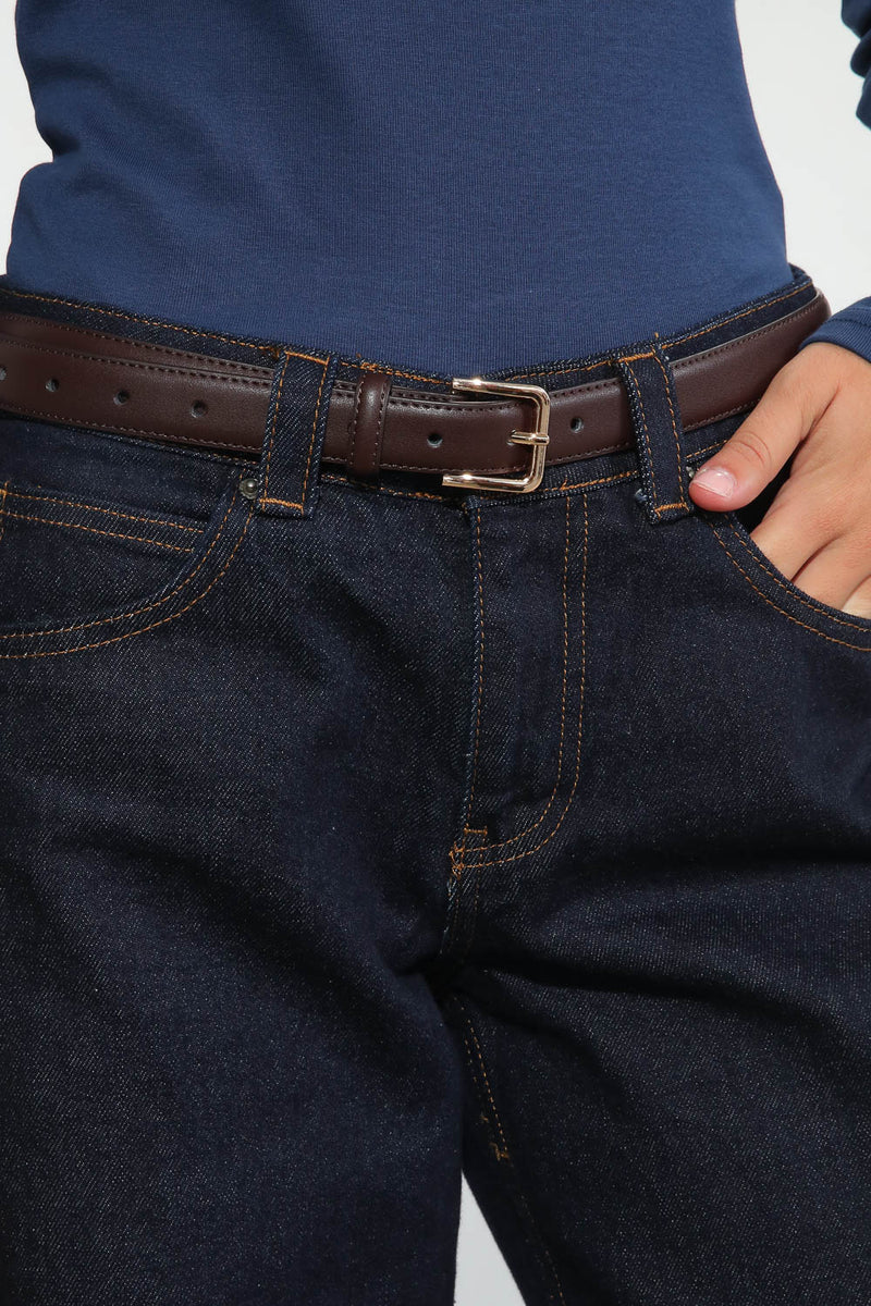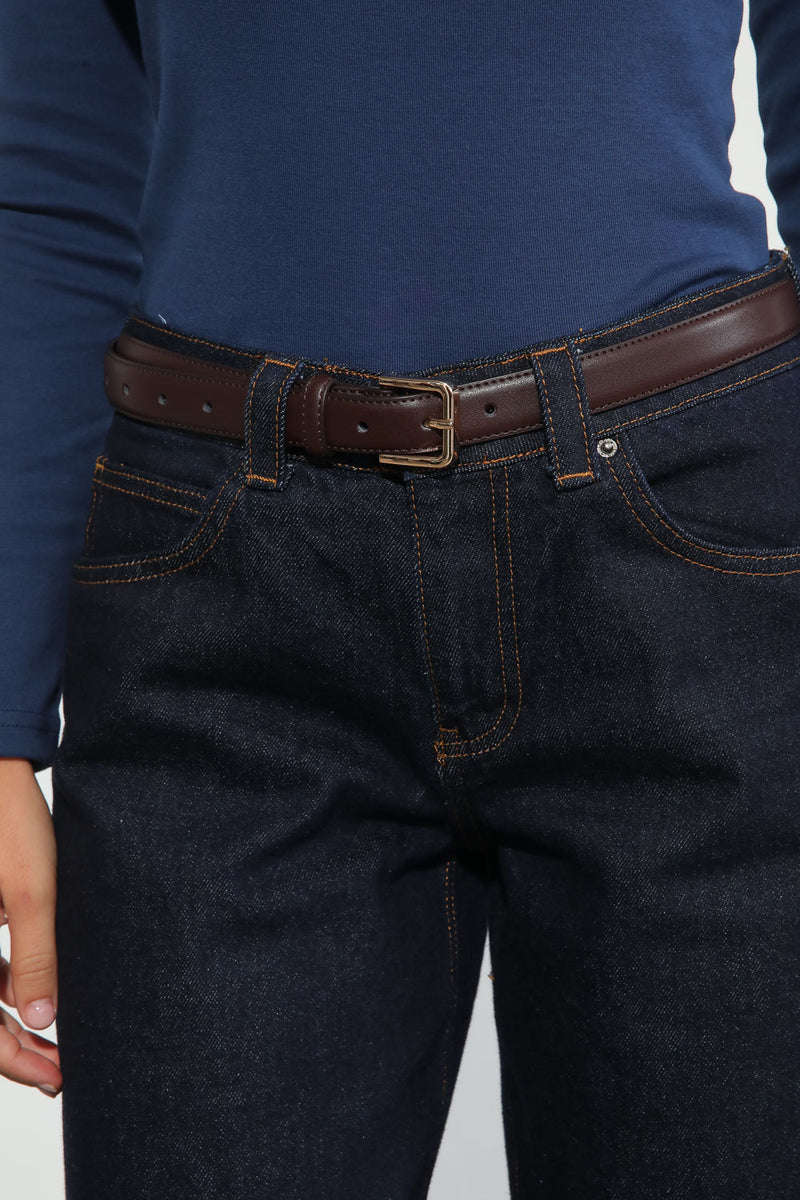 חגורת דמוי עור קלאסית בשילוב אבזם זהב.