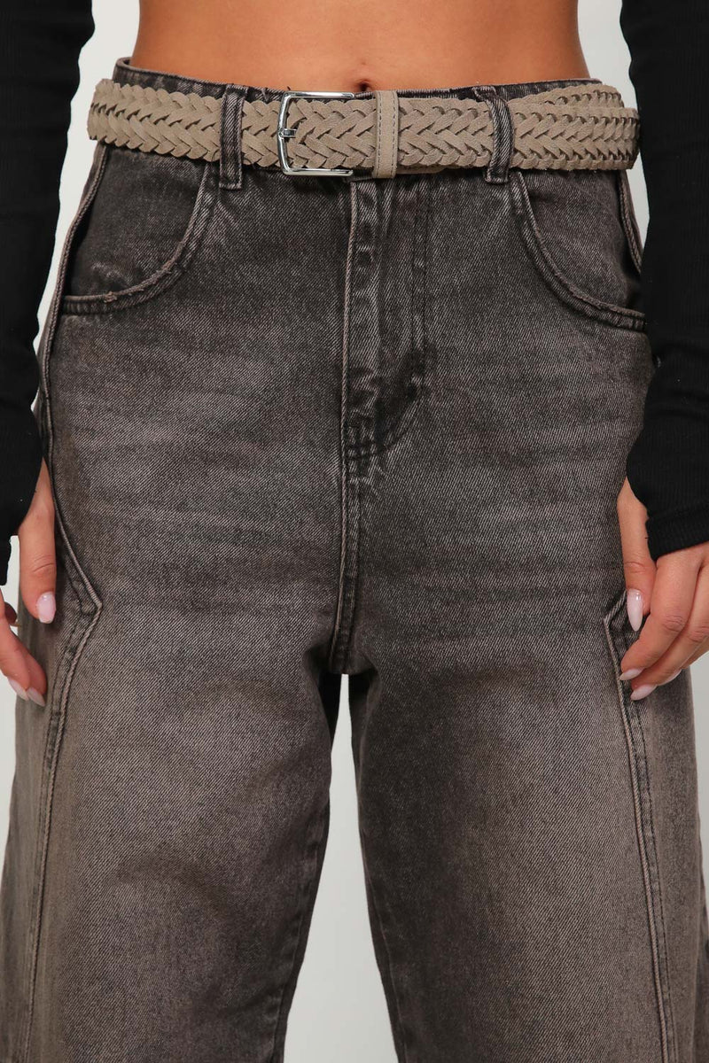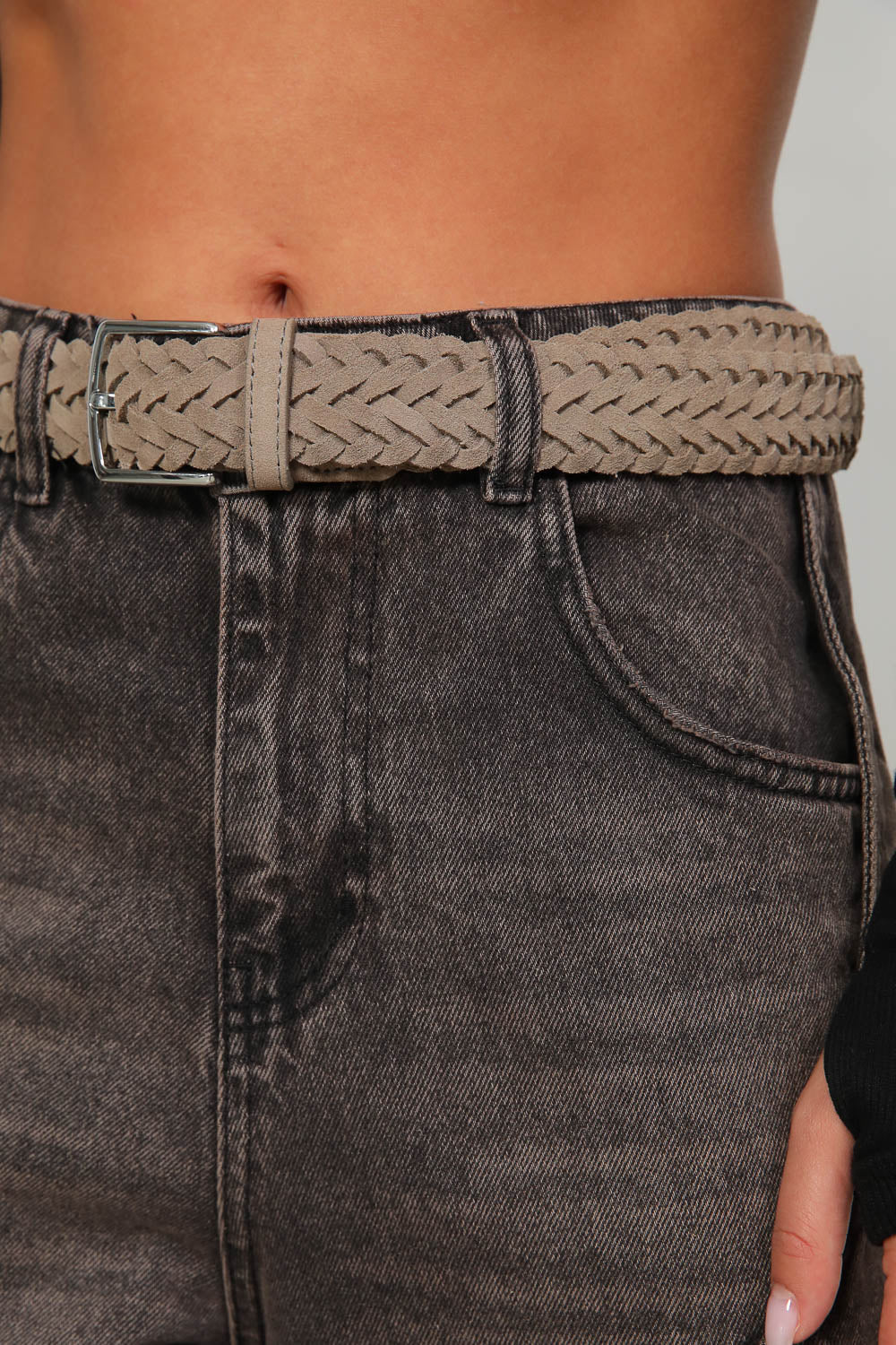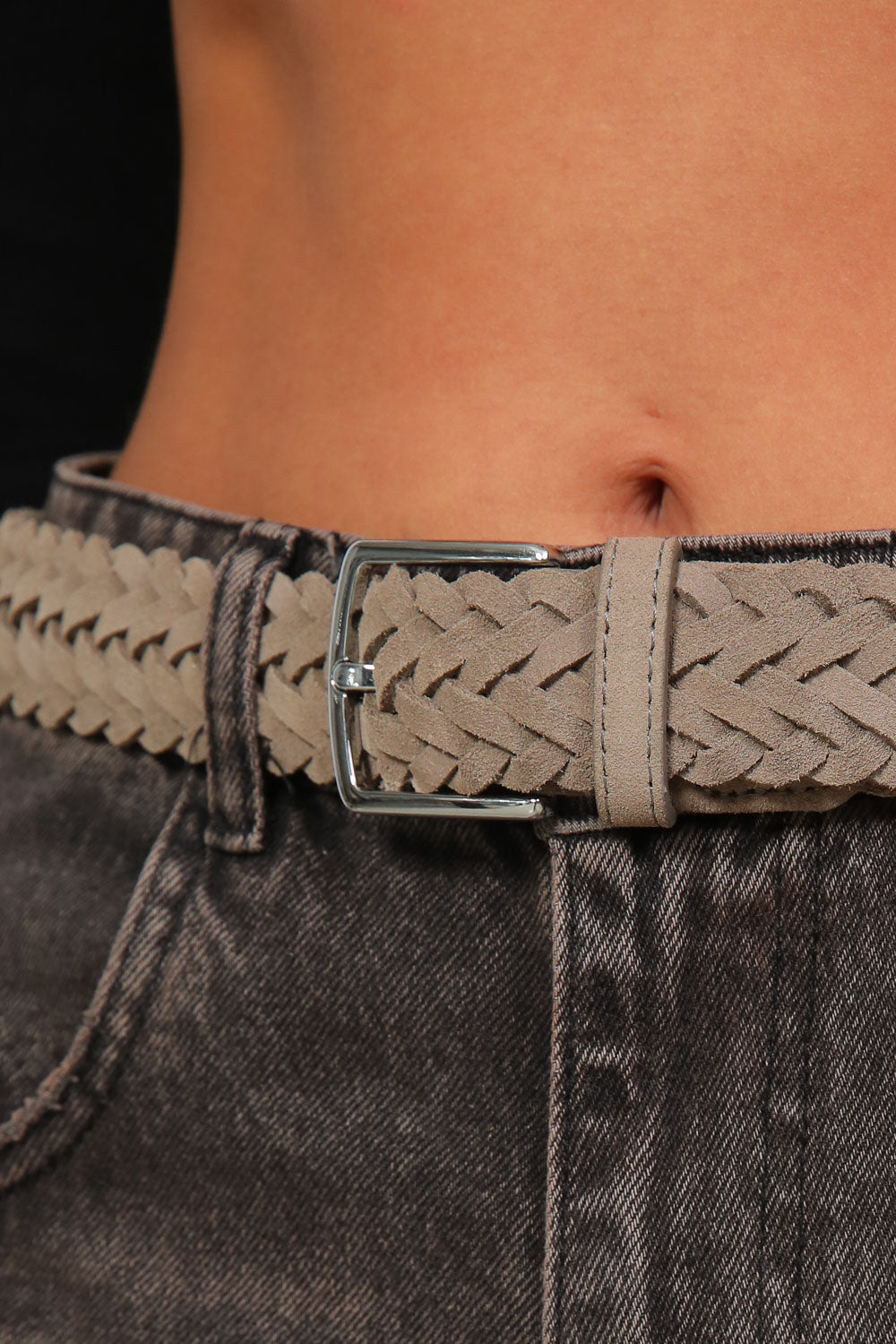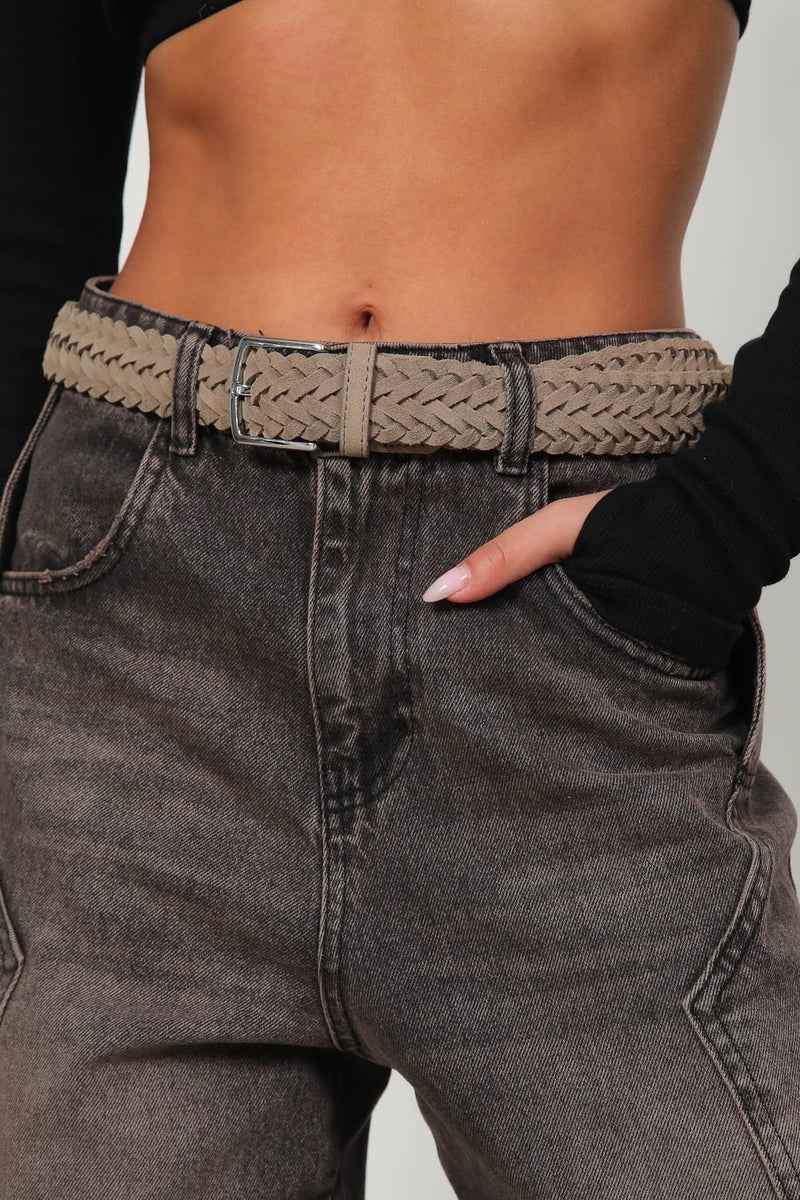 חגורת צמות קלועה בטקסטורת דמוי ז'מש עם אבזם כסוף,