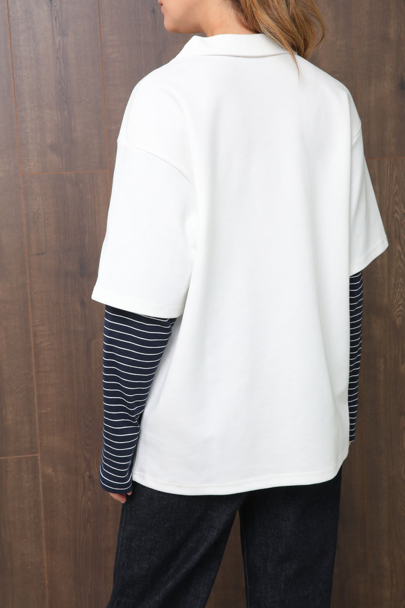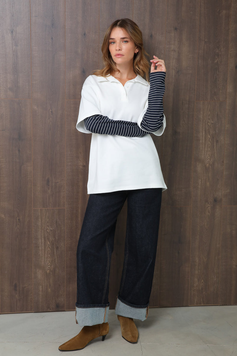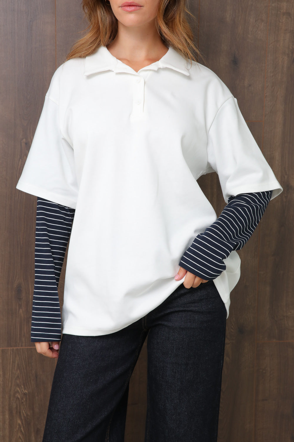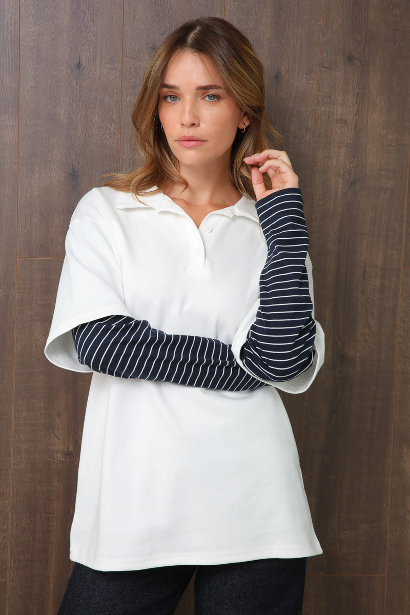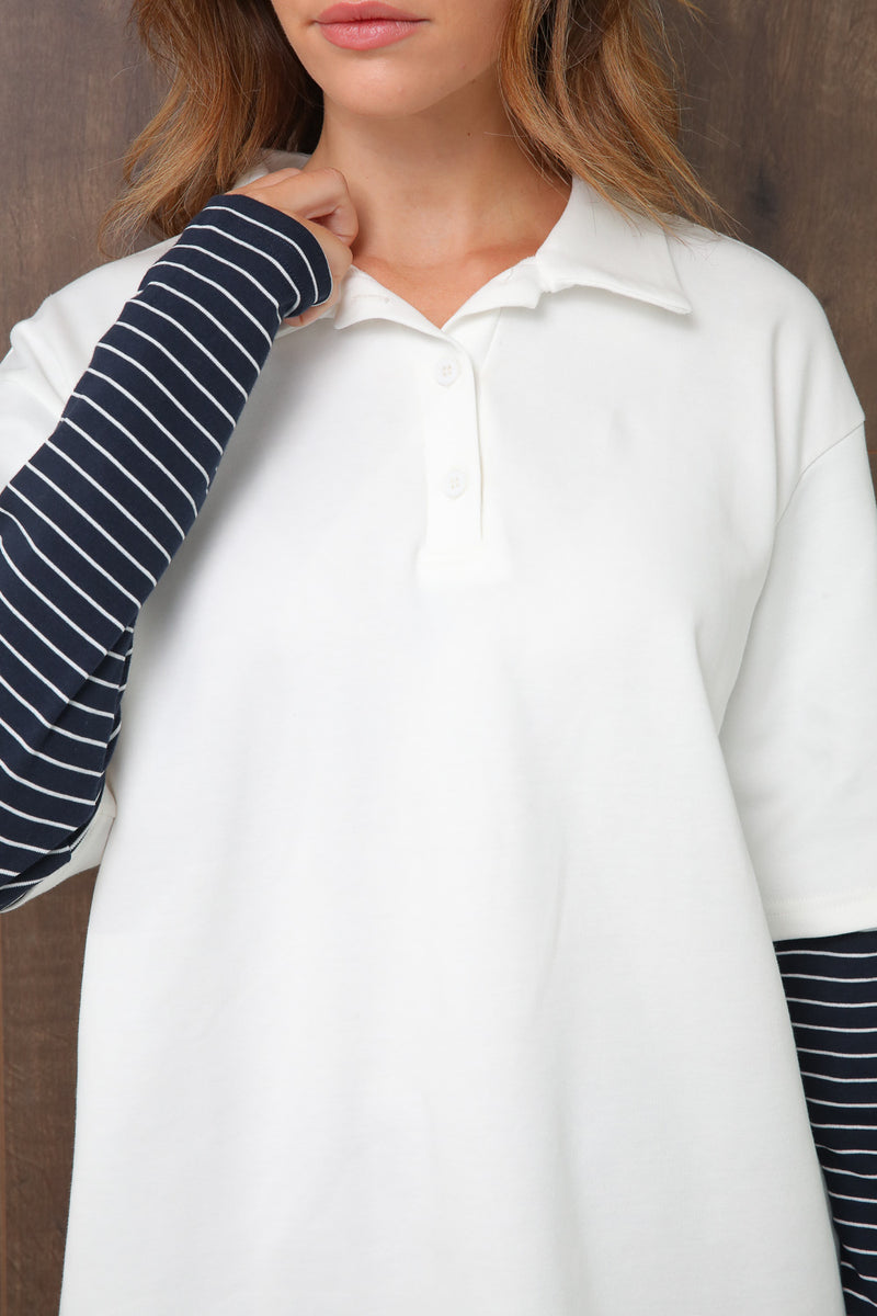חולצה מכופתרת עם צווארון שינה בשילוב שרוולים כפולים עם פרינט פסים,