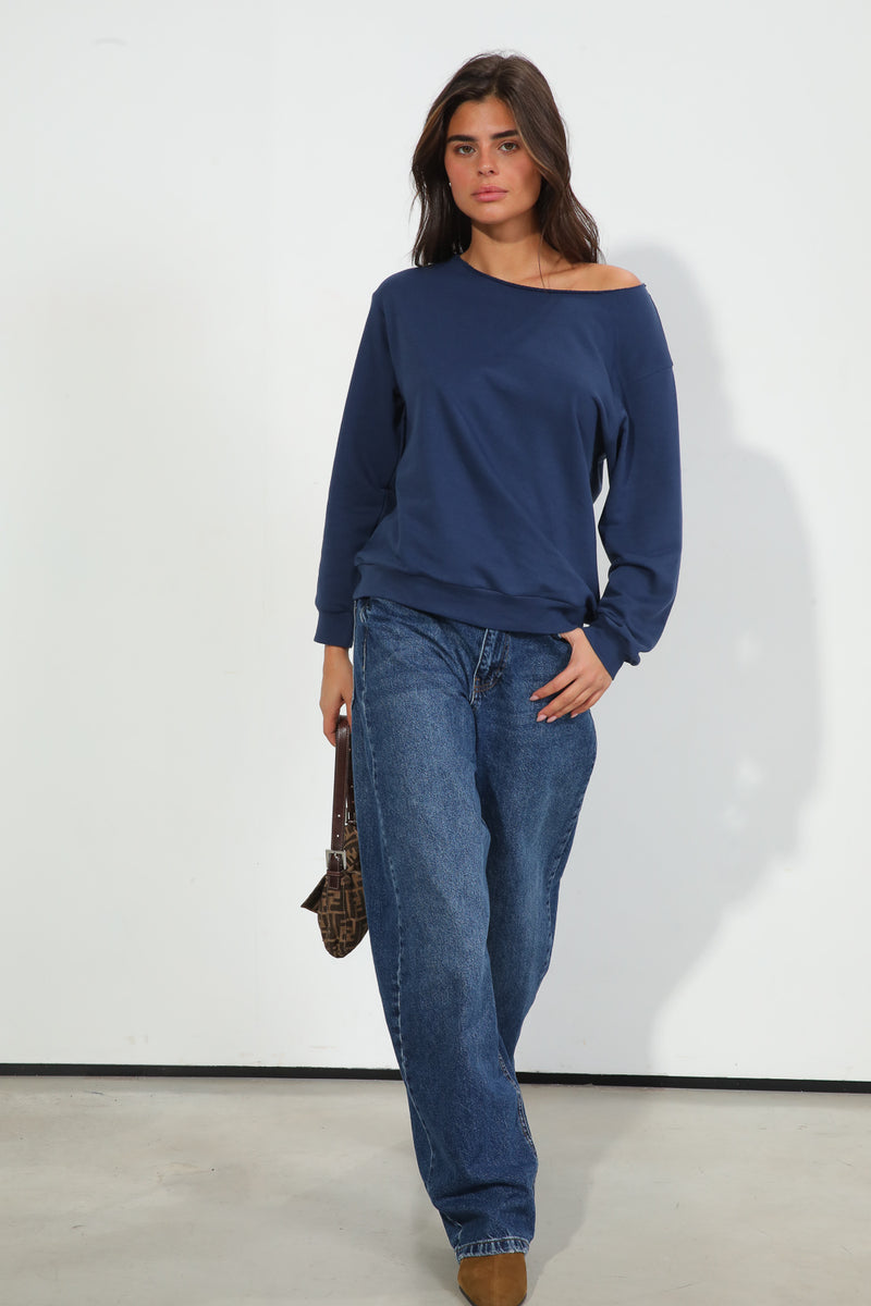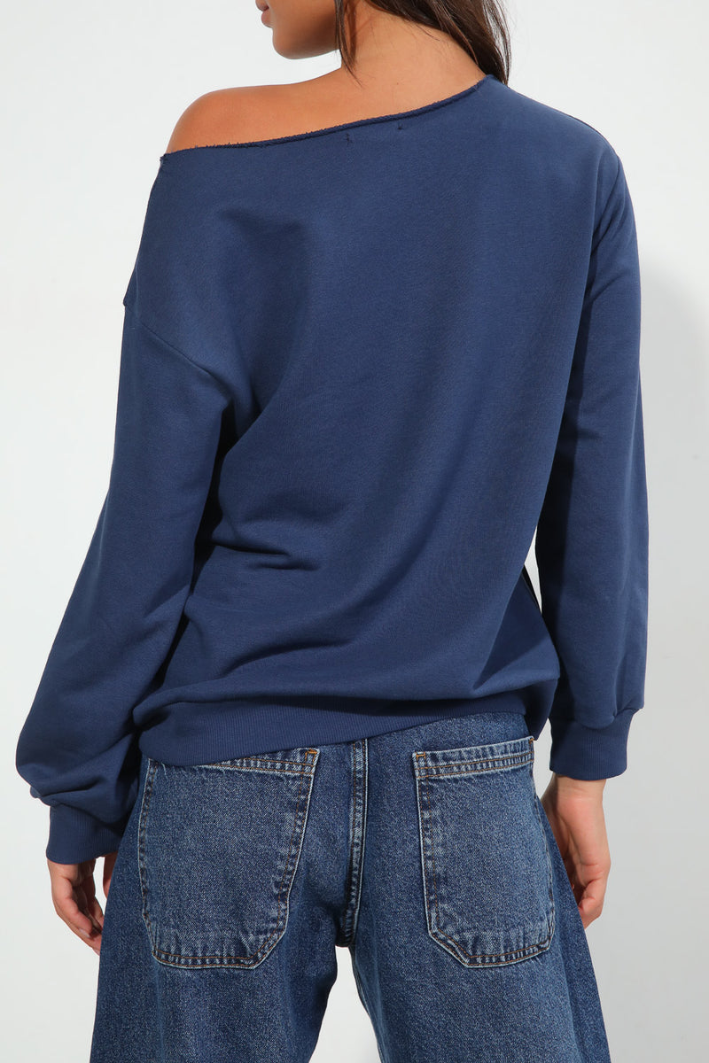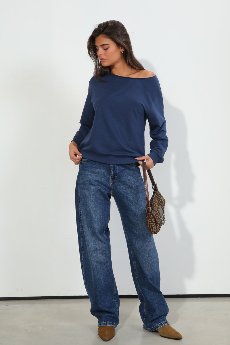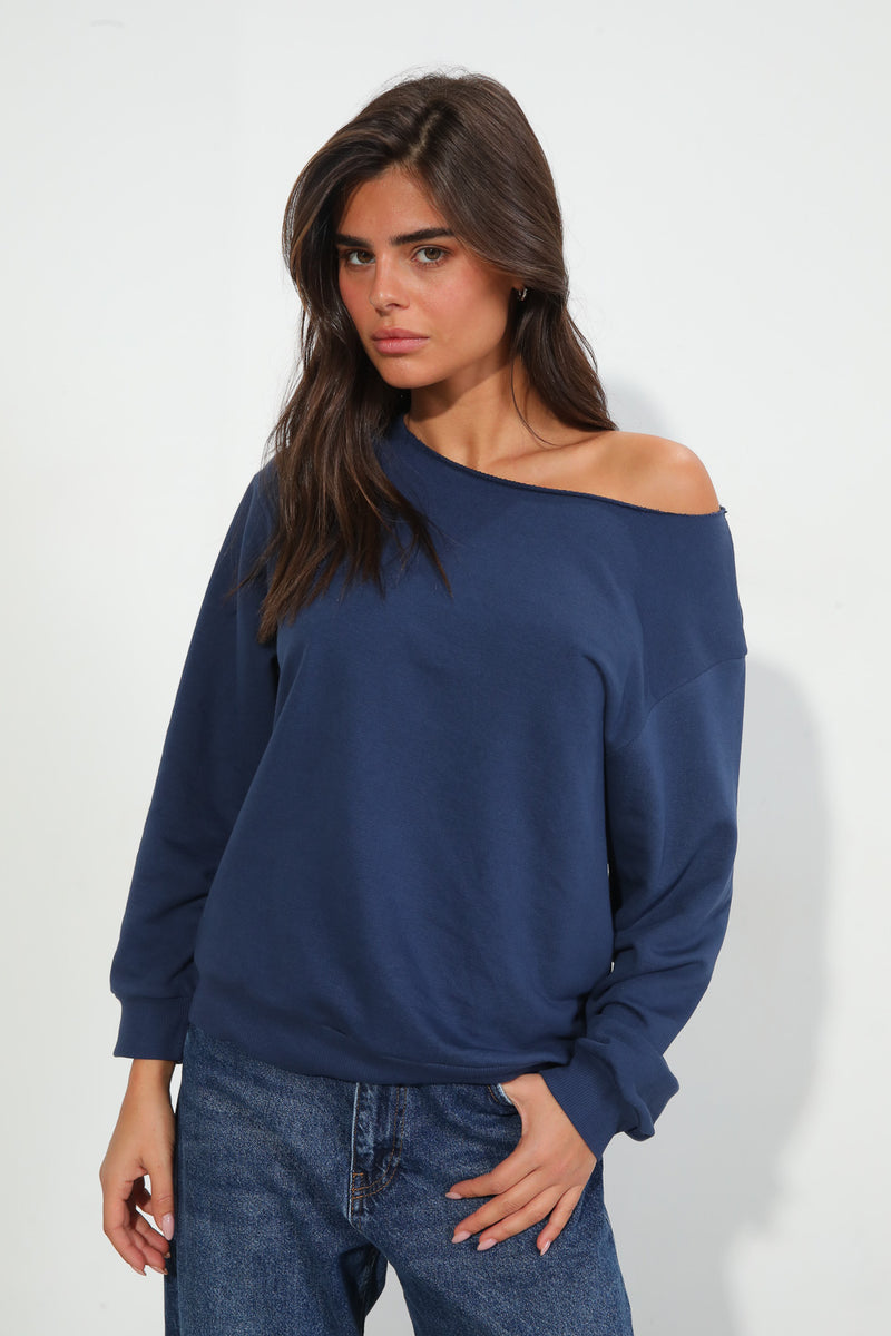 סווטשירט אוברסייז עם צווארון עגול רחב ומנג'ט גומי בסיומת,