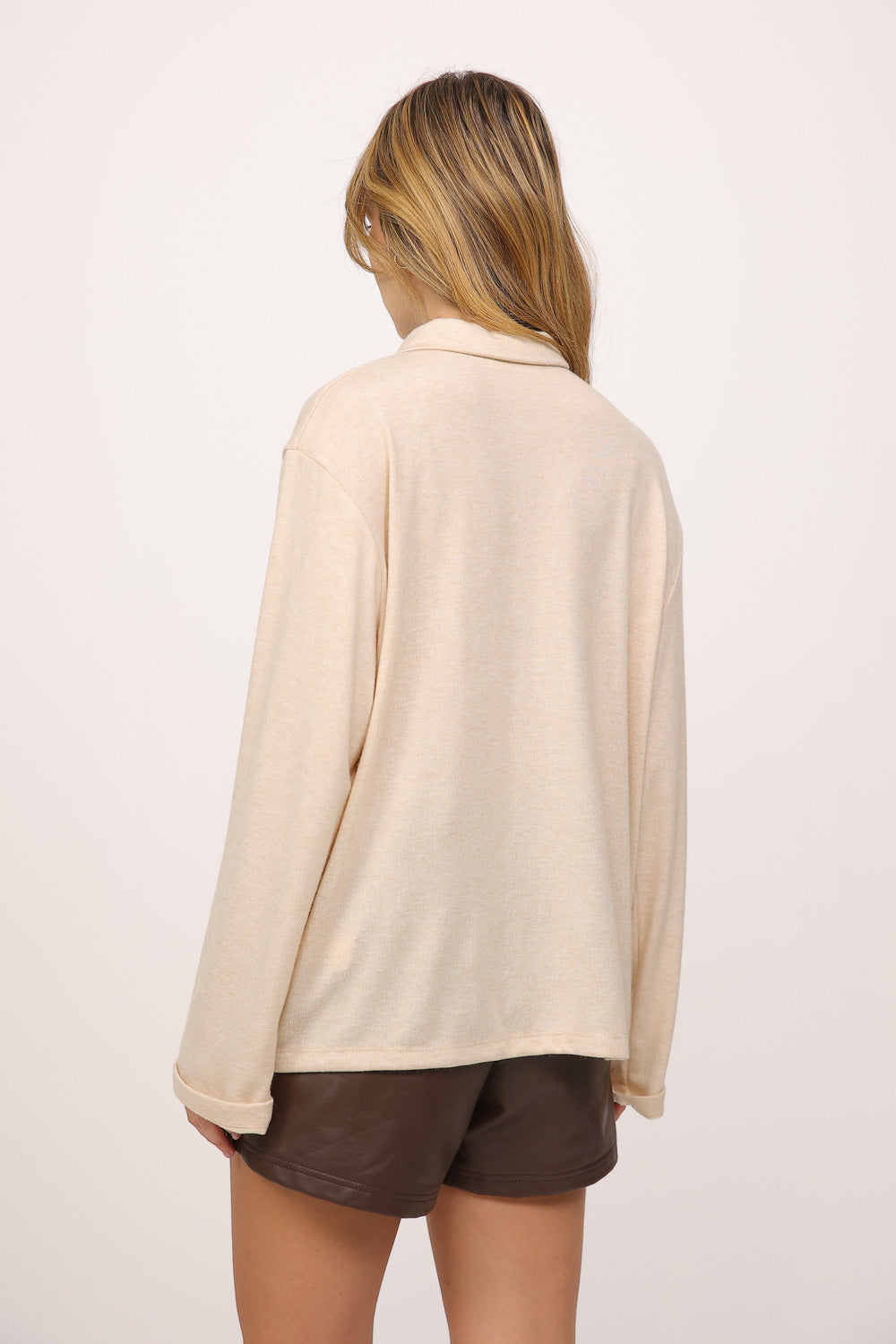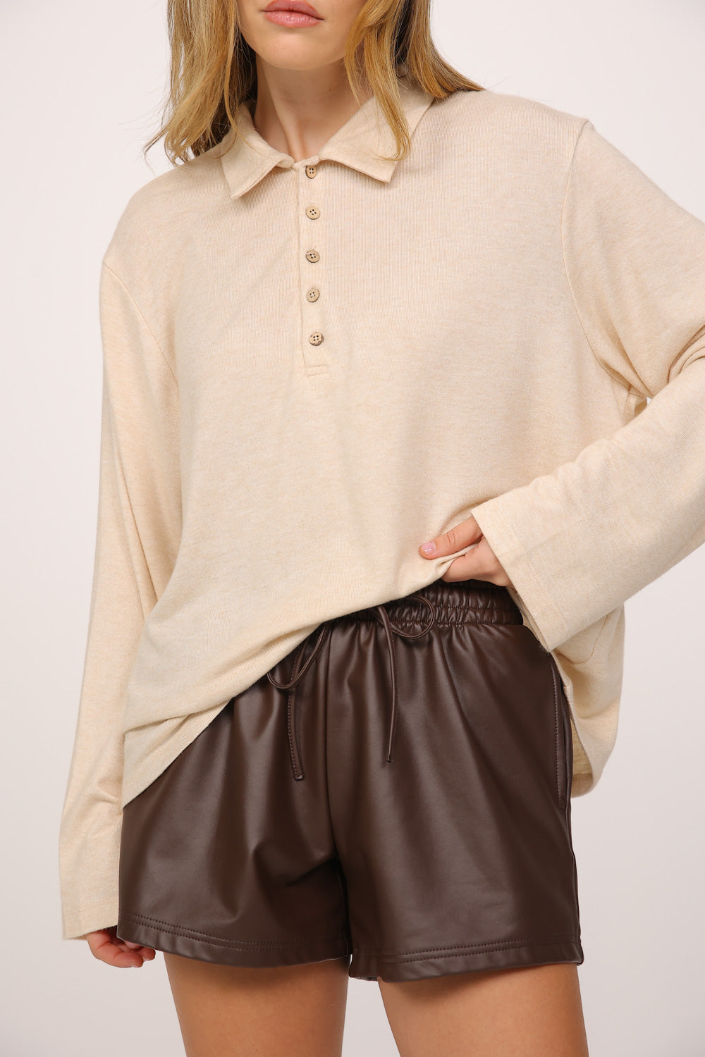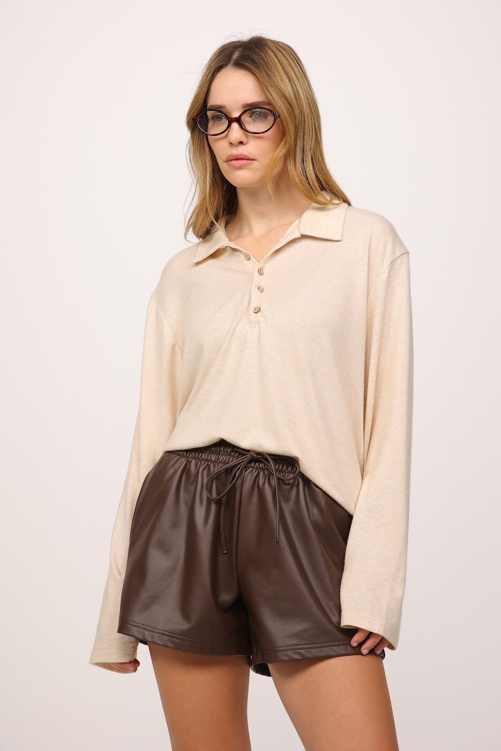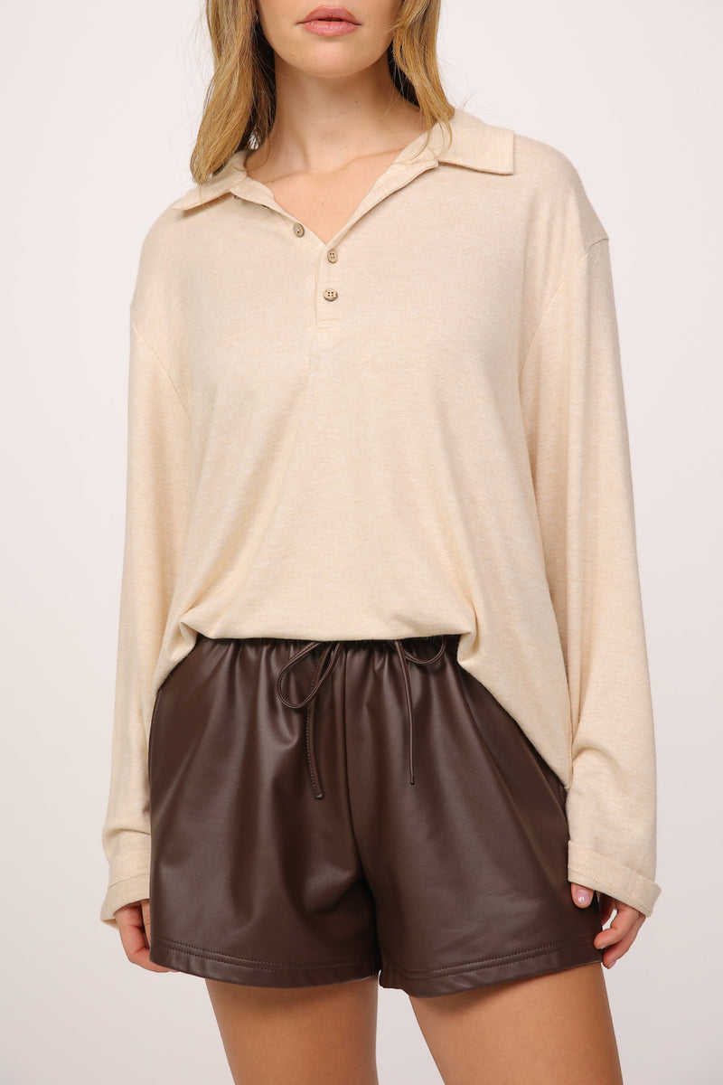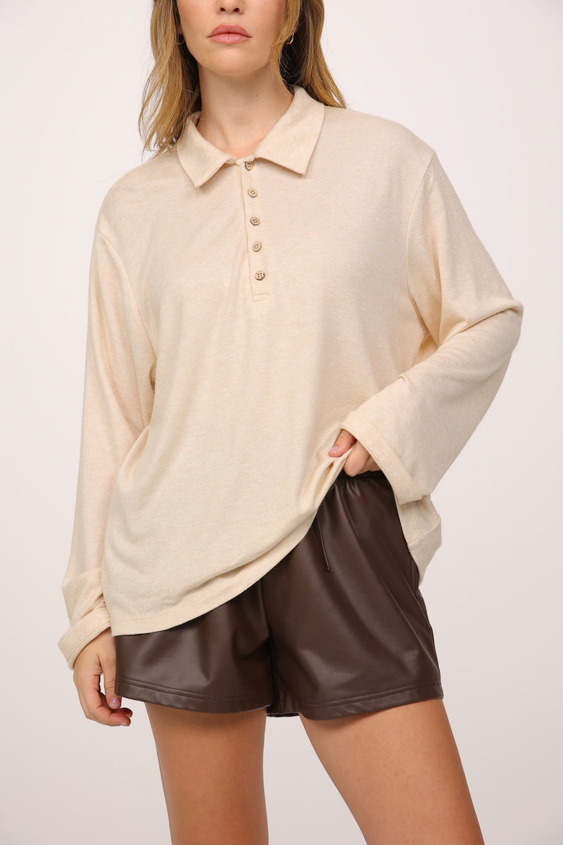 מעוצבת בגוון בז' בהיר עם צווארון פולו וסגירת כפתורים קצרה בחזית שמוסיפה טאץ’ קלאסי. עשויה בד רך ונעים עם נפילה טבעית, נוחה ללבישה יומיומית ומתאימה לשילוב עם שורט, חצאית או מכנסיים ללוק רגוע ומעודכן.