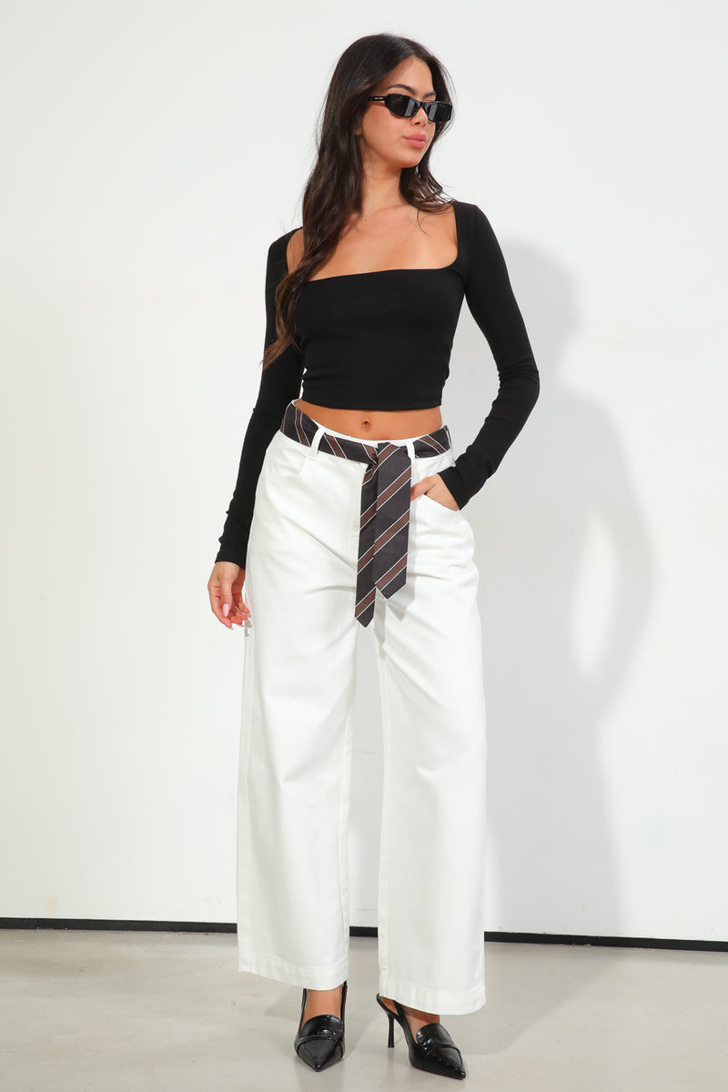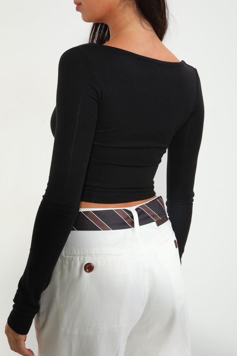 חולצת בייסיק בגזרה צמודה עם מפתח רחב בחזה,