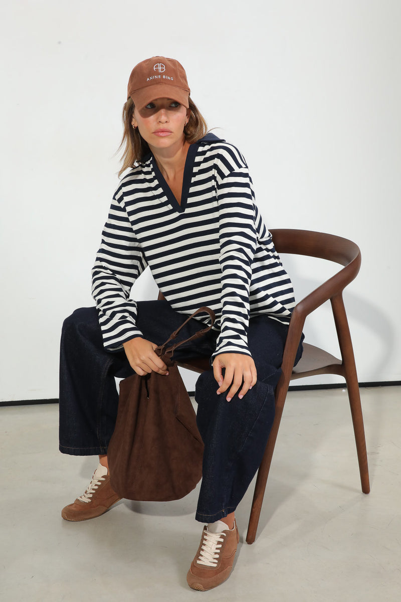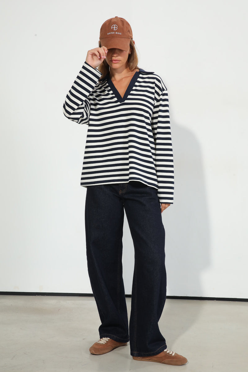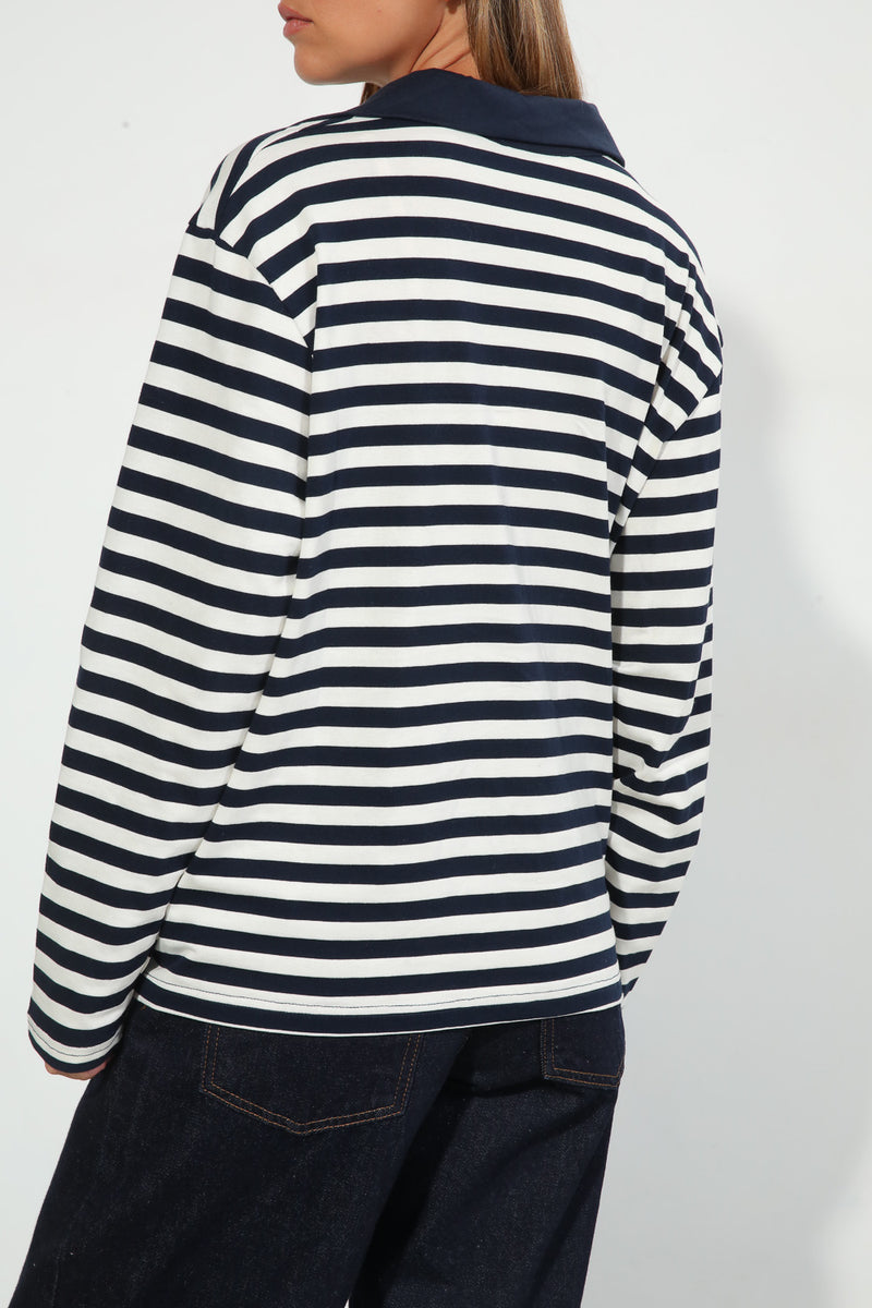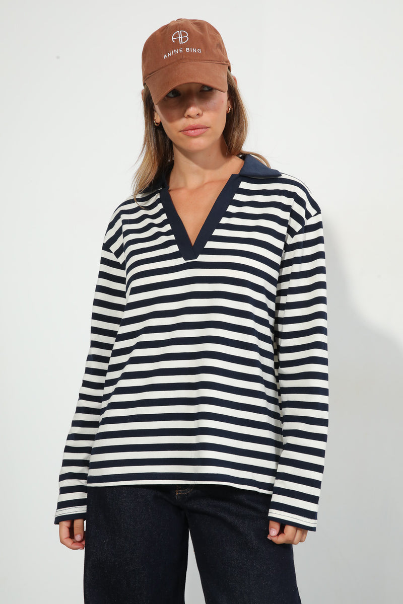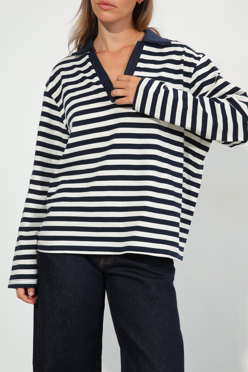 חולצת פסים בגזרת אוברסייז בשילוב צווארון שינה,