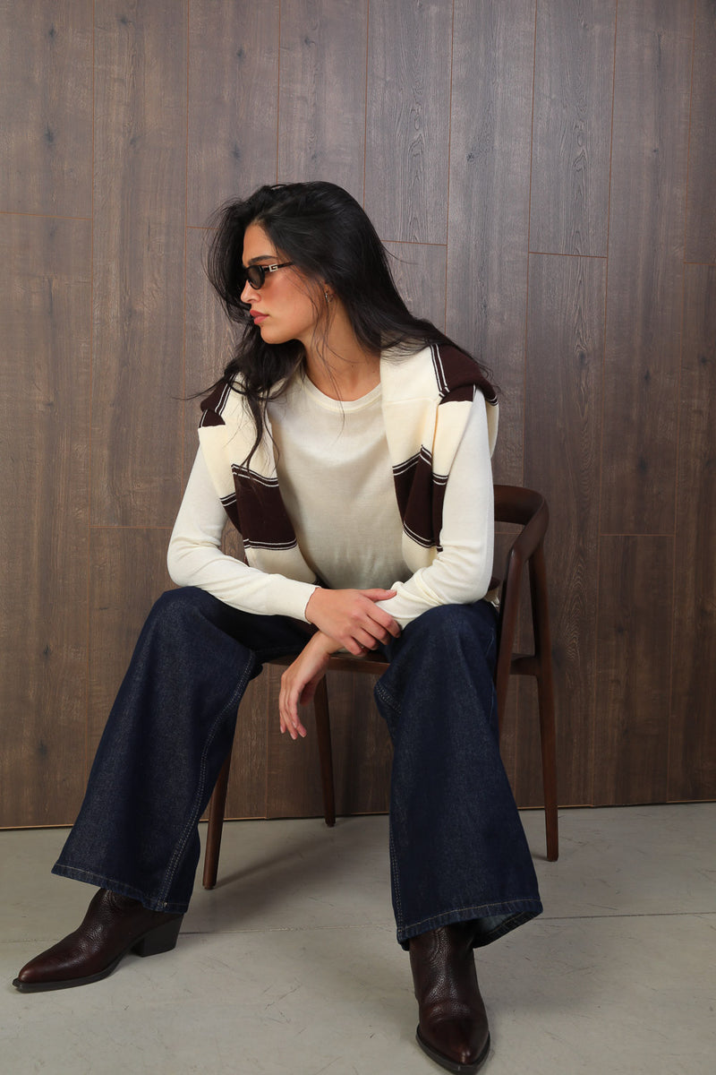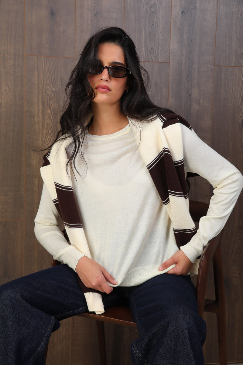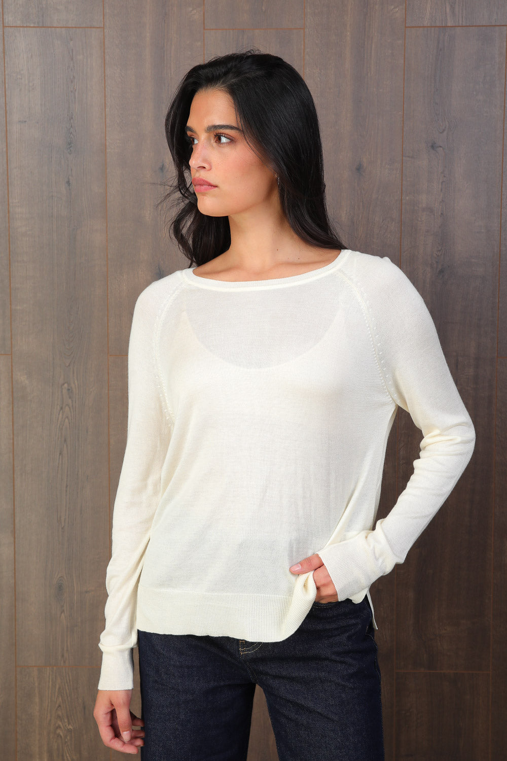 סריג עם צווארון עגול מבד רך ונעים בעל שקיפות קלה,