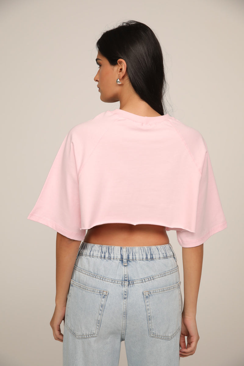 עשויה בד כותנה רך ונעים למגע בגוון ורוד עדין, עם מפתח צוואר עגול ושרוולים קצרים בגזרה מעט רחבה.