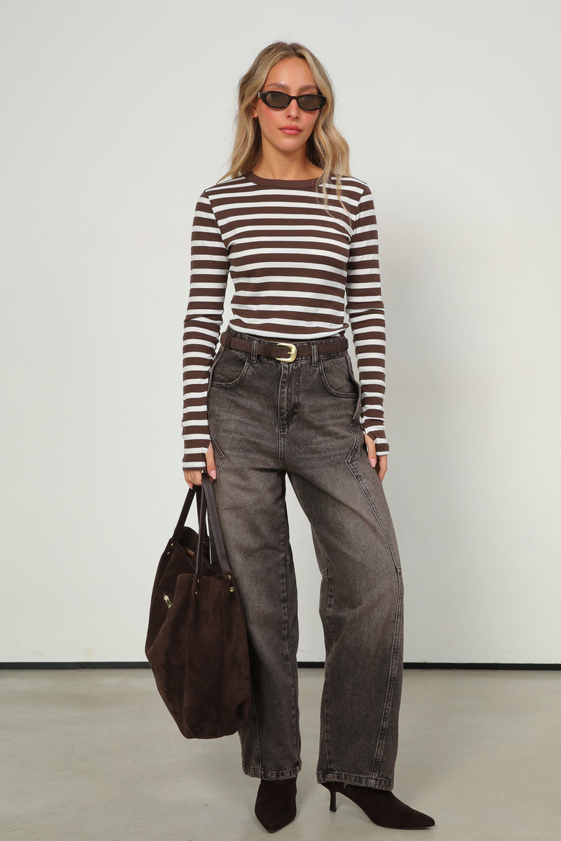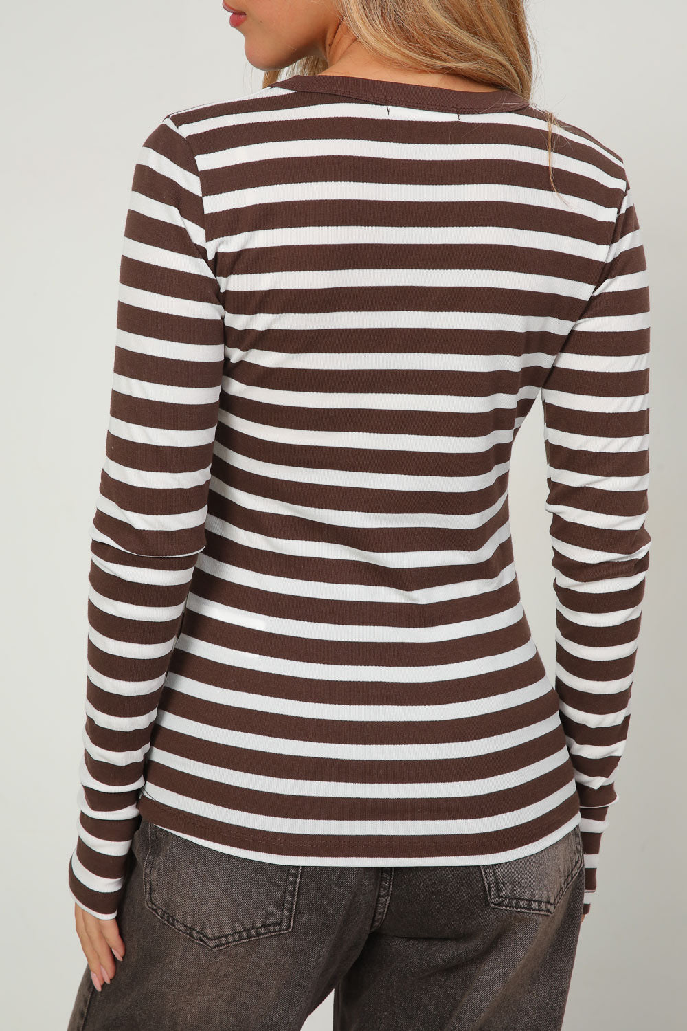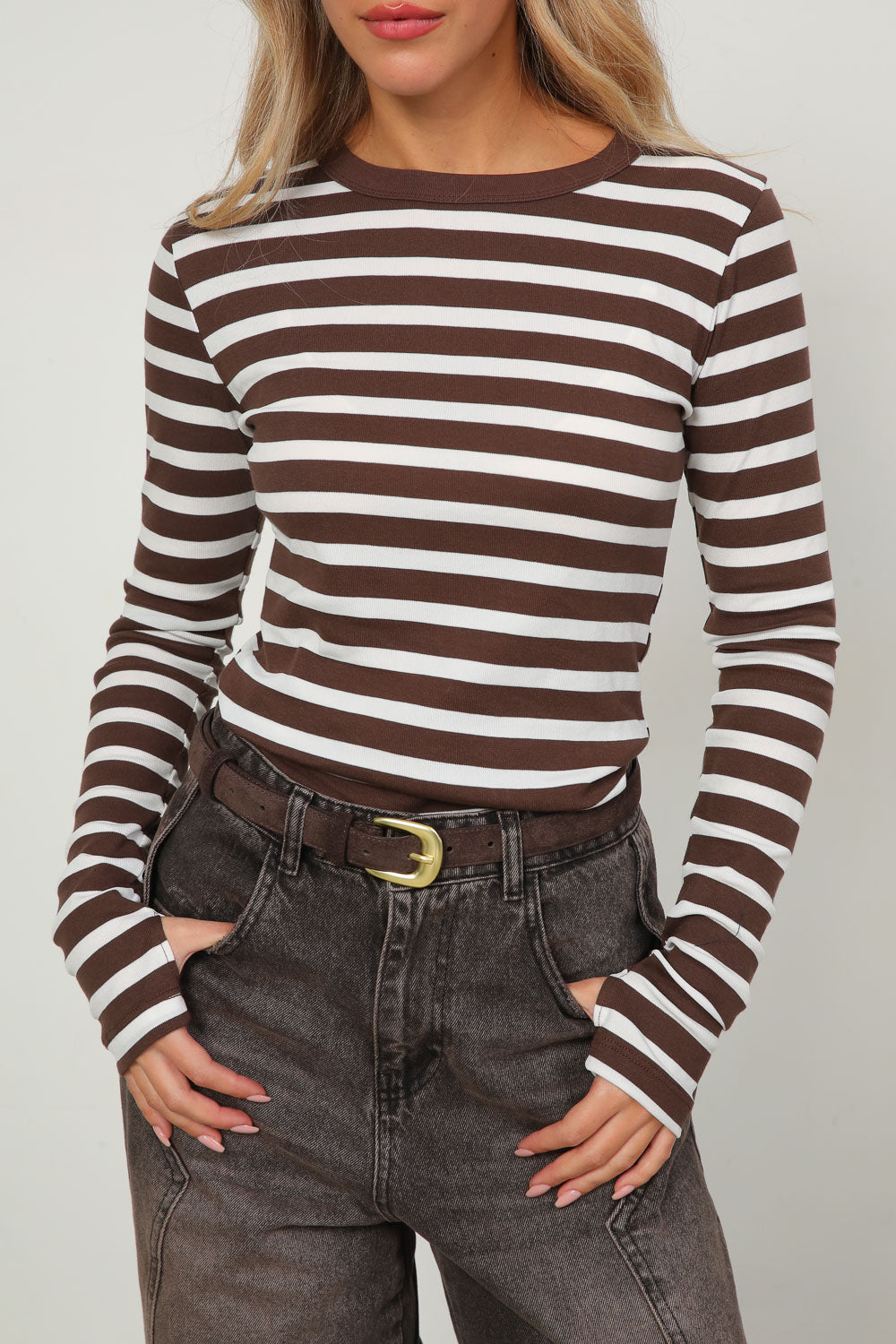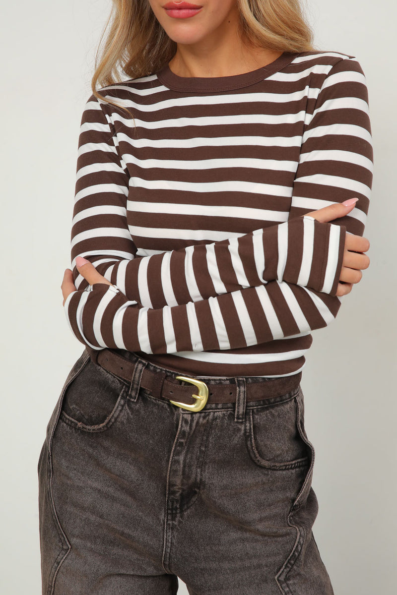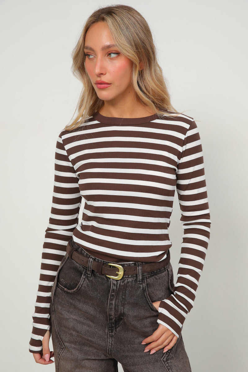 חולצת בייסיק פסים אול אובר, עם צווארון עגול ושרוולי כפפה.
