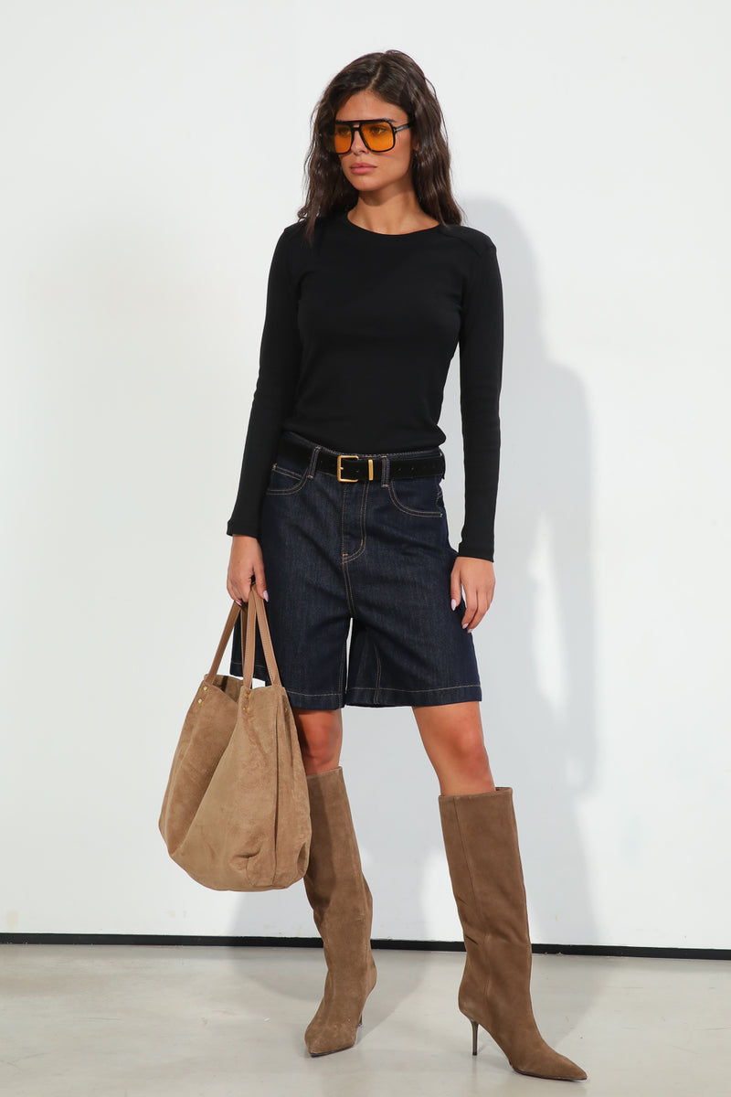 חולצת בייסיק עם צווארון עגול ותפר הפוך,