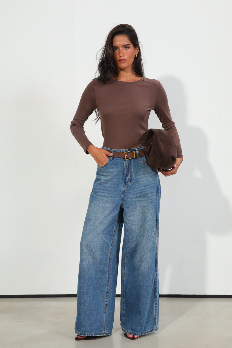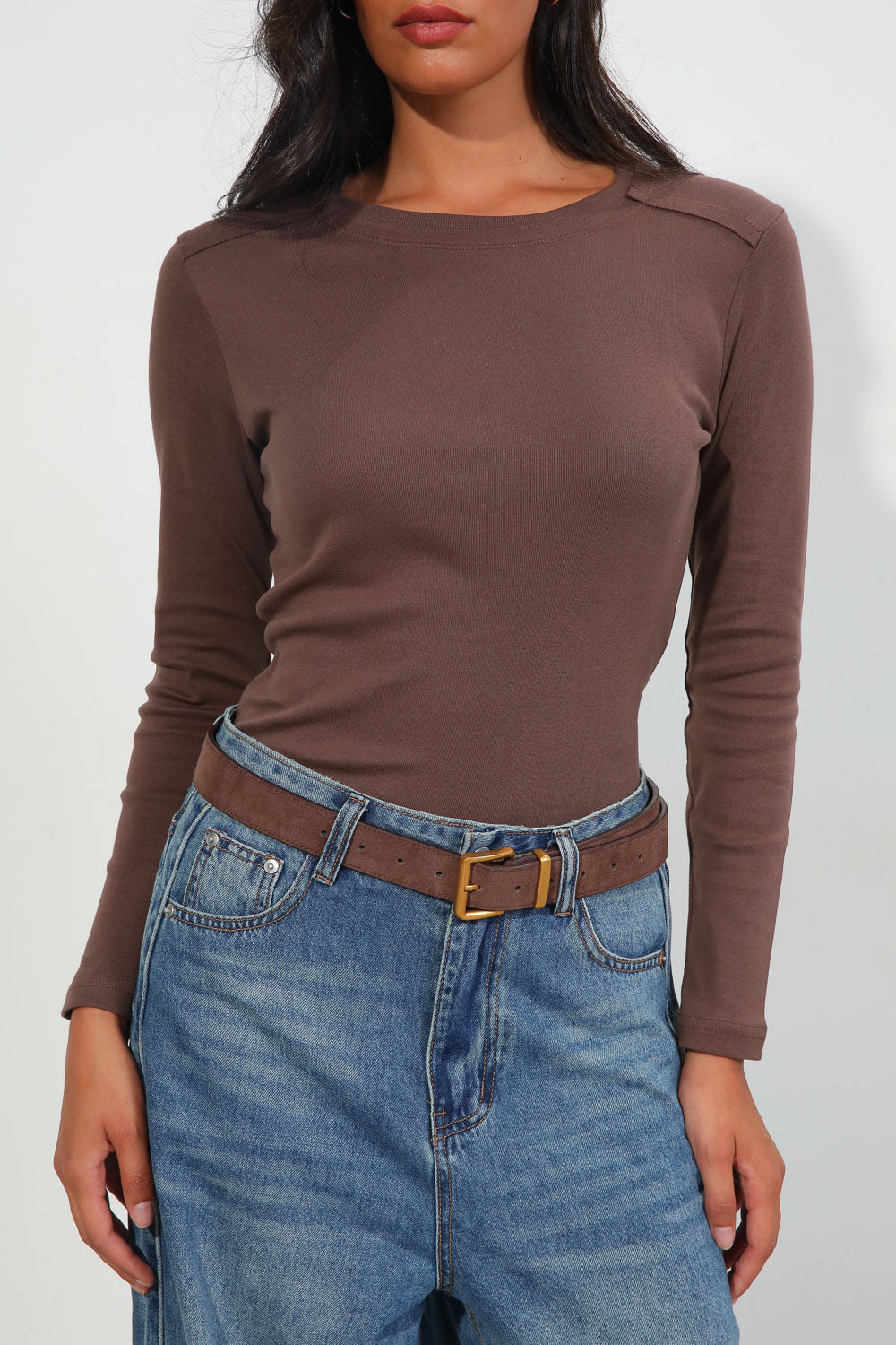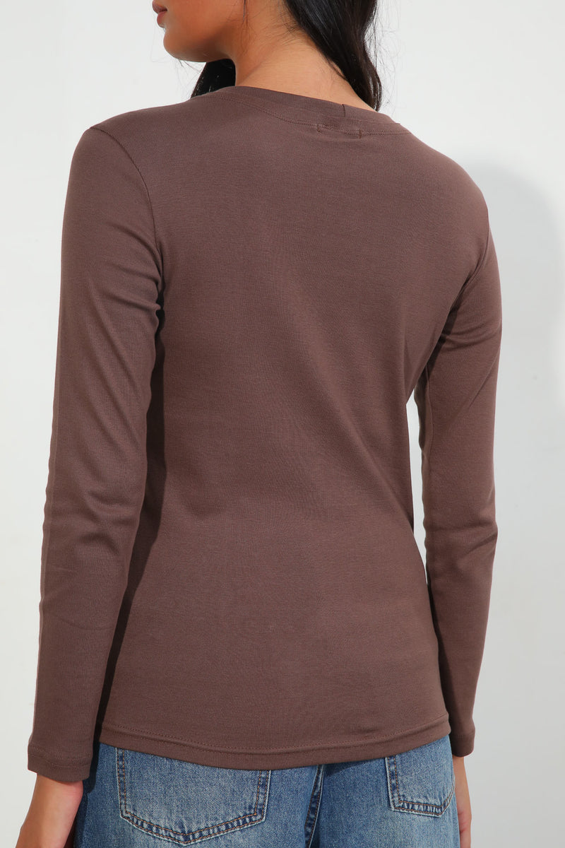 חולצת בייסיק עם צווארון עגול ותפר הפוך,