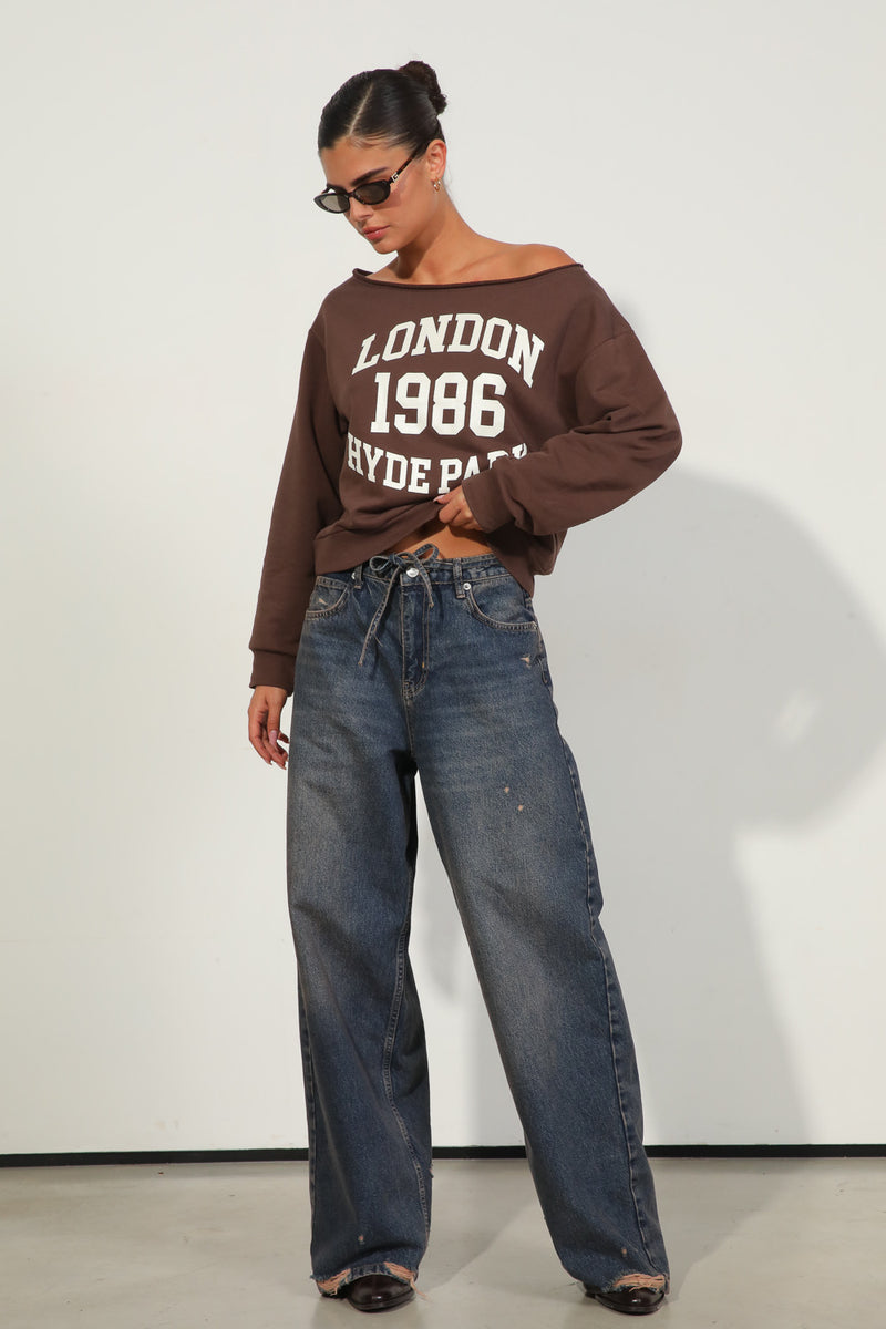 חולצת כיתוב בסגנון קולג' רטרו, בגזרה נינוחה ונעימה על הגוף. הבד רך, מחבק ונוח ליום יום, עם צווארון עגול רחב ושרוול ארוך שמעניקים מראה קז'ואל מדויק. מושלמת לג'ינס רחב, מכנסי טרנינג או שכבות חורף. לוק צעיר, נונשלנטי ובלי להתאמץ.