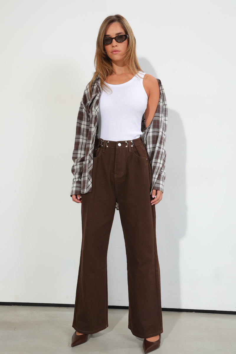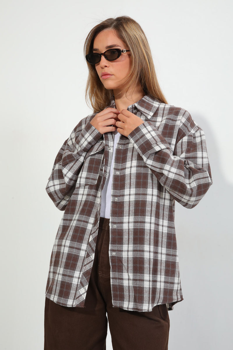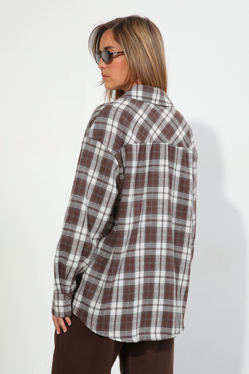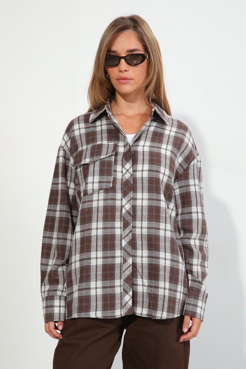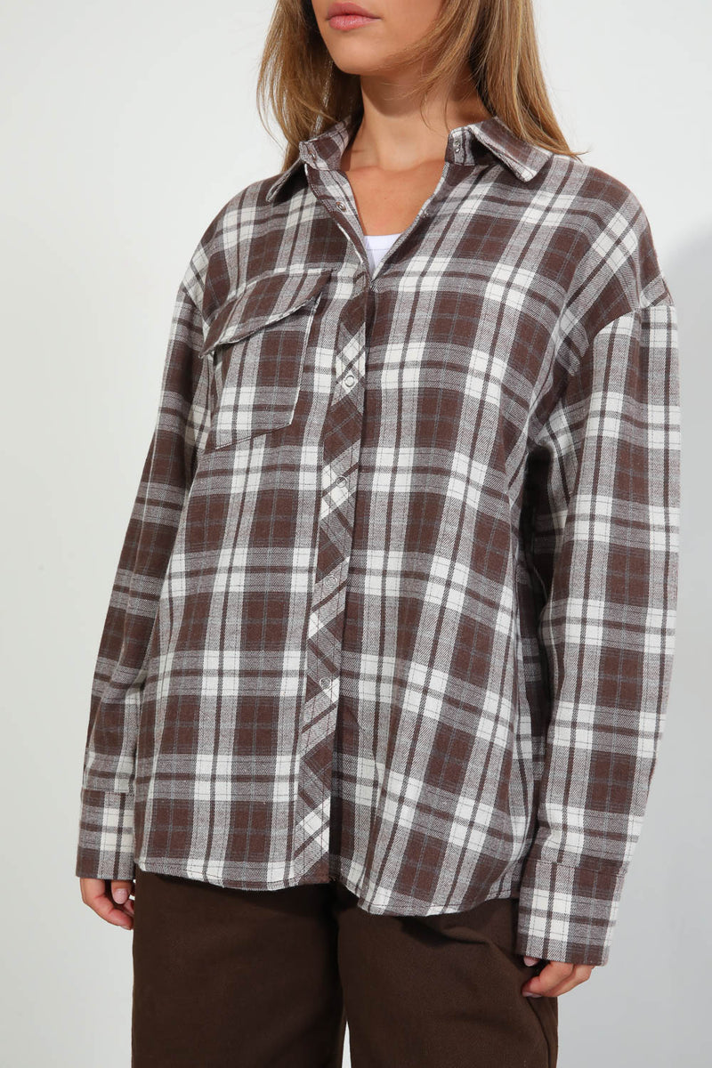 חולצת משבצות מכופתרת בגזרת אוברסייז עם כיס בחזית,