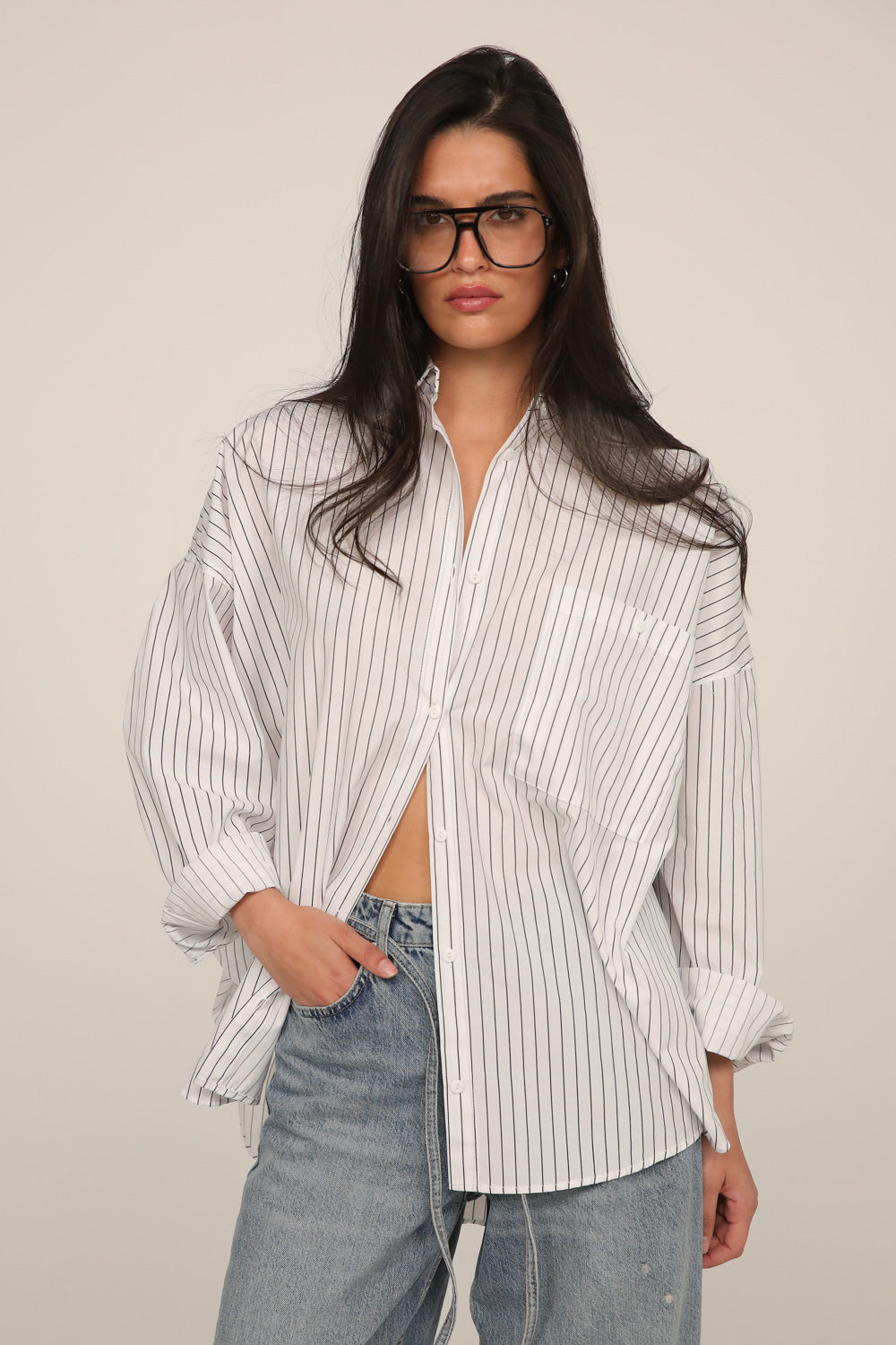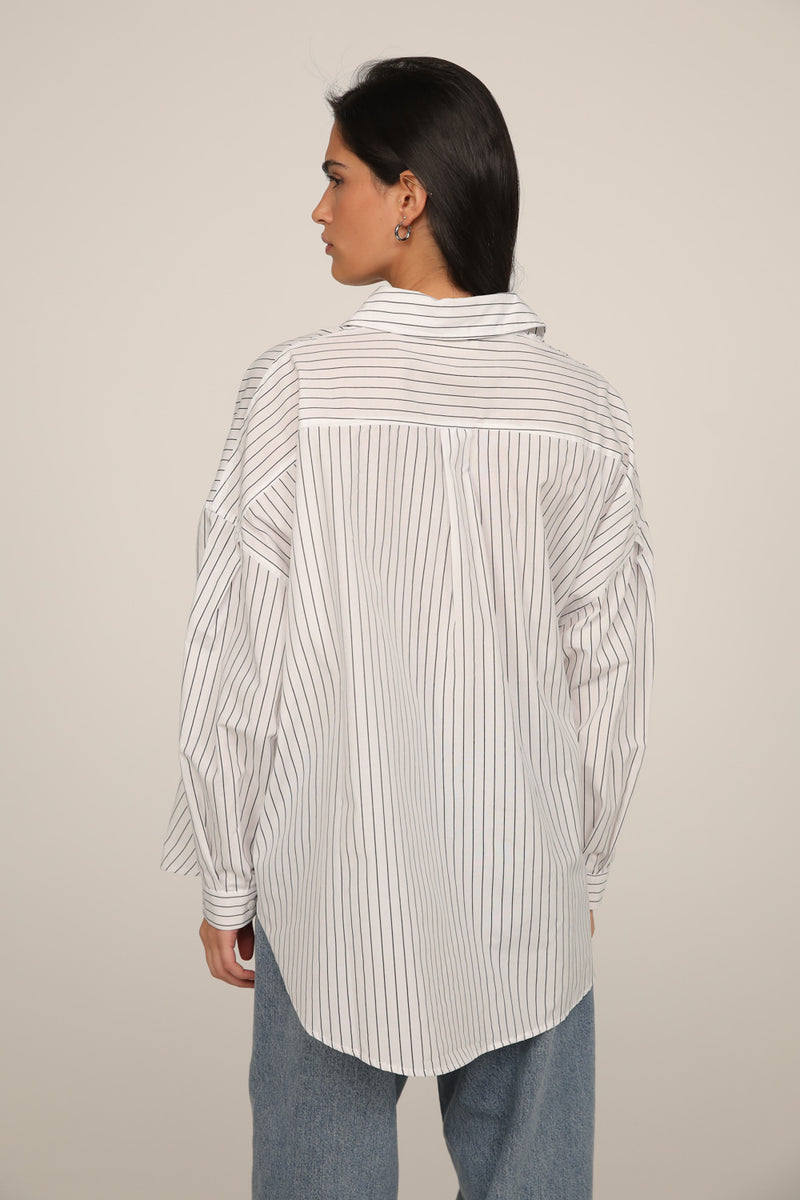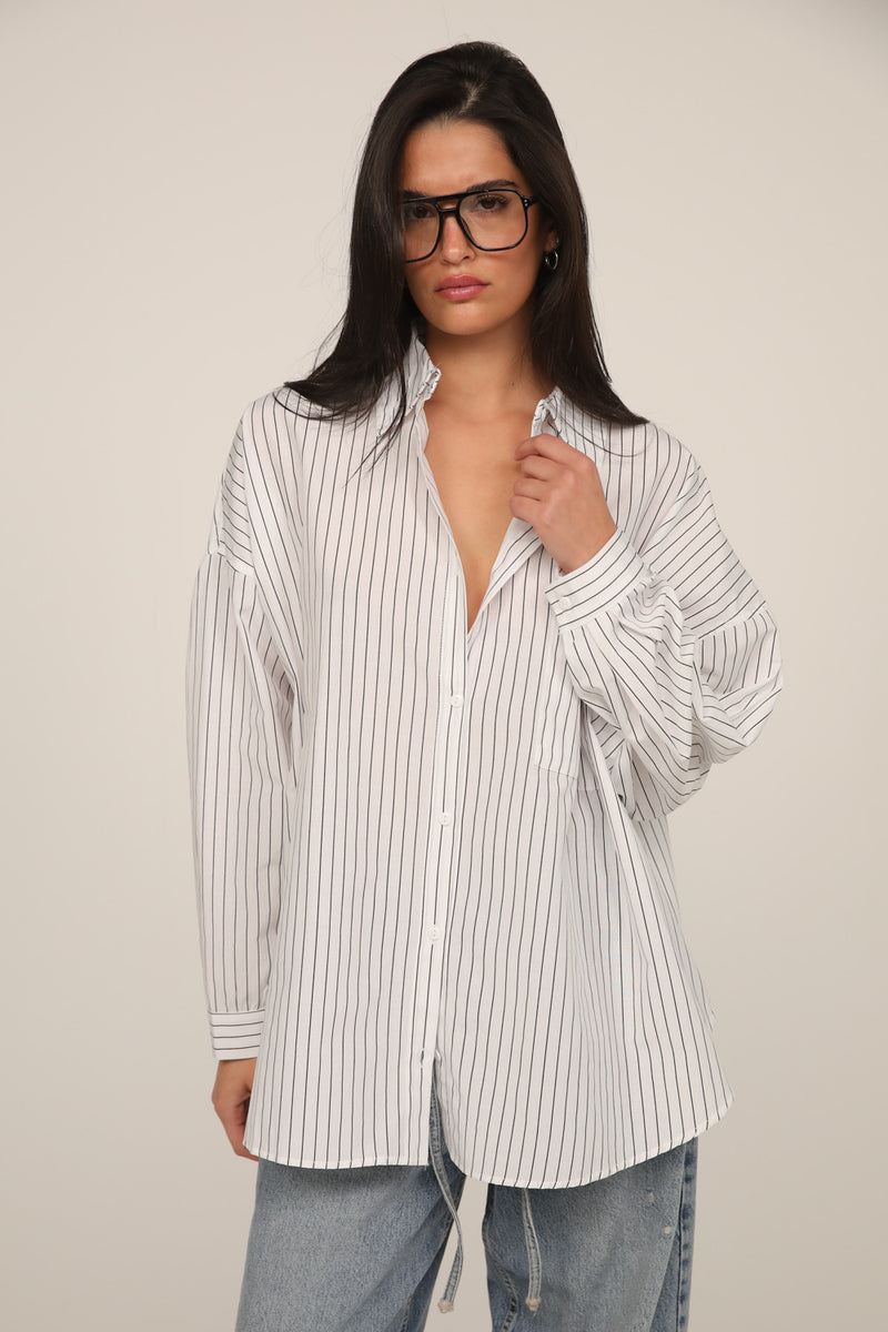 חולצה מכופתרת בגזרה משוחררת עם שרוולים ארוכים ומפתח צווארון קלאסי.