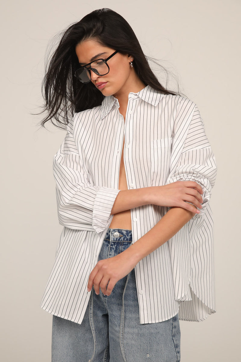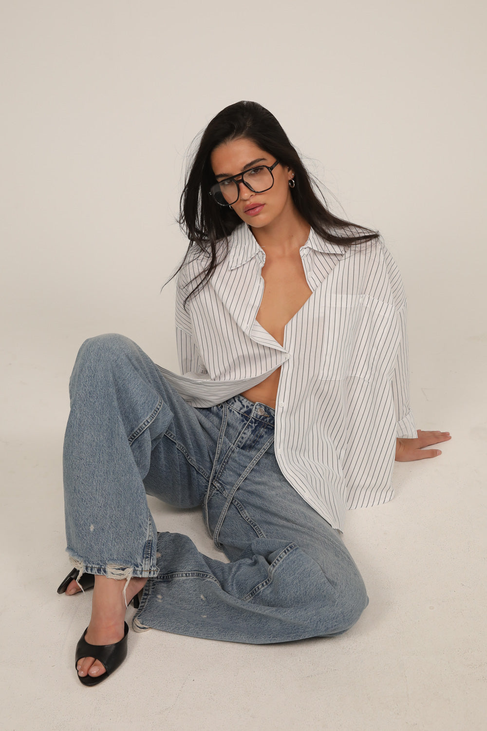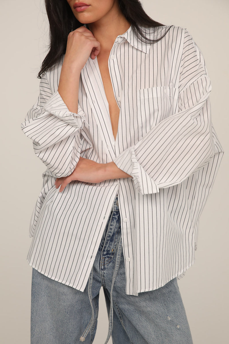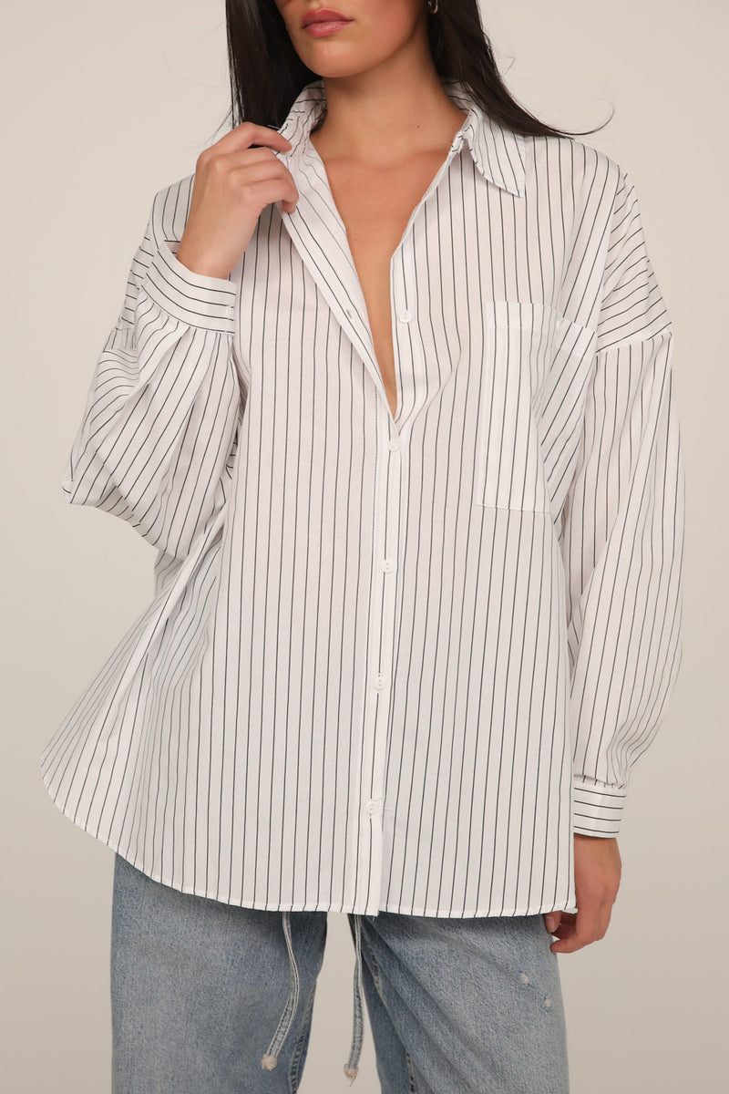 חולצה מכופתרת בגזרה משוחררת עם שרוולים ארוכים ומפתח צווארון קלאסי.