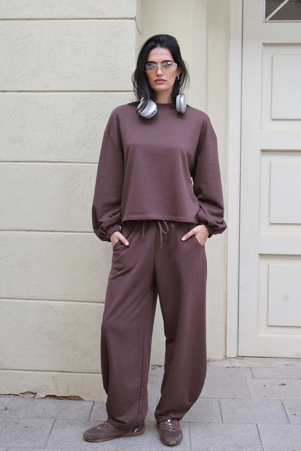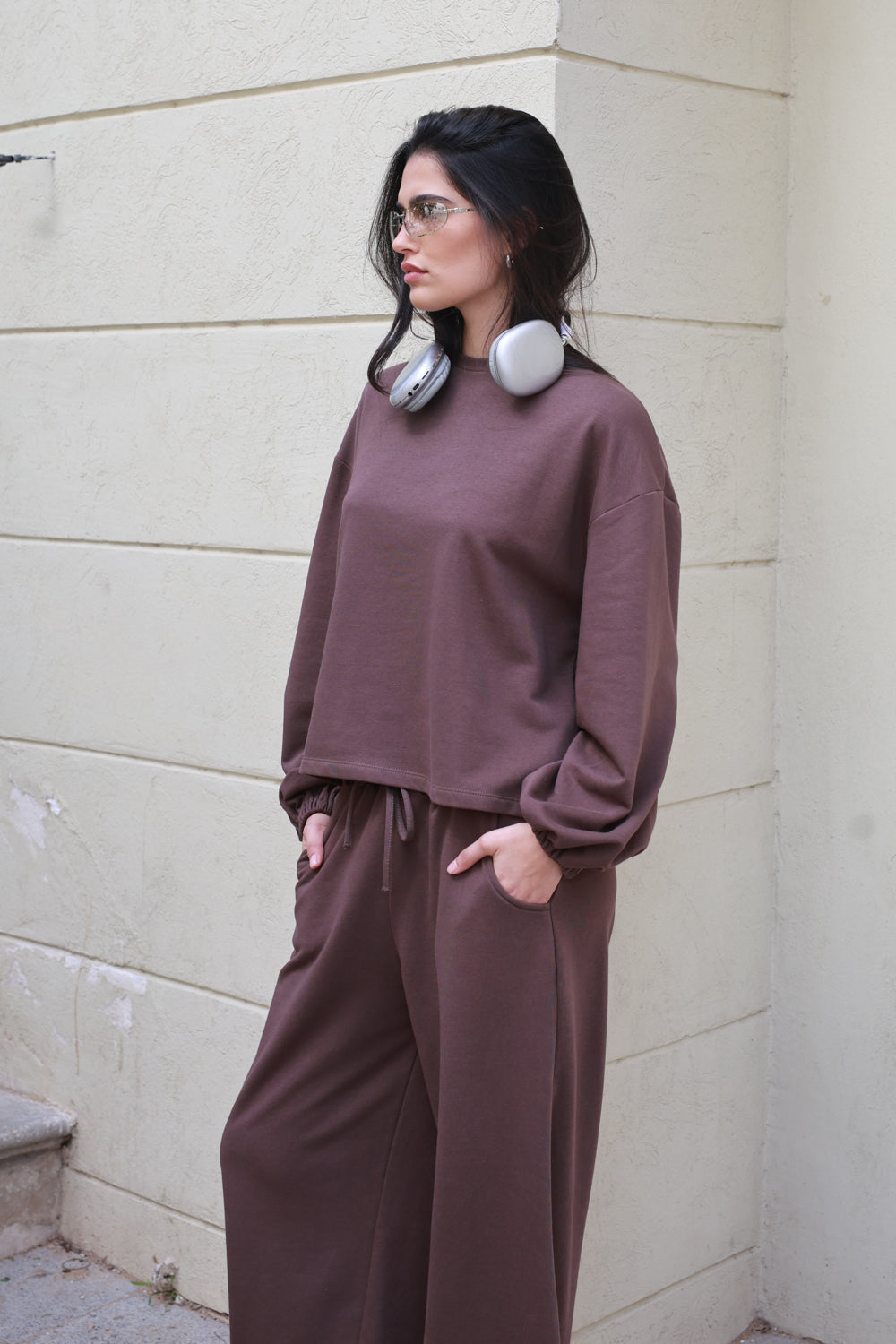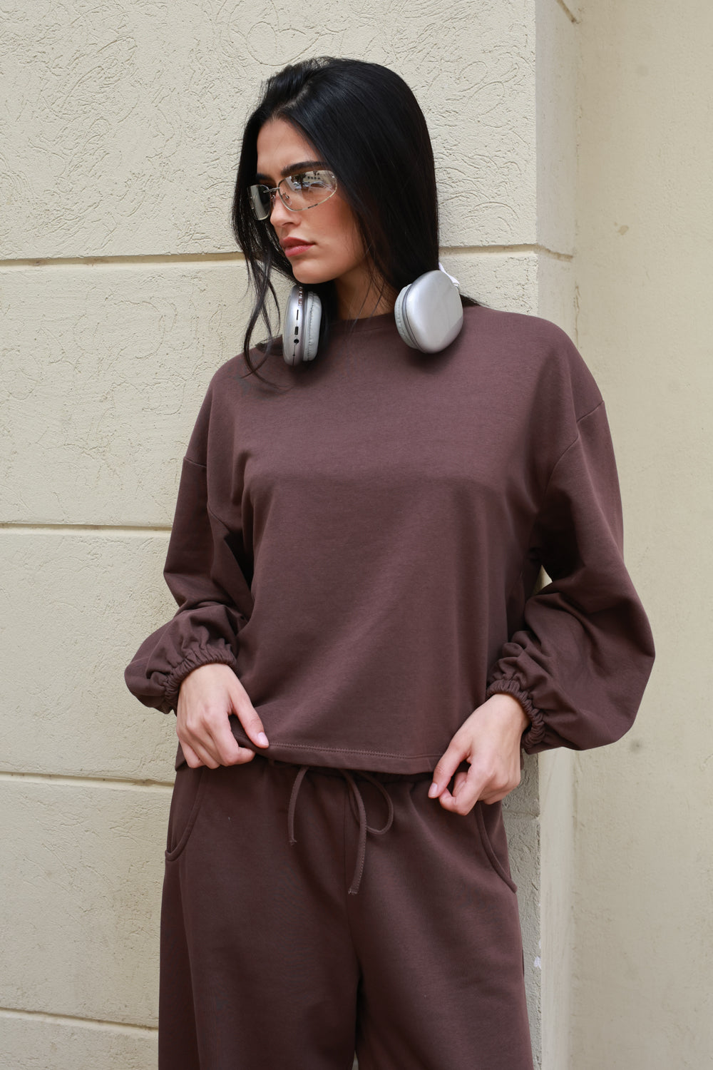 עשויה בד רך ונעים בגוון חום, עם תחושה חמימה ונוחה על הגוף.