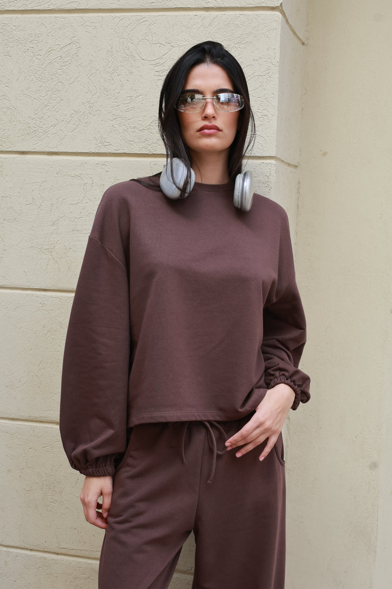 חולצת סווטשירט בגזרה רפויה עם מראה מינימליסטי ונינוח,