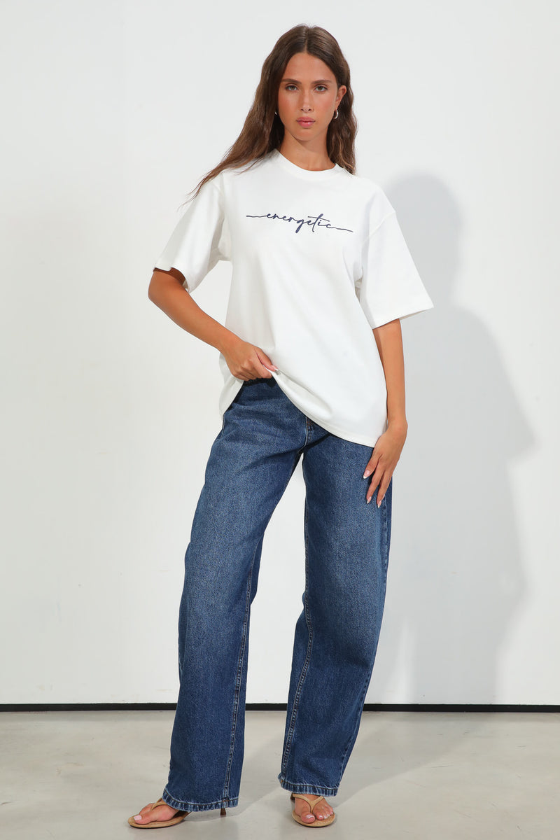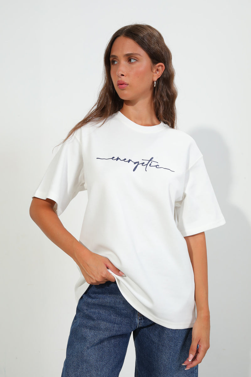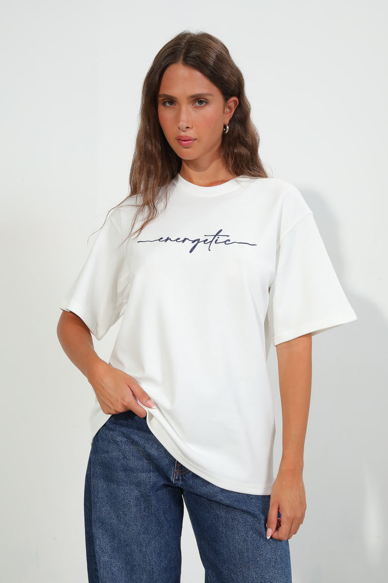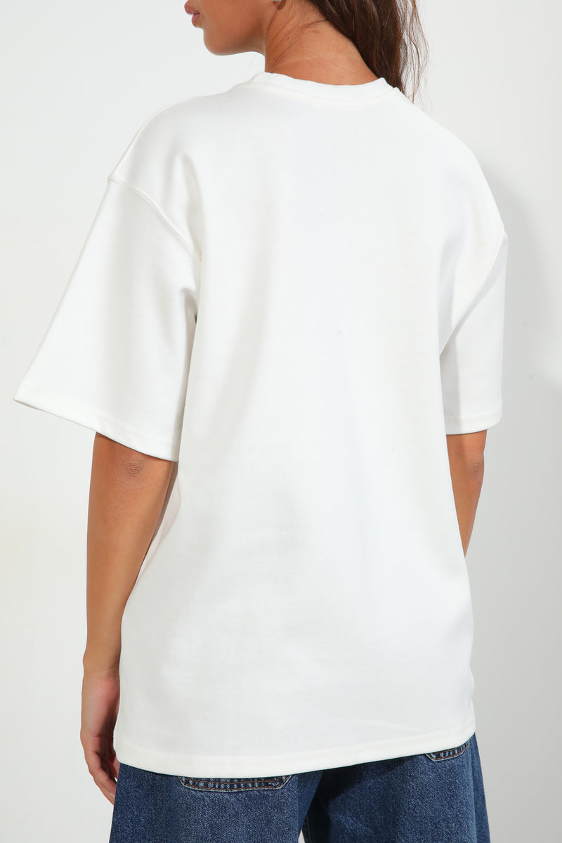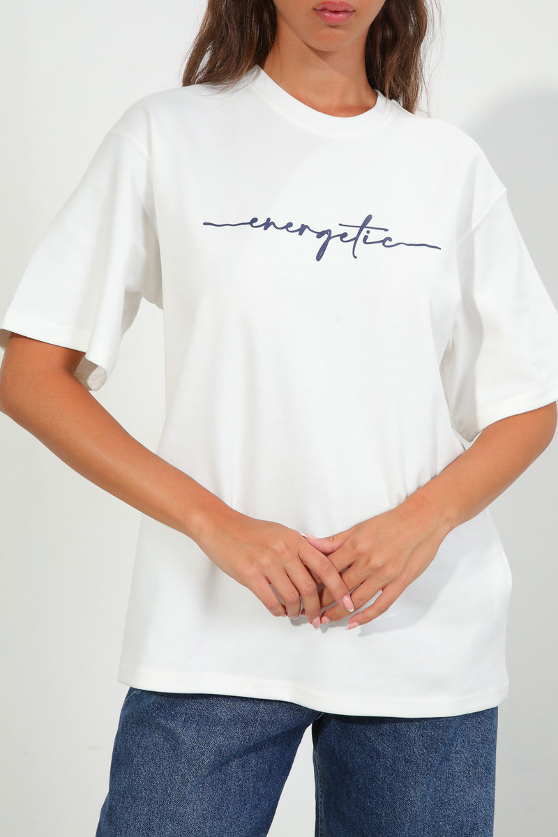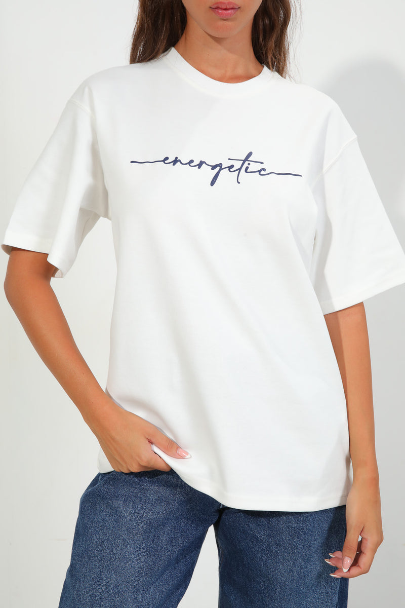 טישירט אוברסייז עם צווארון עגול ודפוס בחזית,