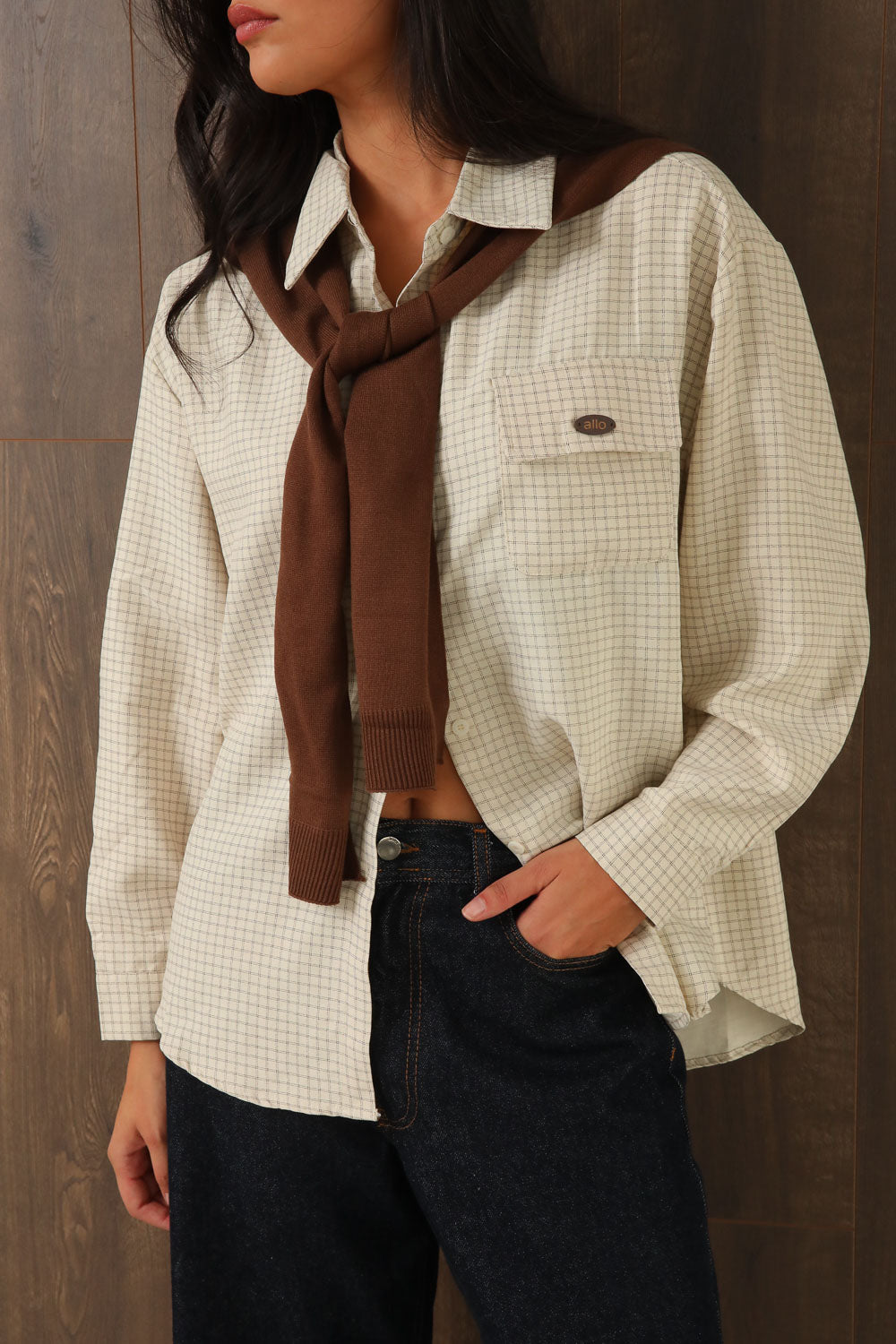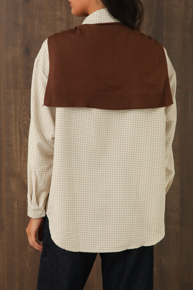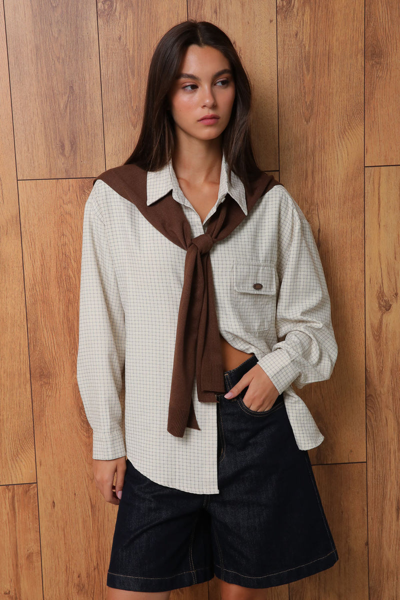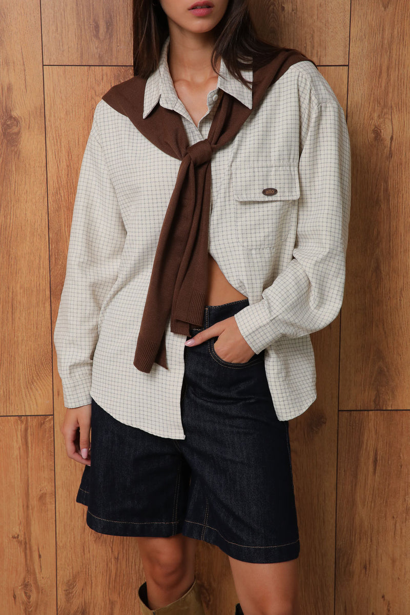 חולצת מכופתרת בגזרת אוברסייז עם שרוולון סריג קשור,