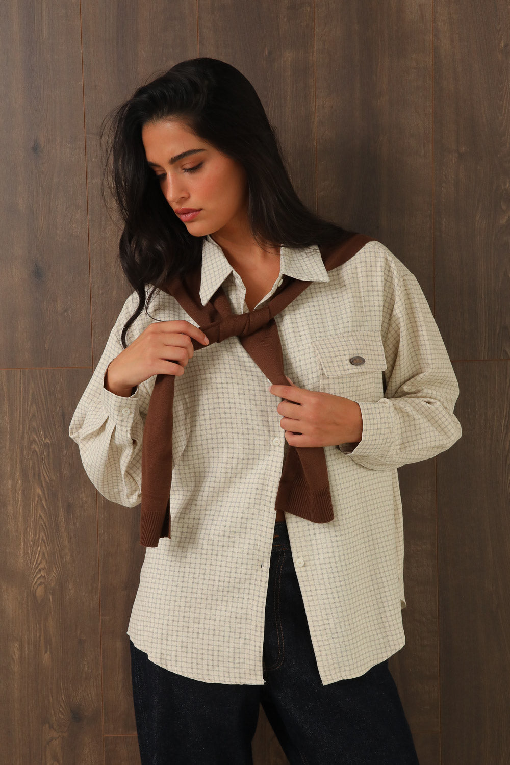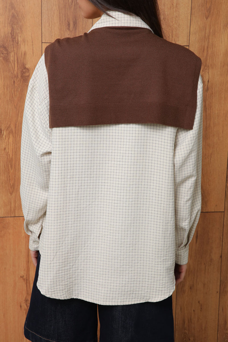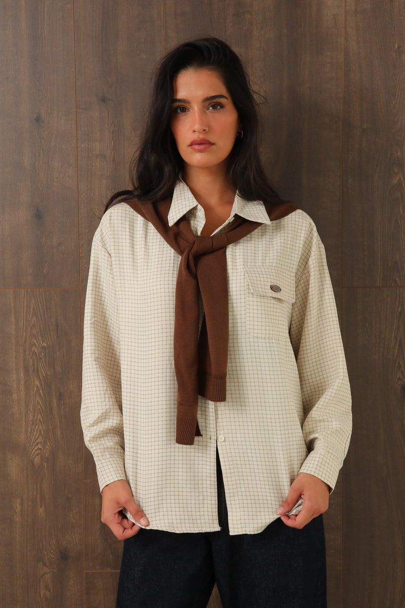 חולצת מכופתרת בגזרת אוברסייז עם שרוולון סריג קשור,