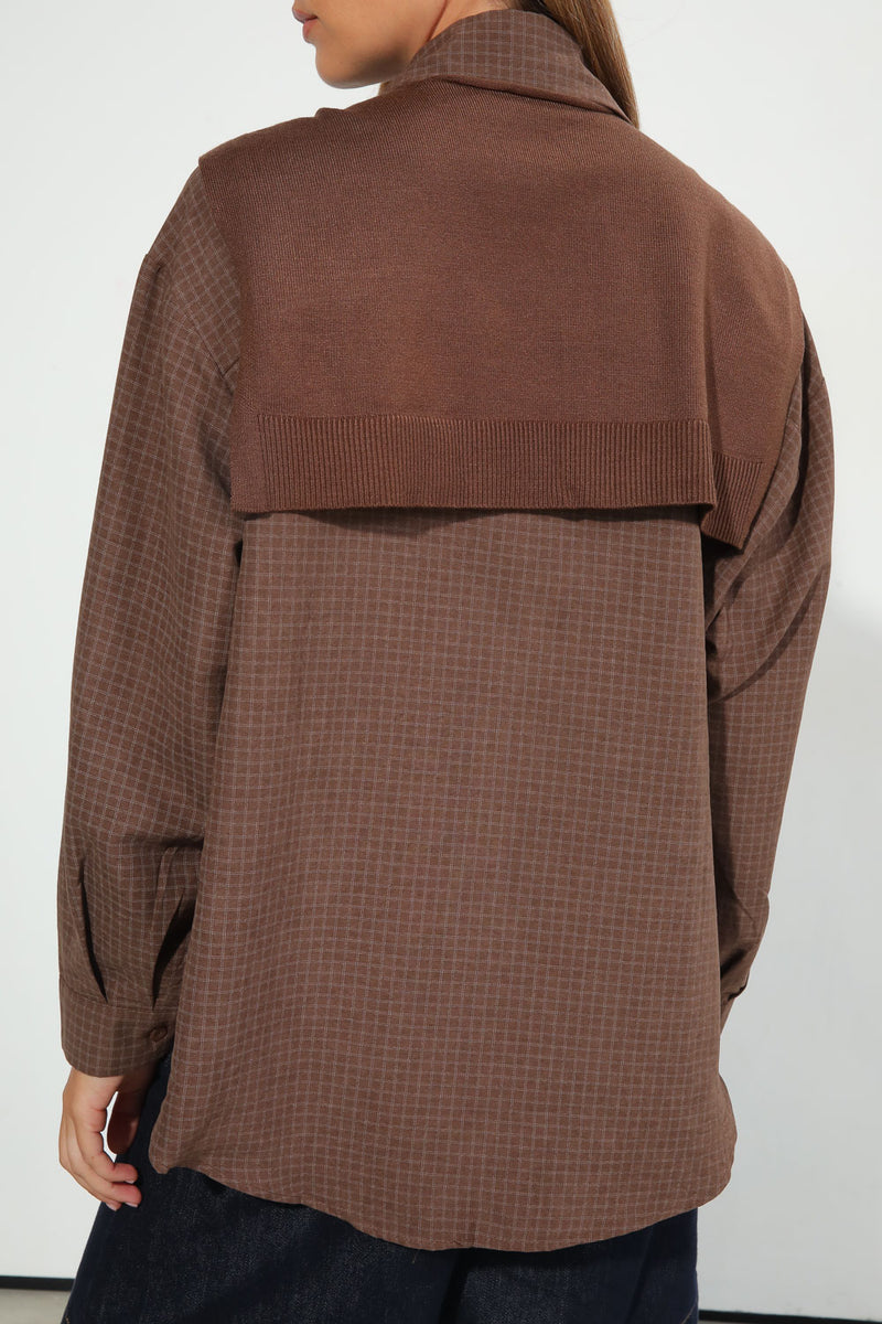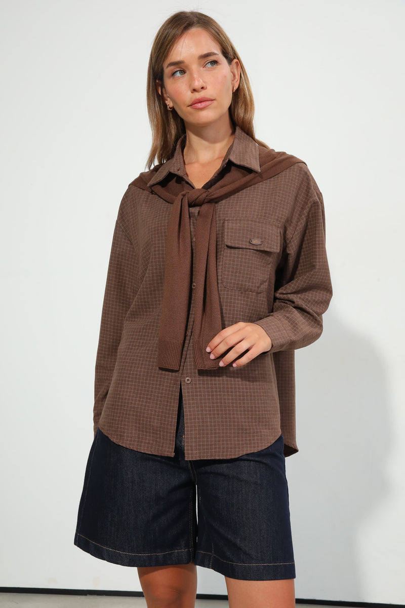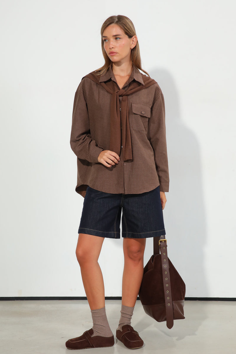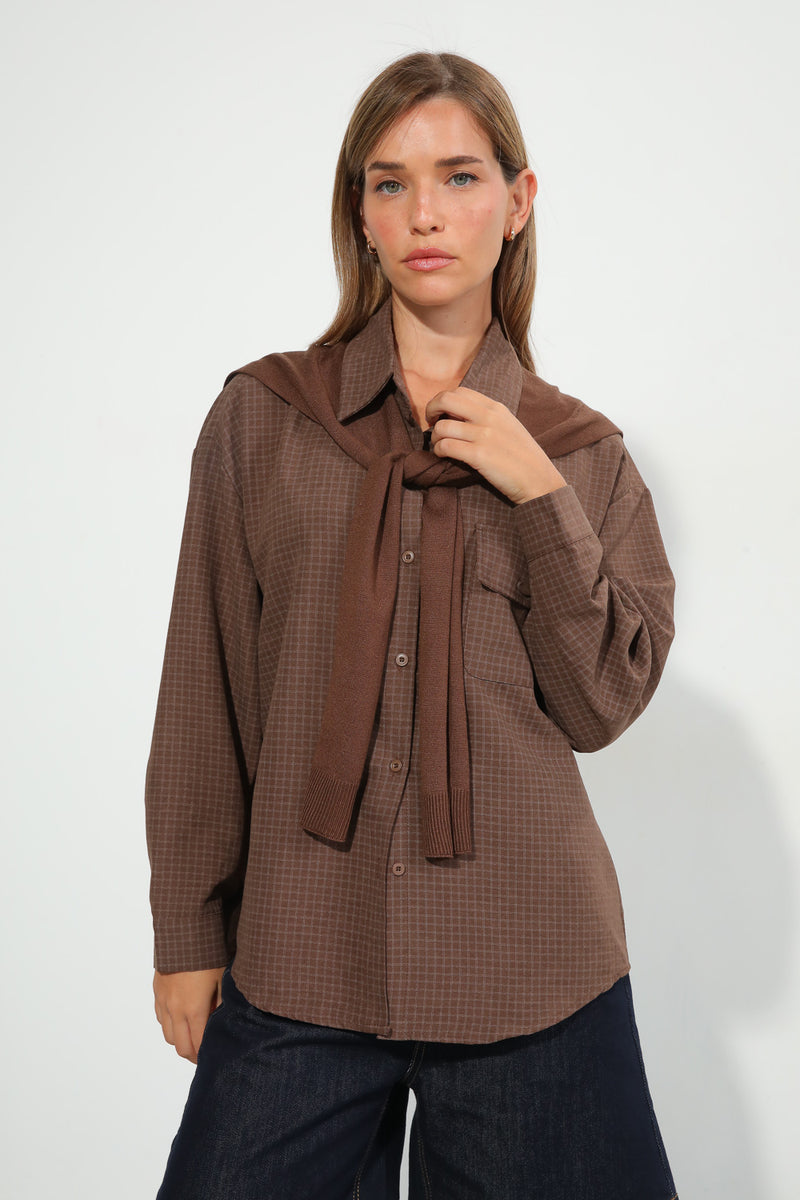 חולצת מכופתרת בגזרת אוברסייז עם שרוולון סריג קשור,