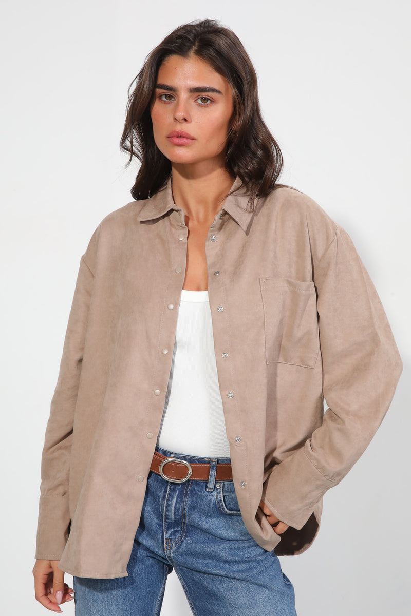 חולצה מכופתרת בטקסטורת ז'מש עם סגירת כפתורים וכיס בחזית,