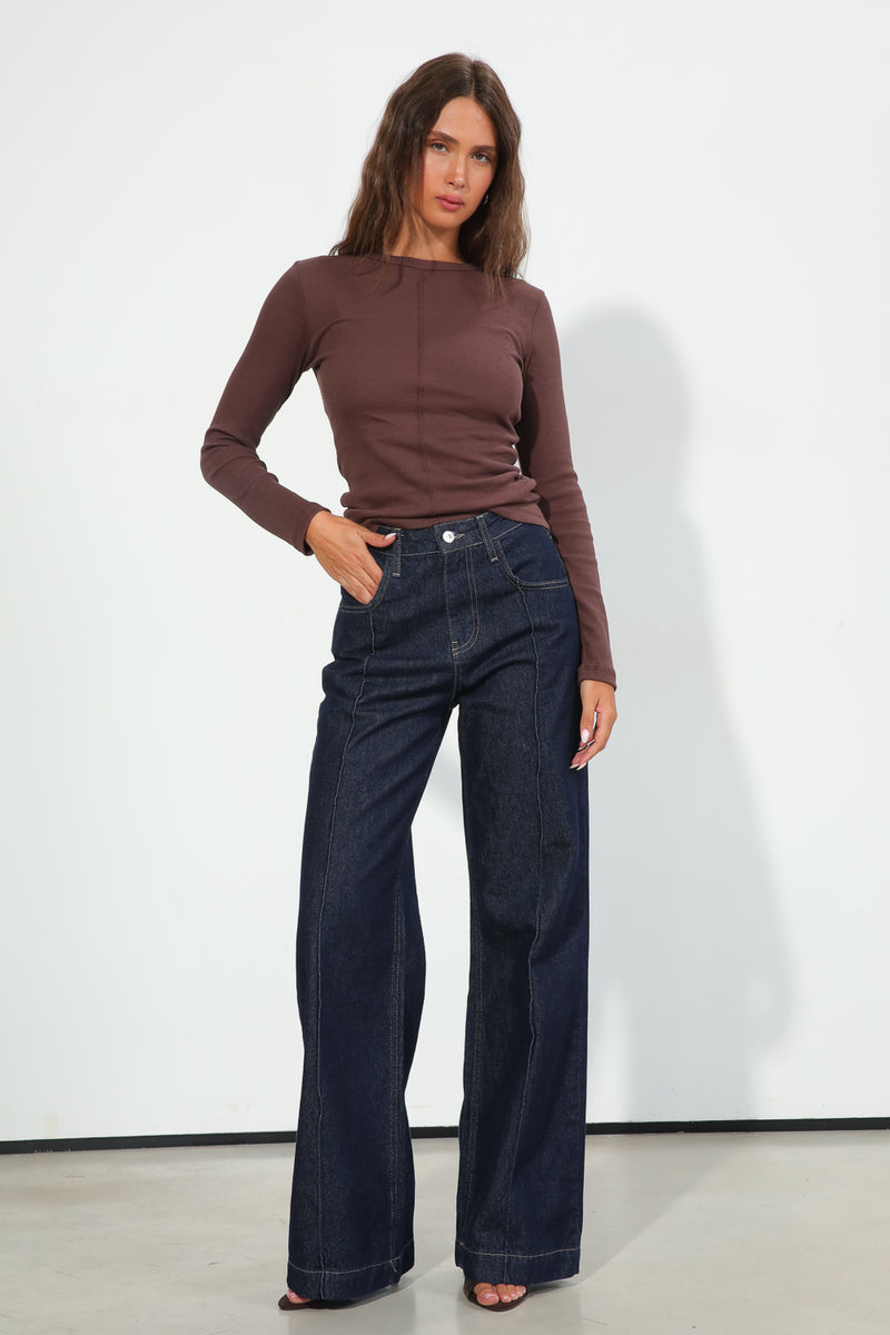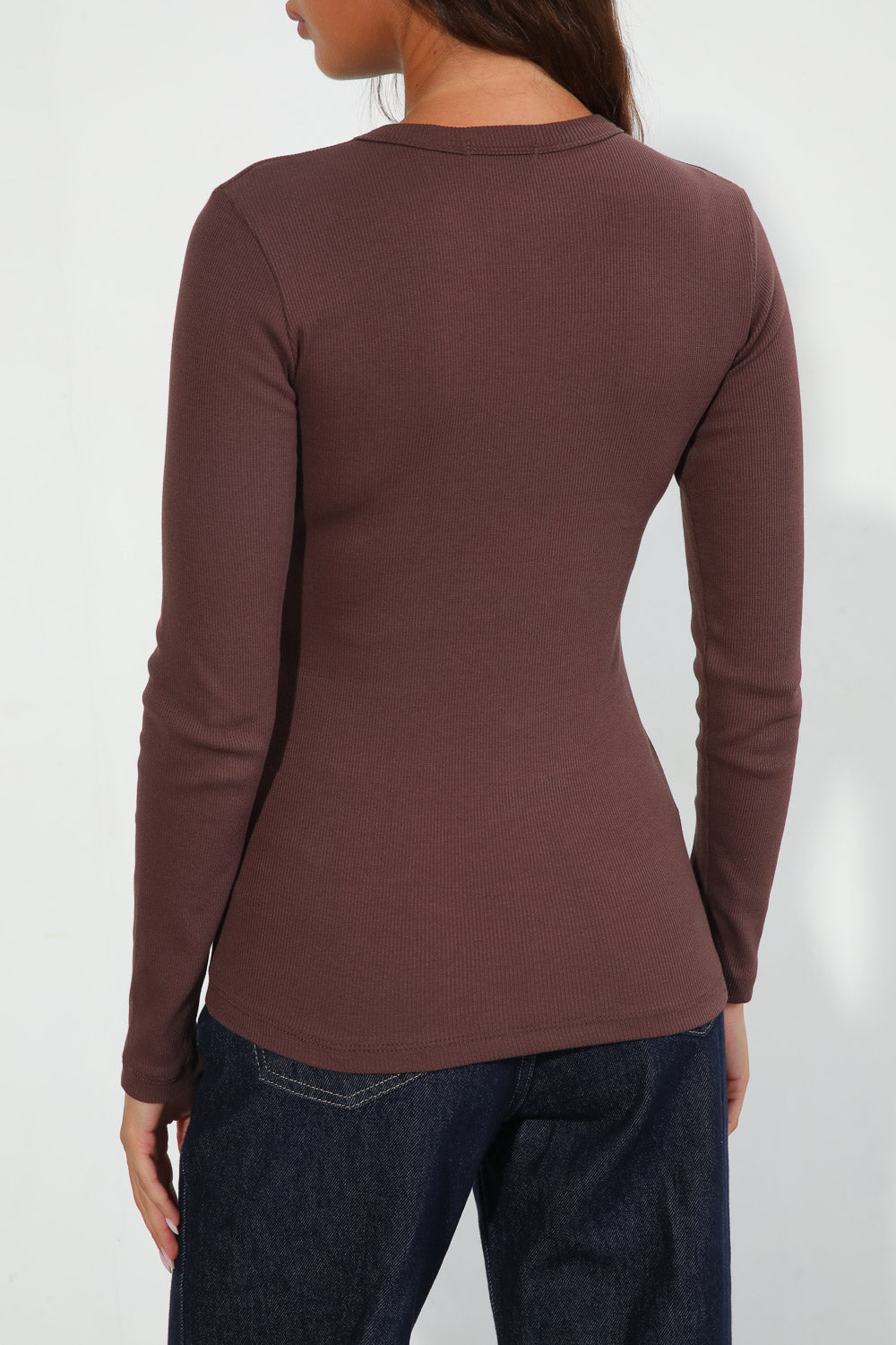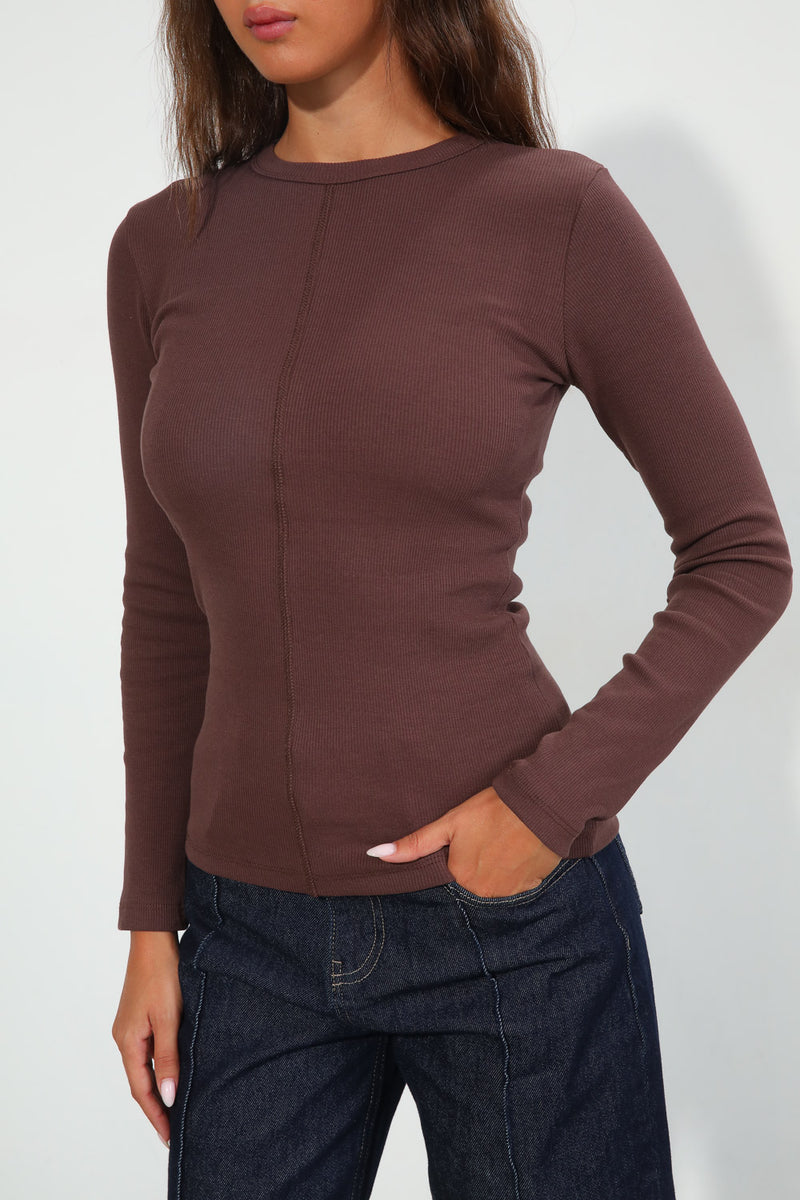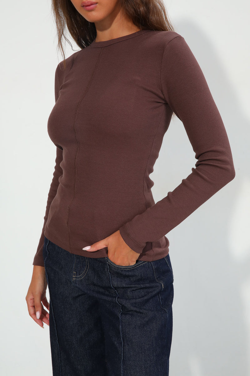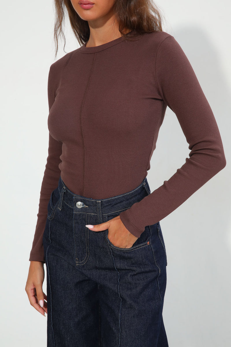 חולצת טינה בטקסטורת ריפ עדינה, עם צוורון עגול ותפר קידמי לכל האורך,