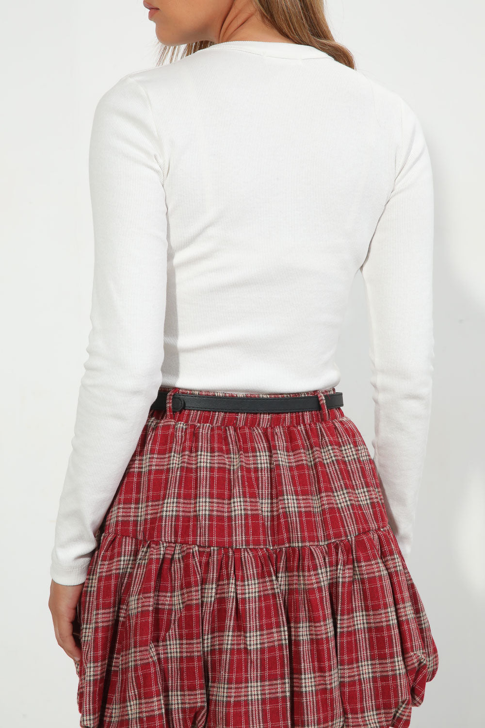 חולצת טינה בטקסטורת ריפ עדינה, עם צוורון עגול ותפר קידמי לכל האורך,