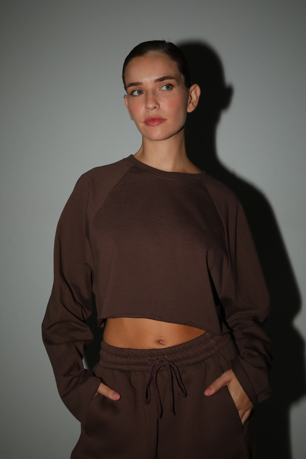 חולצת קרופ מבד כותנה בגזרת עטלף עם צווארון עגול ושרוולים ארוכים, כזאת שאת חייבת אצלך בארון!