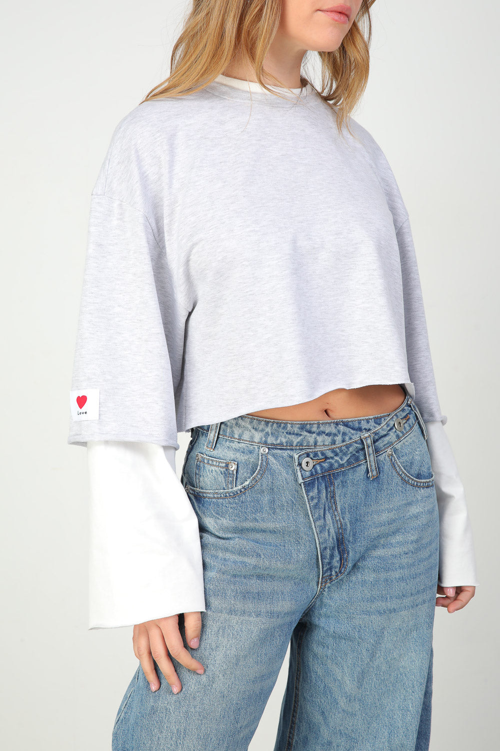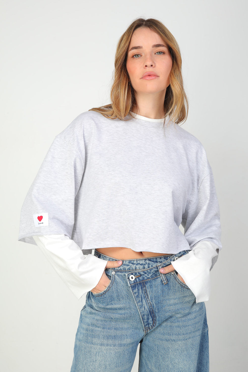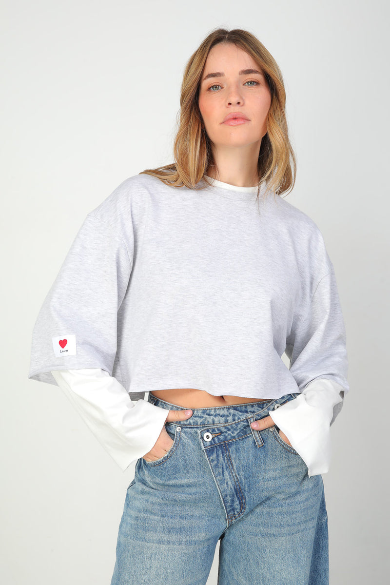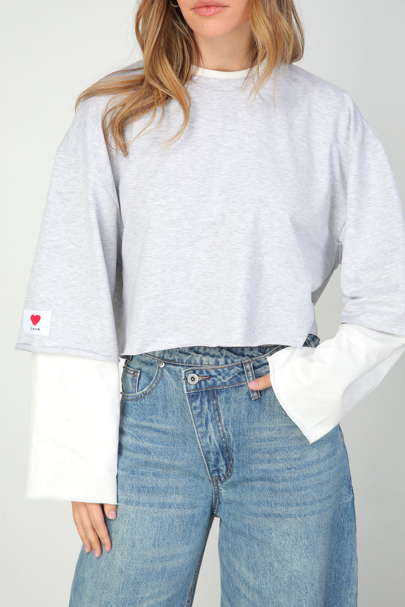 חולצה בגזרת בייסיק רפויה עם מראה נקי ויומיומי. כוללת צווארון עגול ושרוולים ארוכים בגימור רחב עם ניגוד עדין בקצה השרוול, שמוסיף טאץ’ עיצובי ייחודי. עשויה בד רך ונעים בגוון אפור בהיר, ומתאימה לשילוב קל עם ג’ינס, מכנסיים גבוהים או חצאיות ללוק קז’ואל נינוח ומעודכן.