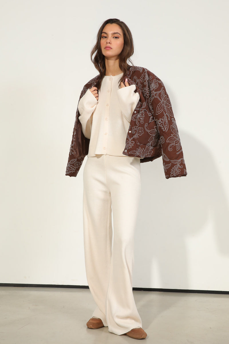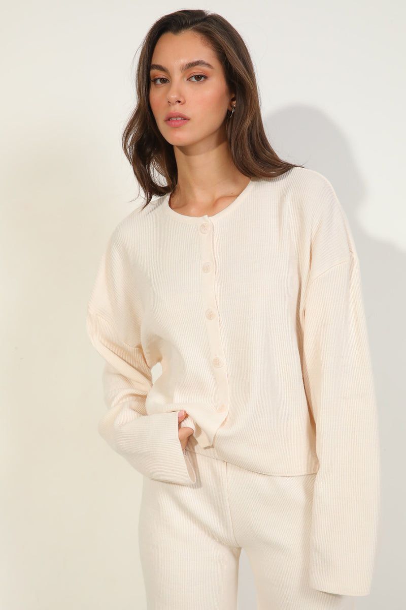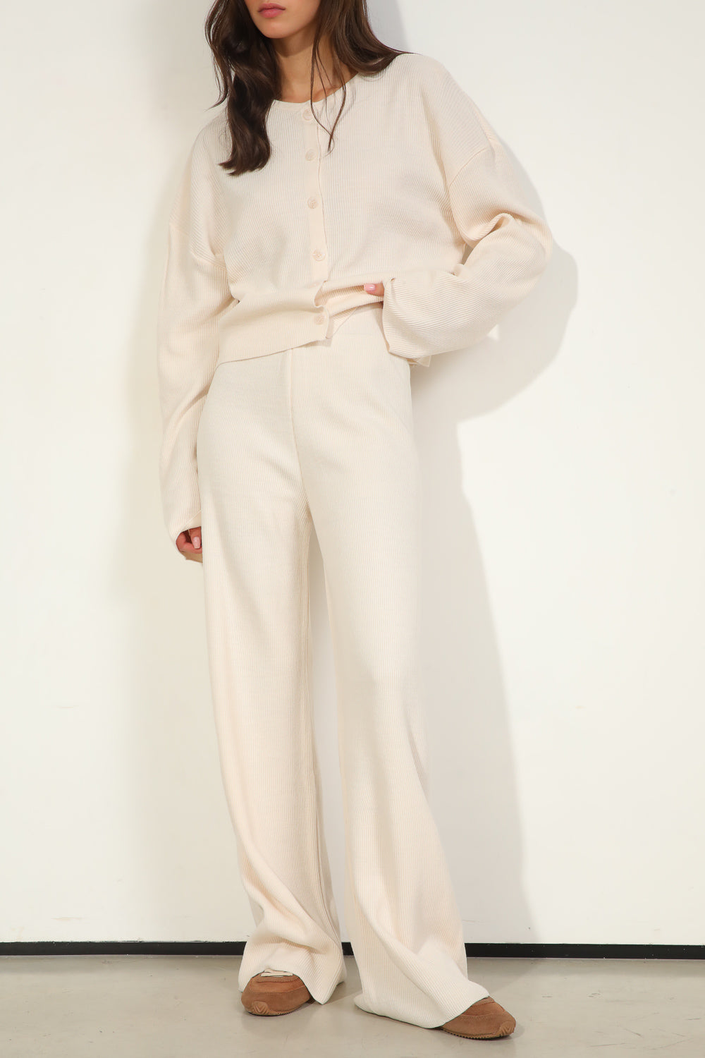 חליפת שתי חלקים רכה ונינוחה עם מראה אלגנטי ולא מתאמץ. כוללת מכנס בגזרה ישרה שנופל יפה על הגוף, וחלק עליון תואם בגזרה קלילה שמחמיאה מבלי להצמיד. מושלמת ליום במשרד, לקפה בעיר או לערב רגוע  סט שמרגיש נוח אבל נראה מדויק ושיקי.