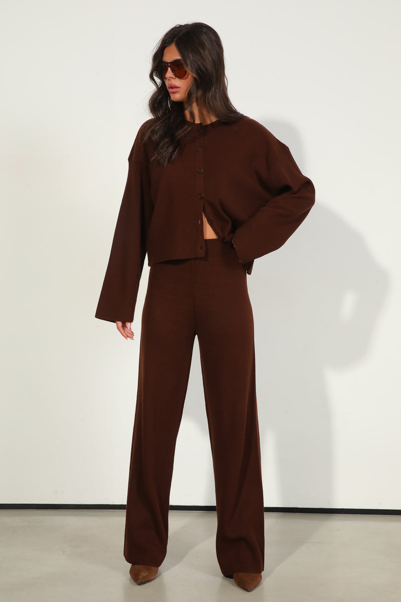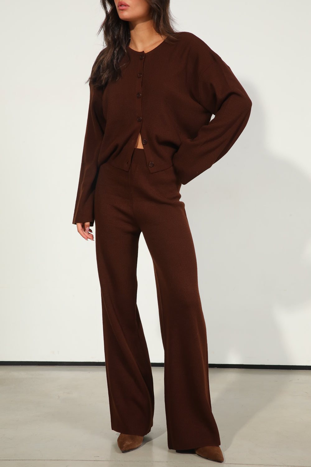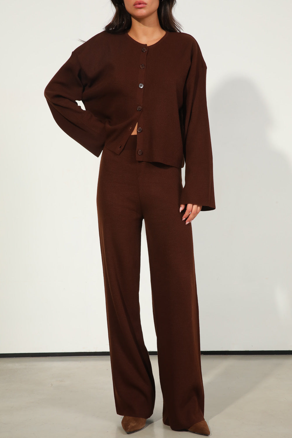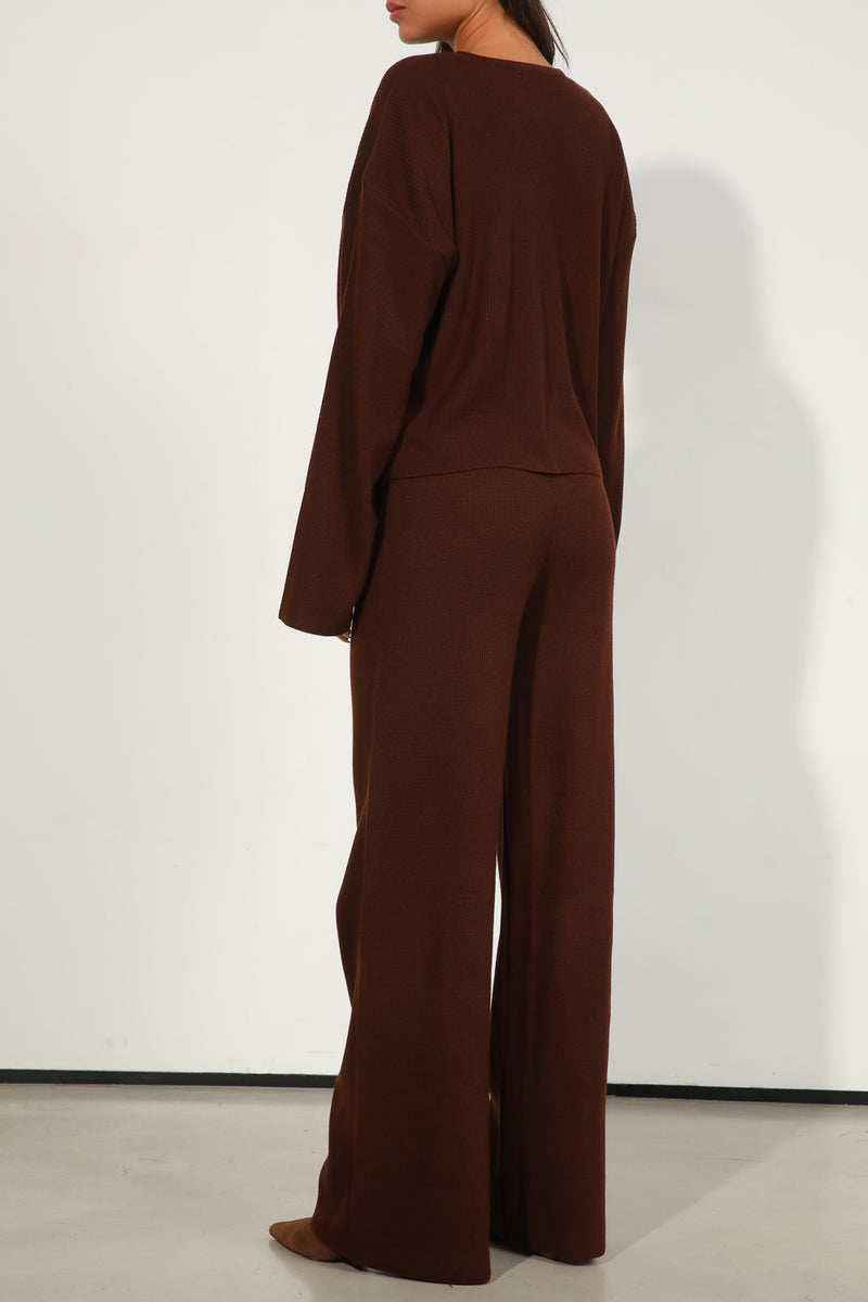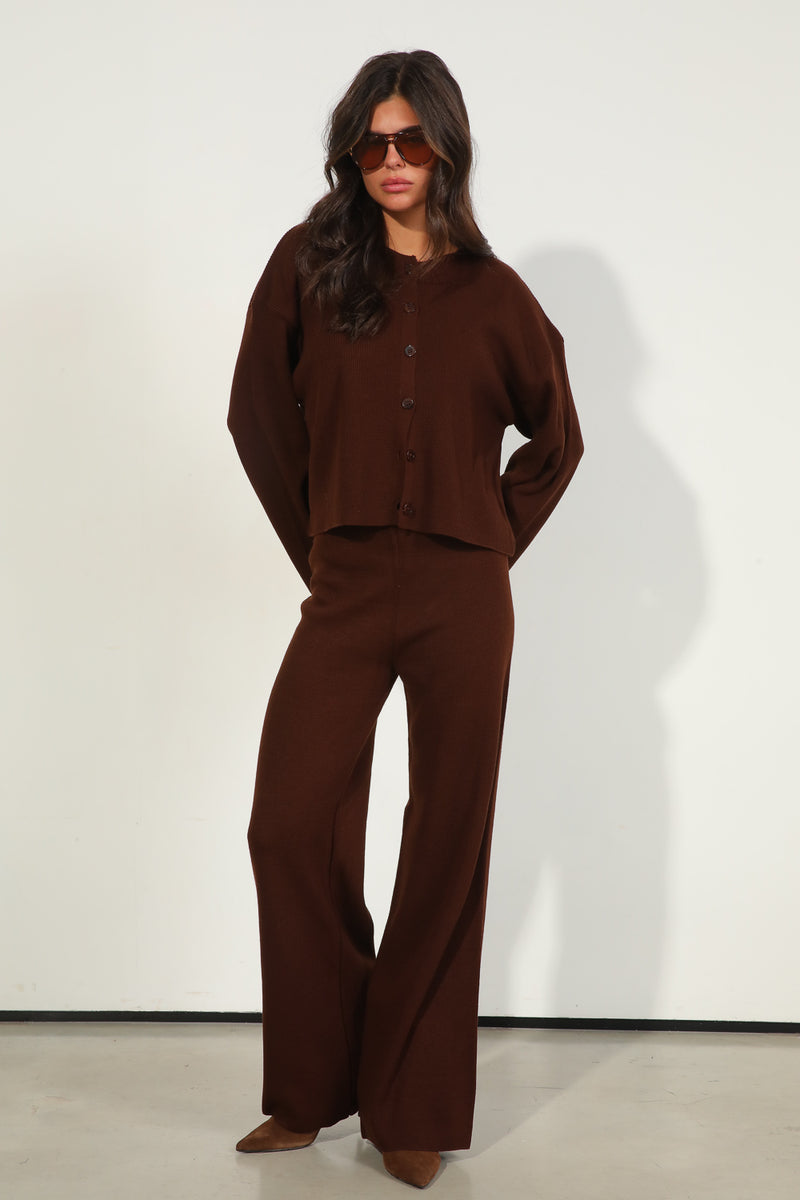 חליפת שתי חלקים רכה ונינוחה עם מראה אלגנטי ולא מתאמץ. כוללת מכנס בגזרה ישרה שנופל יפה על הגוף, וחלק עליון תואם בגזרה קלילה שמחמיאה מבלי להצמיד. מושלמת ליום במשרד, לקפה בעיר או לערב רגוע סט שמרגיש נוח אבל נראה מדויק ושיקי.